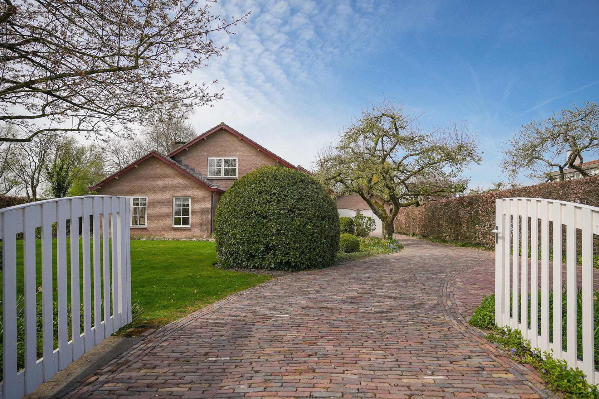 Via de oprit rijd je het ruime eigen terrein op. De voortuin is zorgvuldig aangelegd met borders en geeft de woning direct een verzorgde, statige uitstraling. Parkeergelegenheid voor meerdere auto's is aanwezig, aansluitend staat de dubbele garage. Je weet zeker dat je in de Betuwe bent, want een appelboom omlijst de oprit.