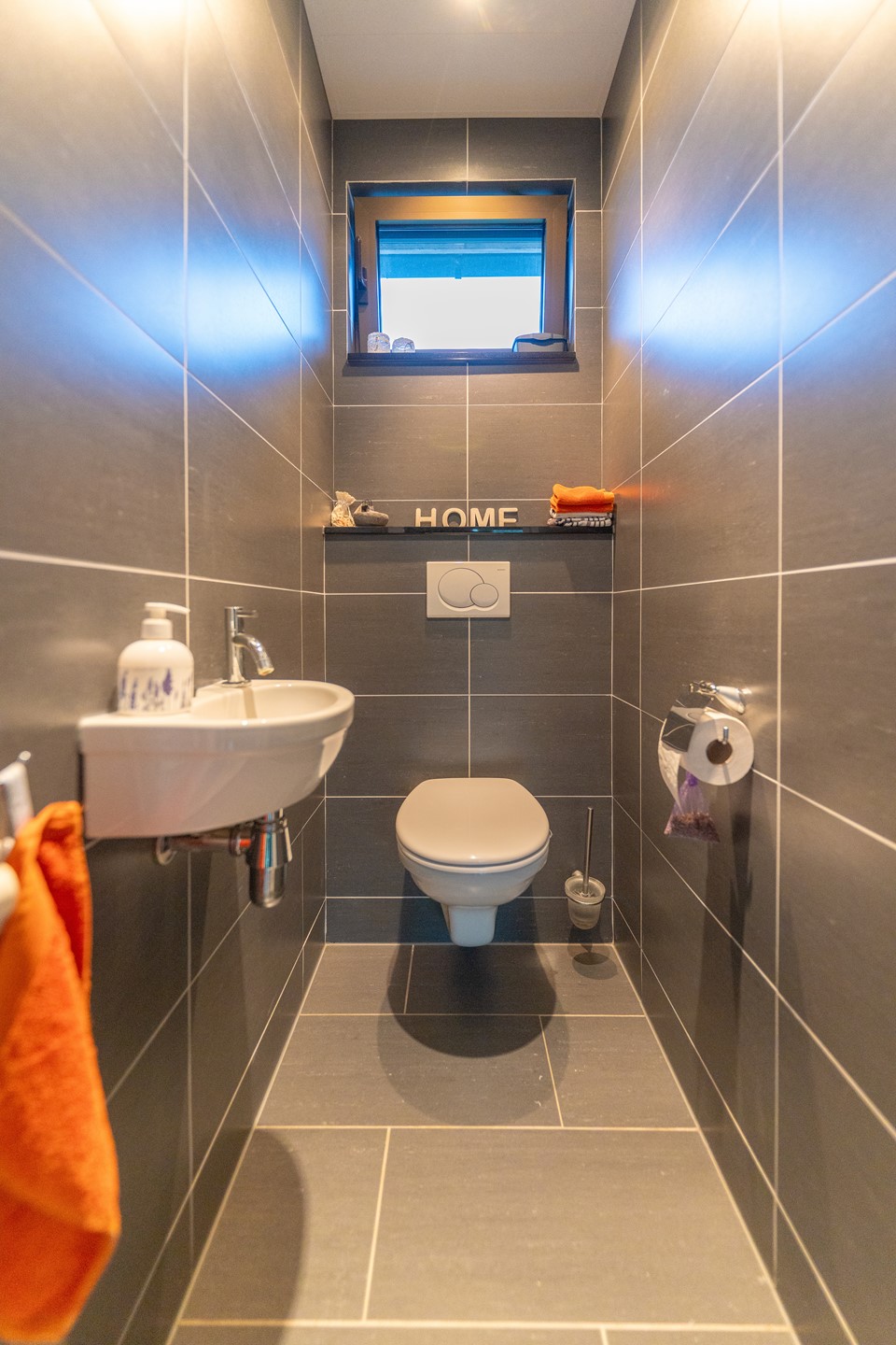 Volledig betegeld en voorzien van vloerverwarming, fonteintje en een kiepraam voor daglicht.