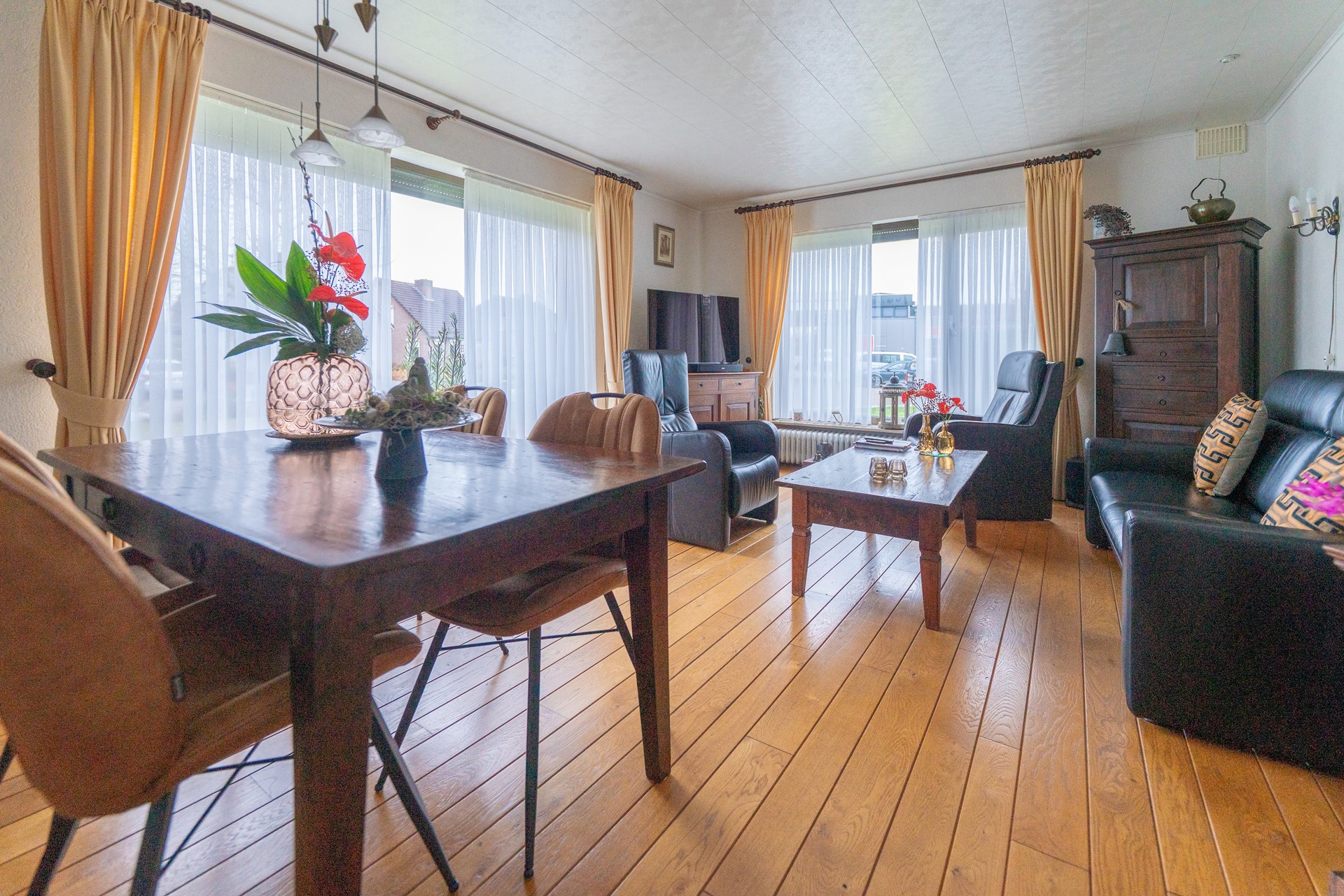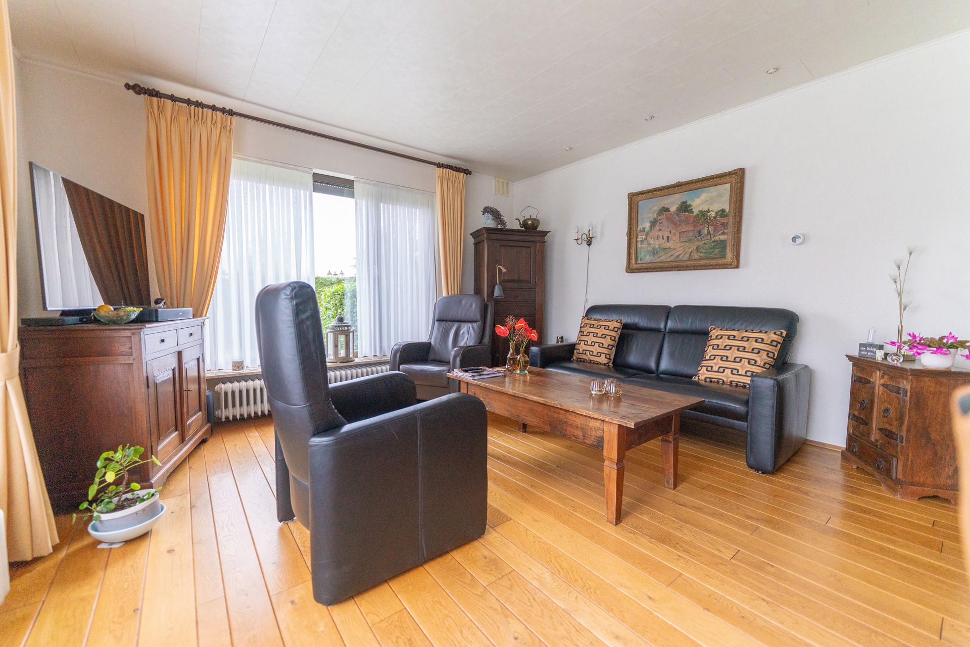 De sfeervolle woonkamer valt direct op door het vele daglicht. De ruimte is voorzien van een mooie eikenhouten vloer en rolluiken, waarvan één elektrisch.