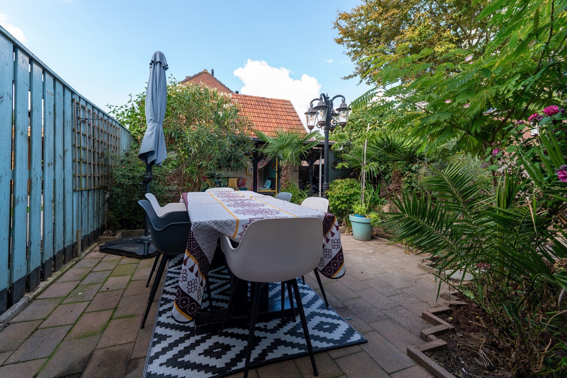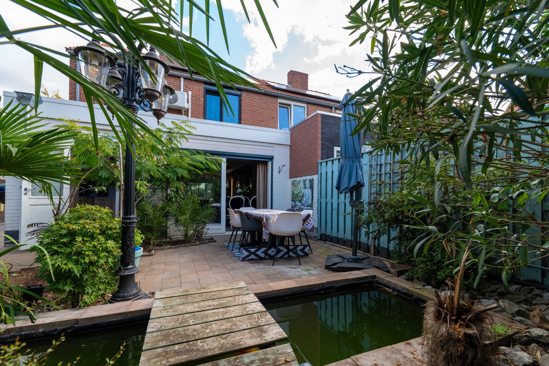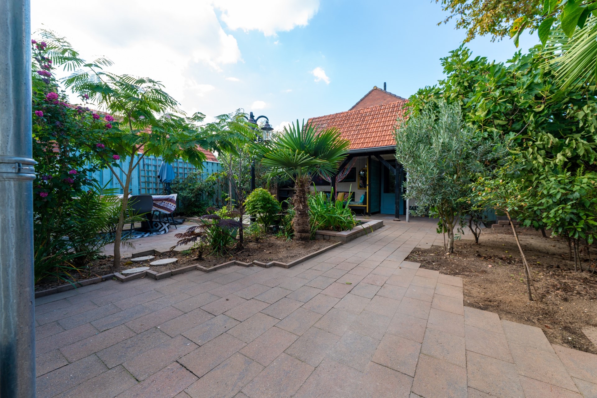 De achtertuin is een echte eyecatcher: netjes aangelegd met sierbestrating, borders, een royale overkapping. Dankzij de ligging op het westen geniet je hier volop van de middag- en avondzon.