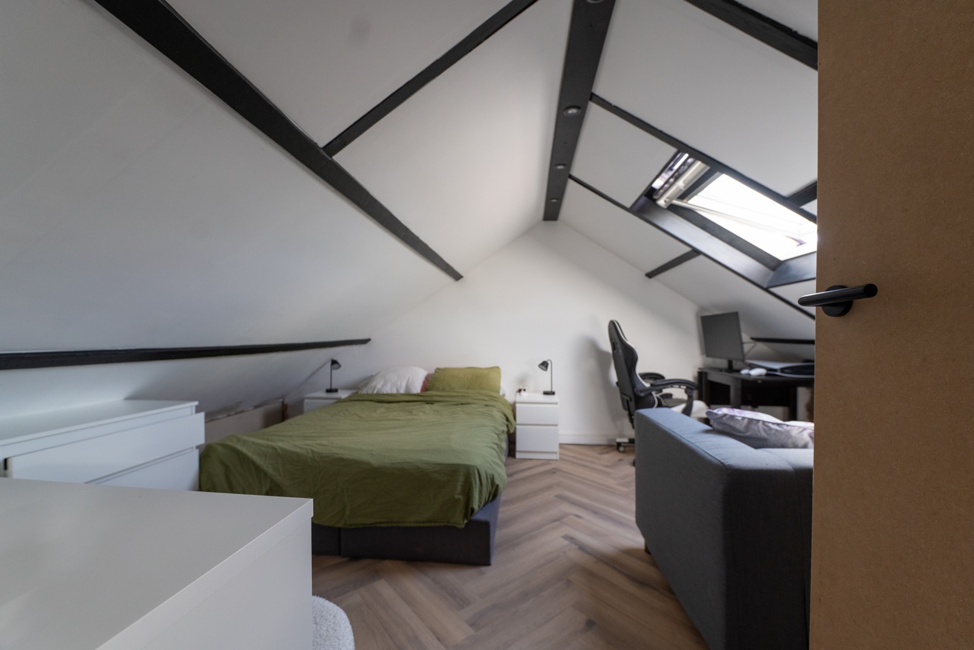 Via de vaste trap bereik je de zolder, waar zich de derde ruime slaapkamer bevindt. Ook hier is airco aanwezig en dankzij het Velux dakraam komt er veel daglicht binnen.
