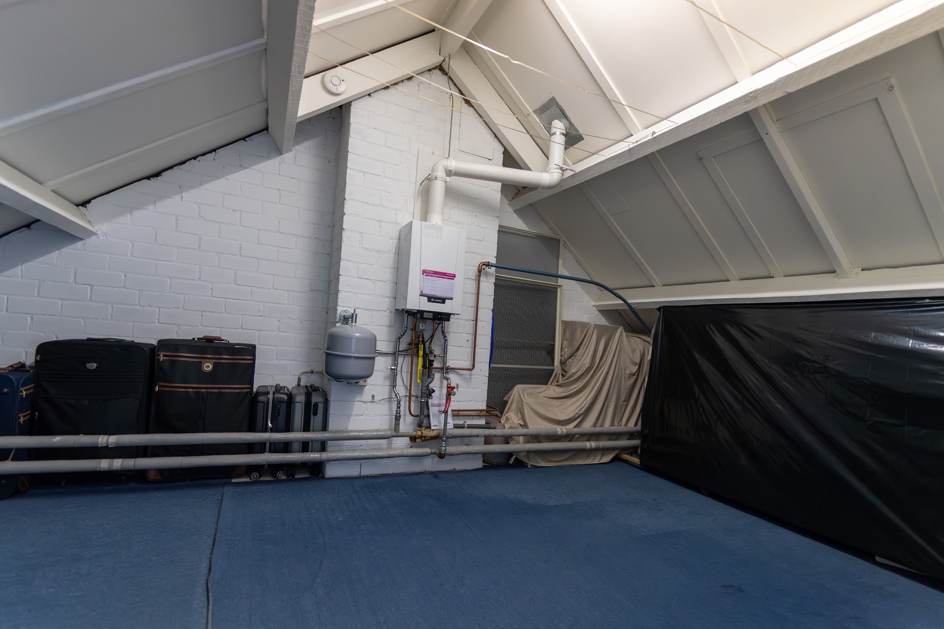 De zolder is voorzien van verwarming en een dakraam met dubbelglas. Bovendien is er de mogelijkheid om een vaste trap te plaatsen vanuit een van de slaapkamers, waardoor eenvoudig een extra (slaap)kamer of werkruimte kan worden gecreëerd.
