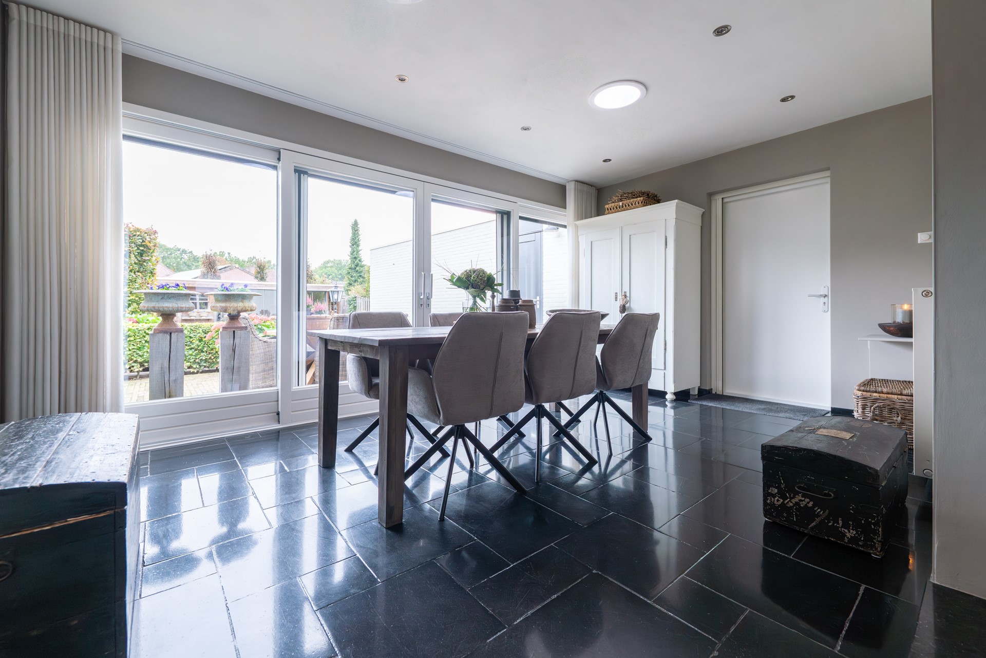 Via de schuifpui loop je zó naar buiten, waar binnen en buiten naadloos in elkaar overlopen.
