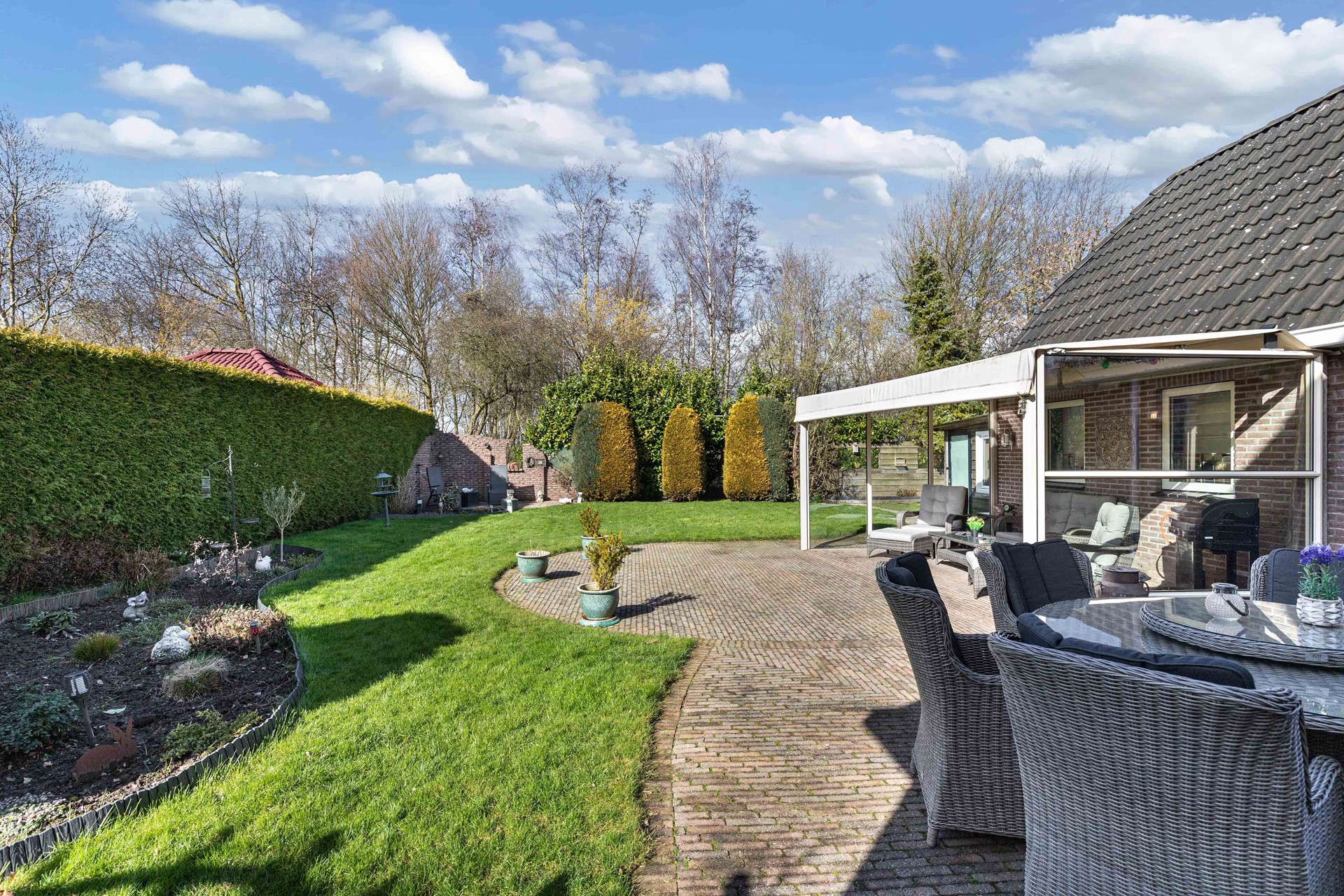 Voor het huis is voldoende plek om de auto te parkeren op eigen terrein. Uw auto kan ook overdekt staan in de garage.