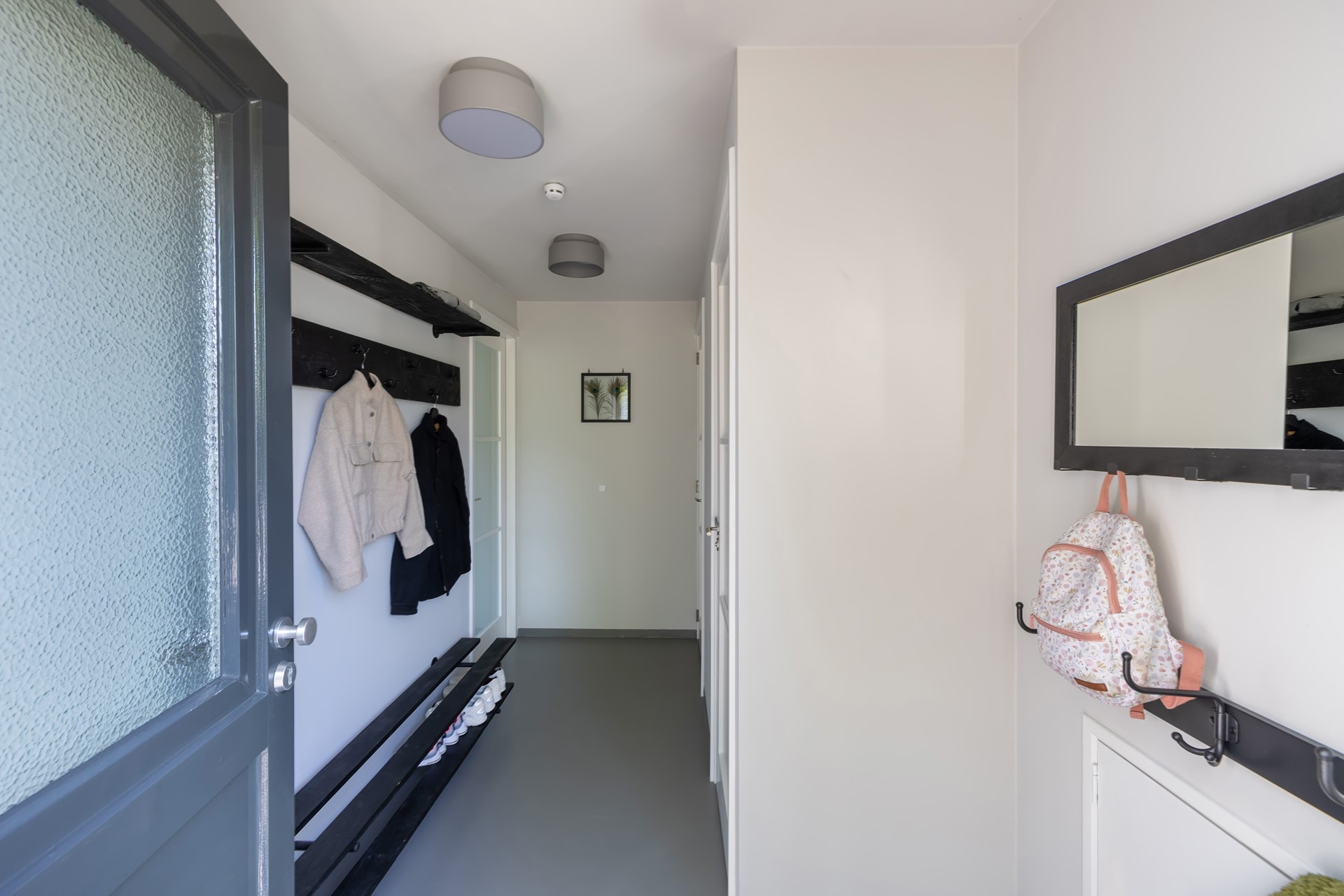 Bij binnenkomst is al meteen duidelijk dat de woning goed is aangepakt en gemoderniseerd. In de hal is er een toilet, wasruimte en de meterkast (vernieuwd in 2024). Onder de trap vindt je een kelder voor extra opbergruimte en een voorraadkast.