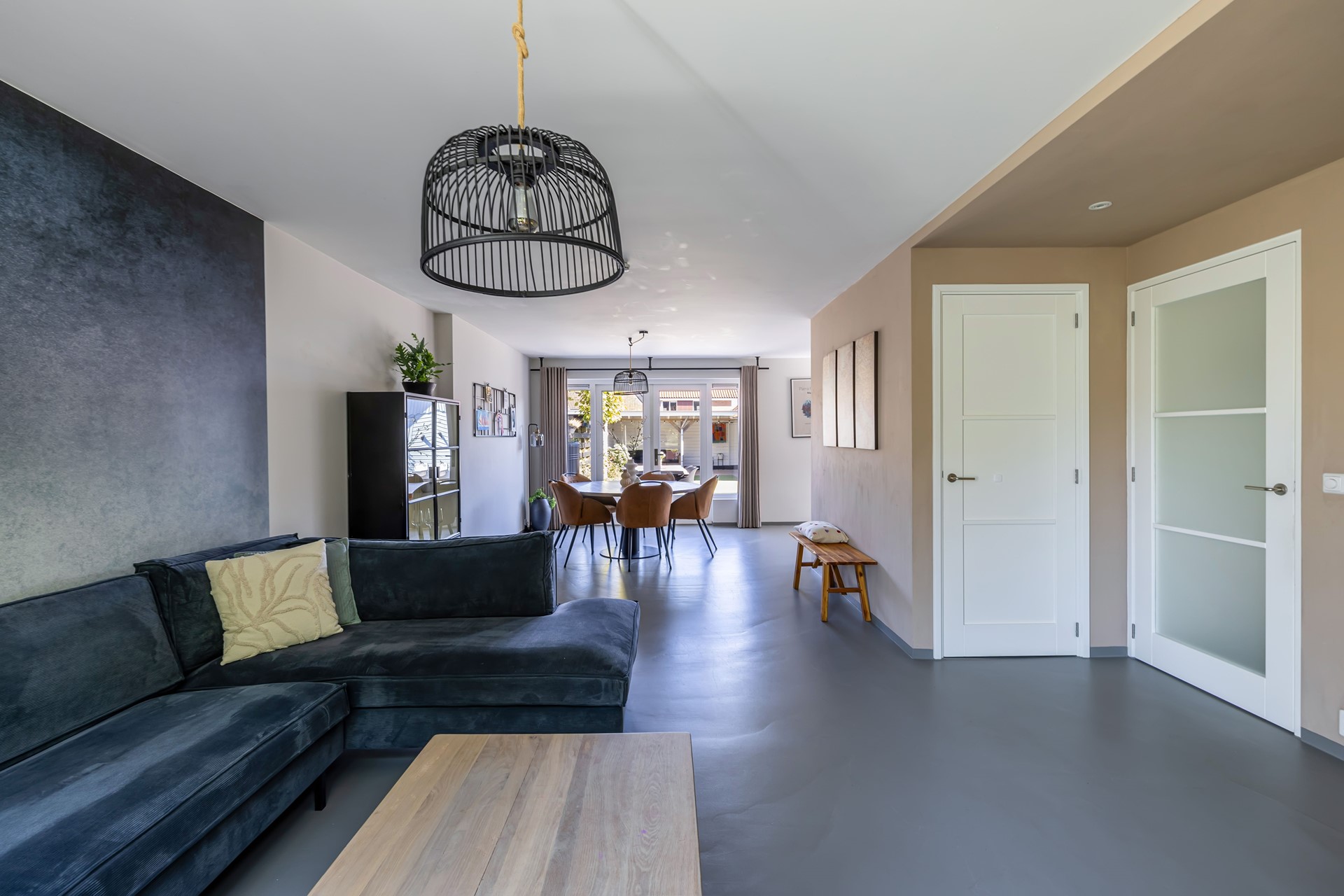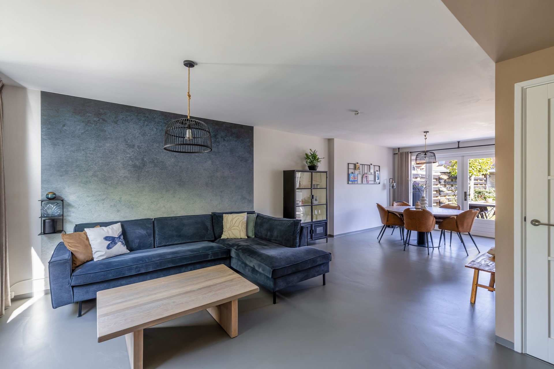 De woning is licht en sfeervol dankzij grote raampartijen en openslaande deuren naar de tuin.