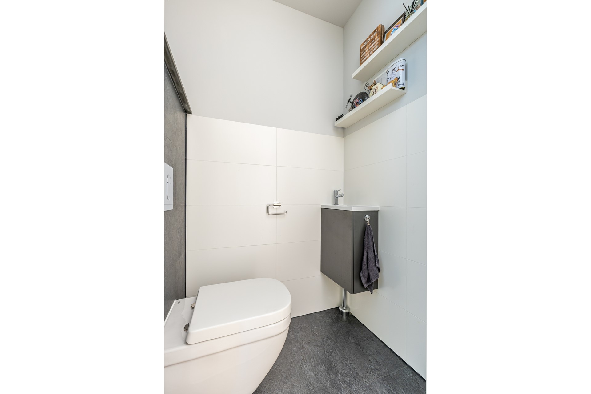 De badkamer is volledig betegeld en voorzien van een wastafelmeubel en douchehoek. De lichte kleurstelling en het keurige onderhoud maken het een frisse ruimte. Het separate toilet is in 2024 vernieuwd en past bij de verzorgde uitstraling van de woning.
