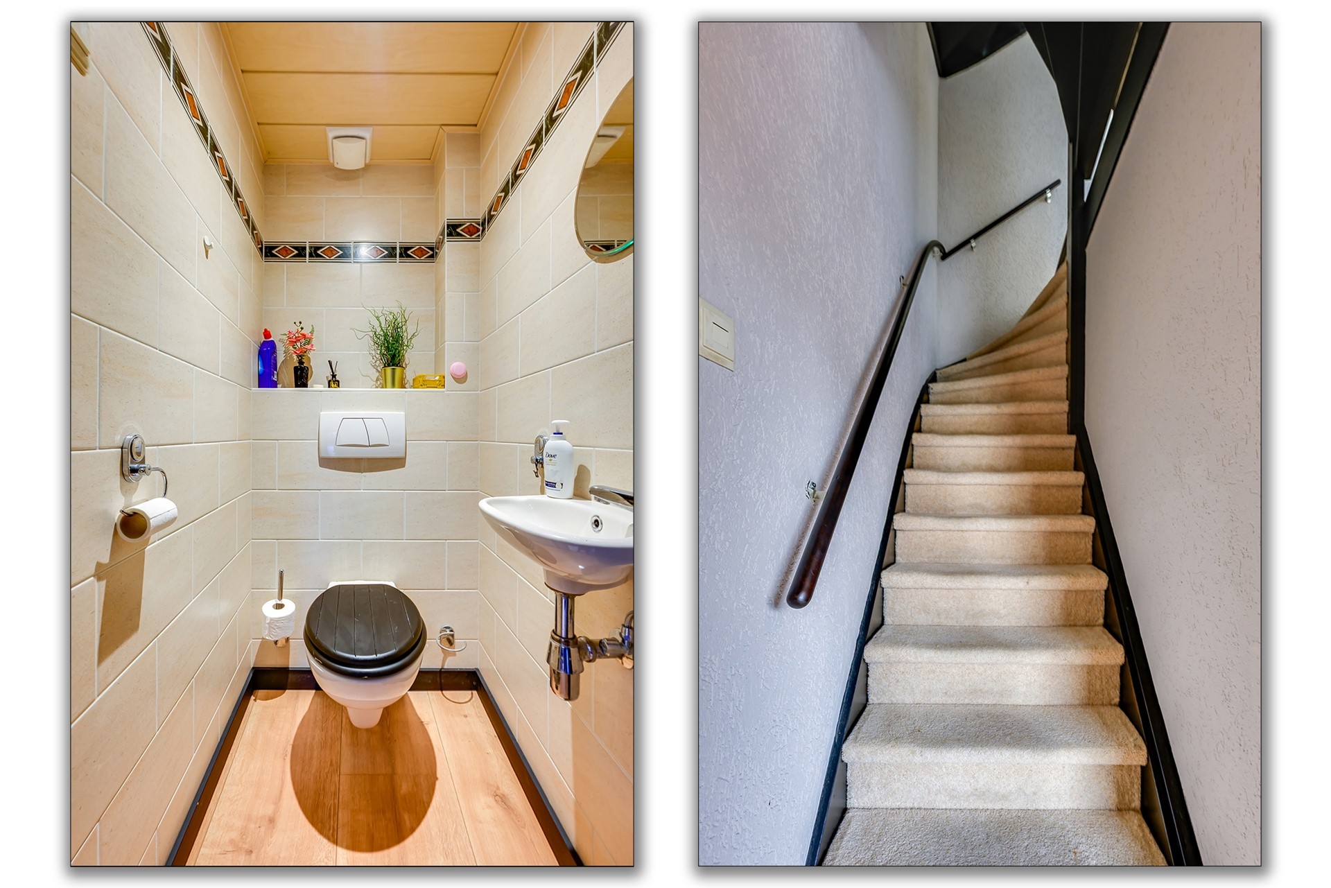 Vanaf de overloop is er toegang tot alle vertrekken en de trapopgang naar de 2e verdieping.