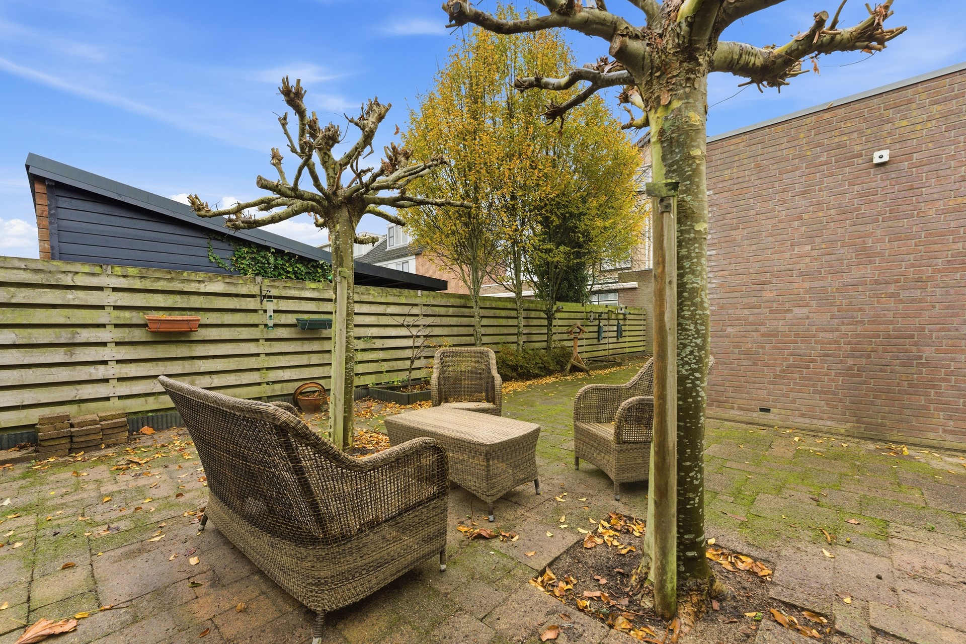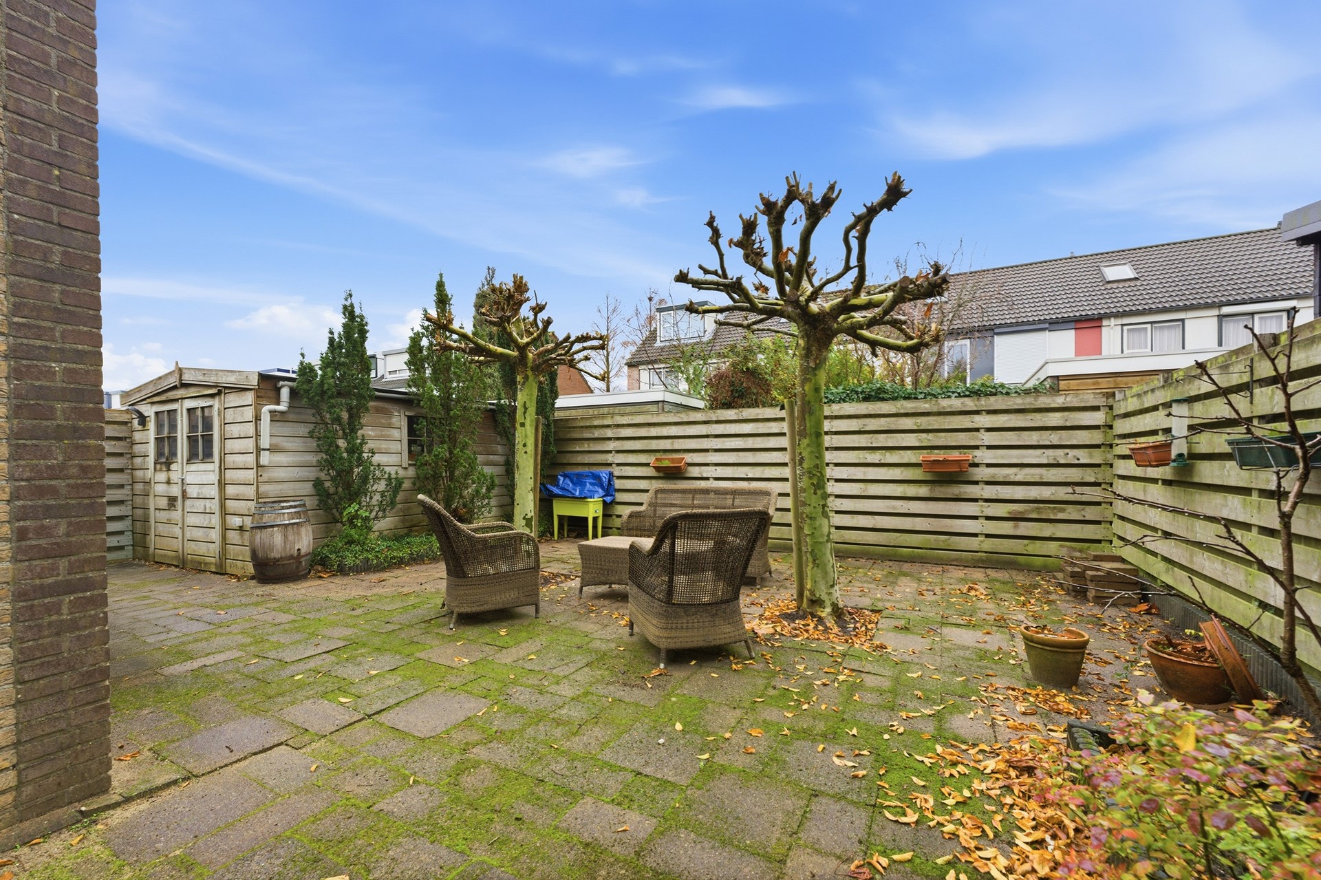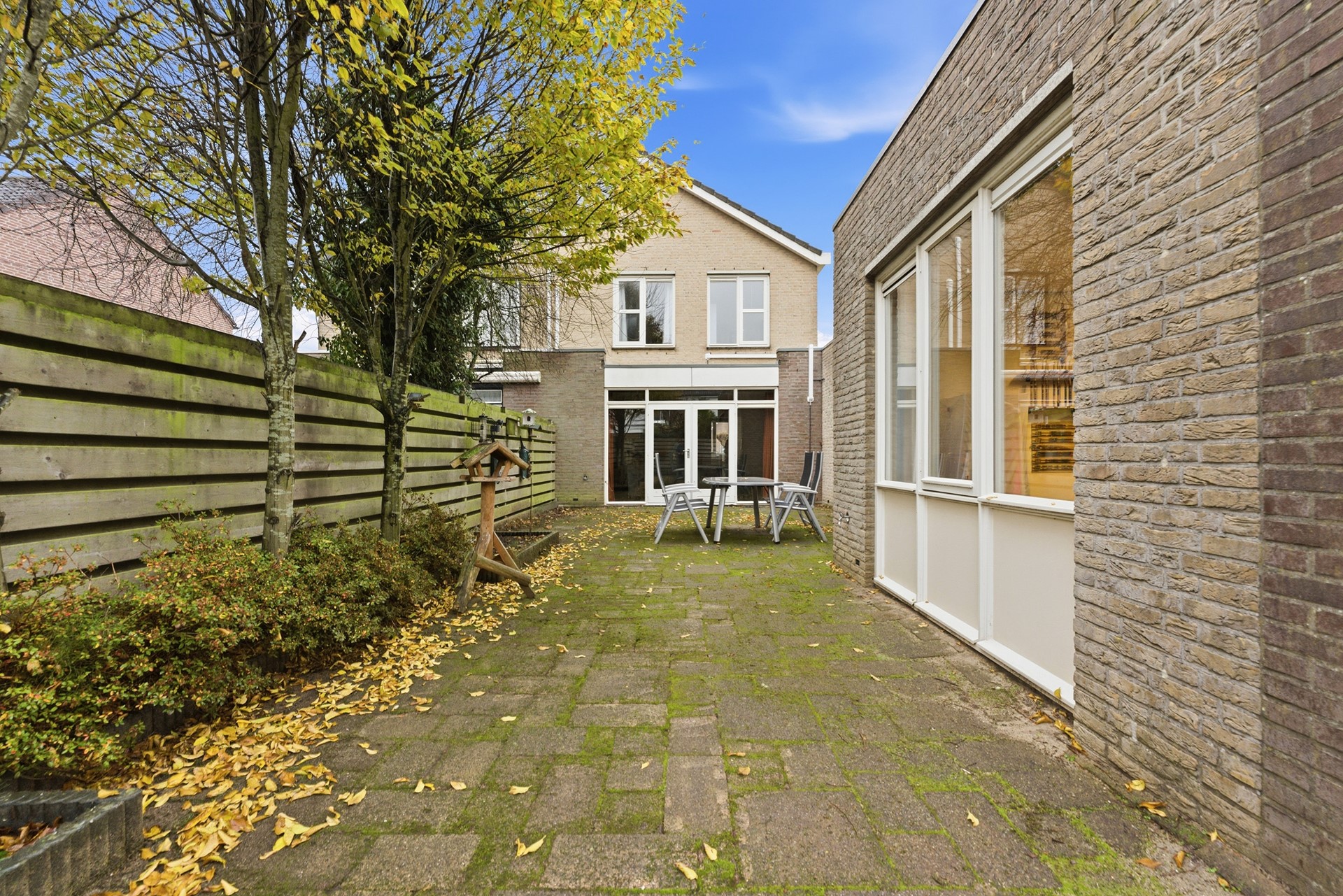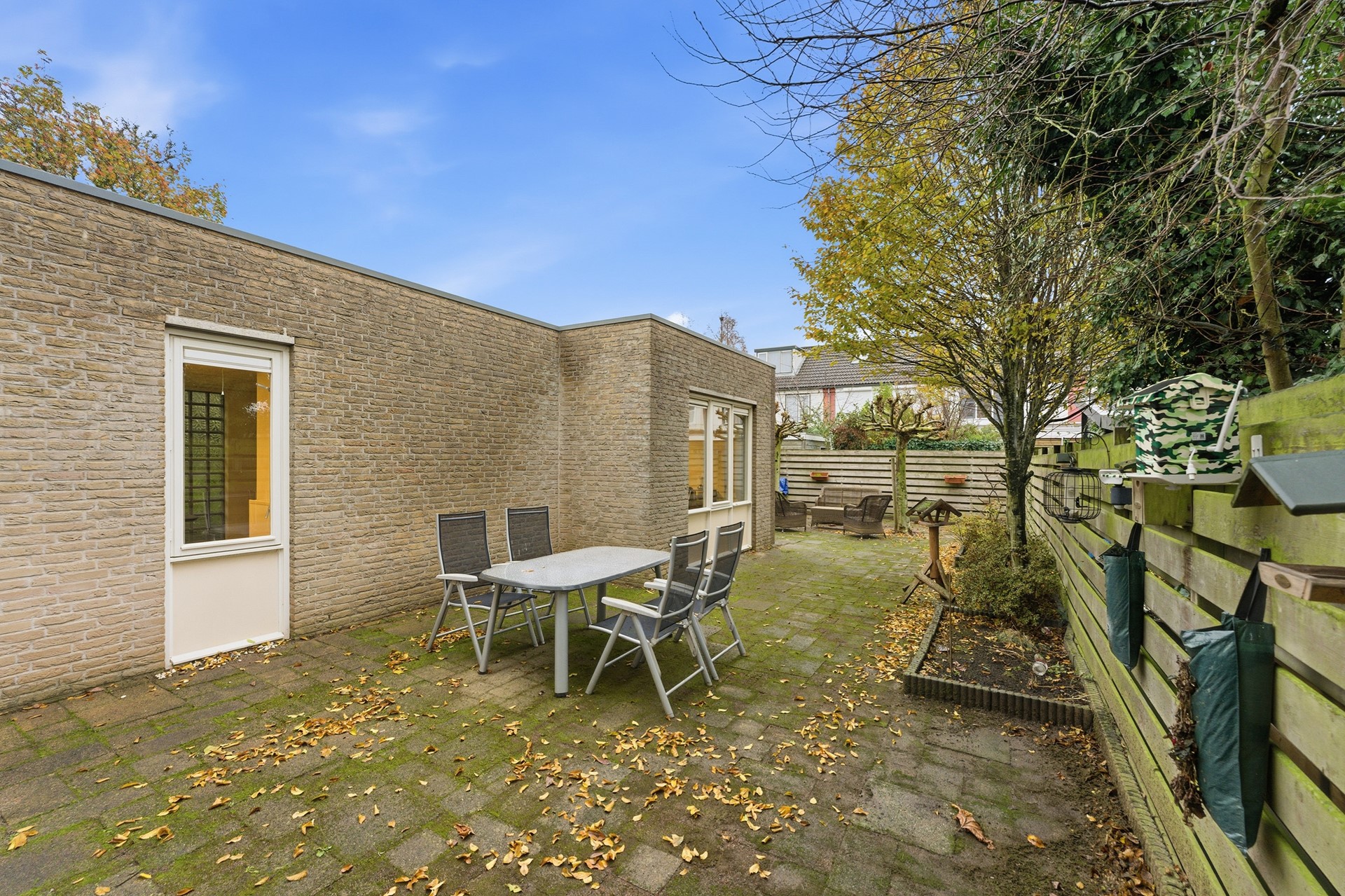 De achtertuin is heerlijk ruim, breed en onderhoudsvriendelijk. Er is voldoende plek voor meerdere zitjes, een loungeset, speelruimte en groen. De tuin is lekker privé en heeft een fijne zonligging: een geweldige plek om lange dagen buiten te genieten.
