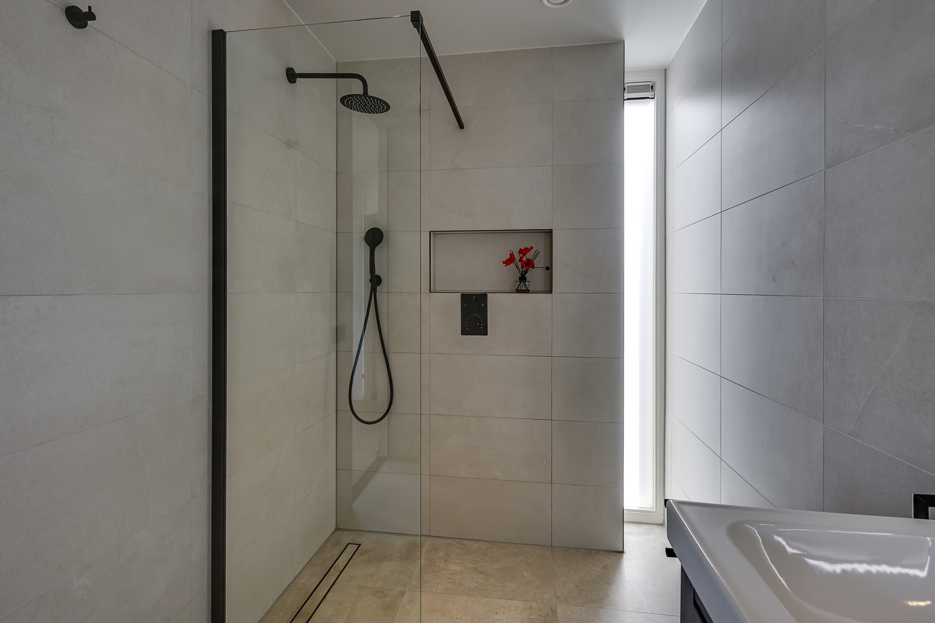 Uniek aan deze woning is de slaapkamer op de begane grond, ideaal als je levensloopbestendig wilt wonen. Direct daarnaast ligt de badkamer, wat het geheel extra comfortabel maakt. De badkamer is recent gerenoveerd met een mooie inloopdouche en een dubbel wastafelmeubel en heeft een strakke en moderne uitstraling.