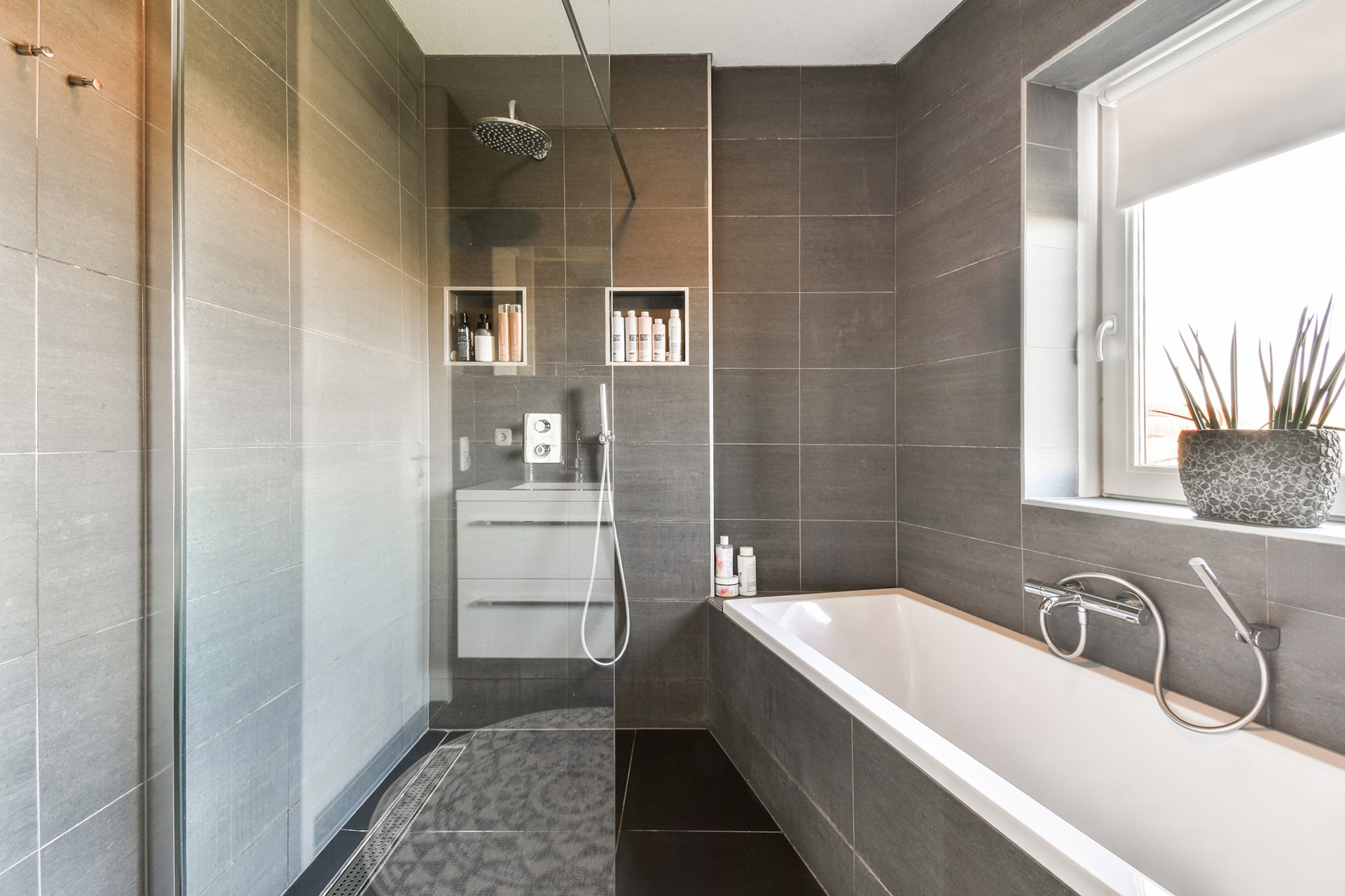 5. Luxe badkamer met inloopdouche (hand- én regendouche), ligbad en toilet;