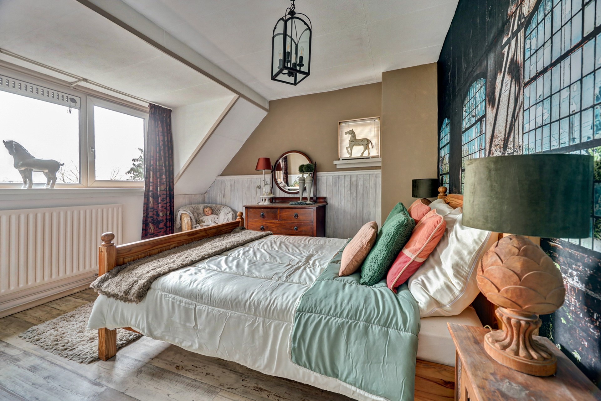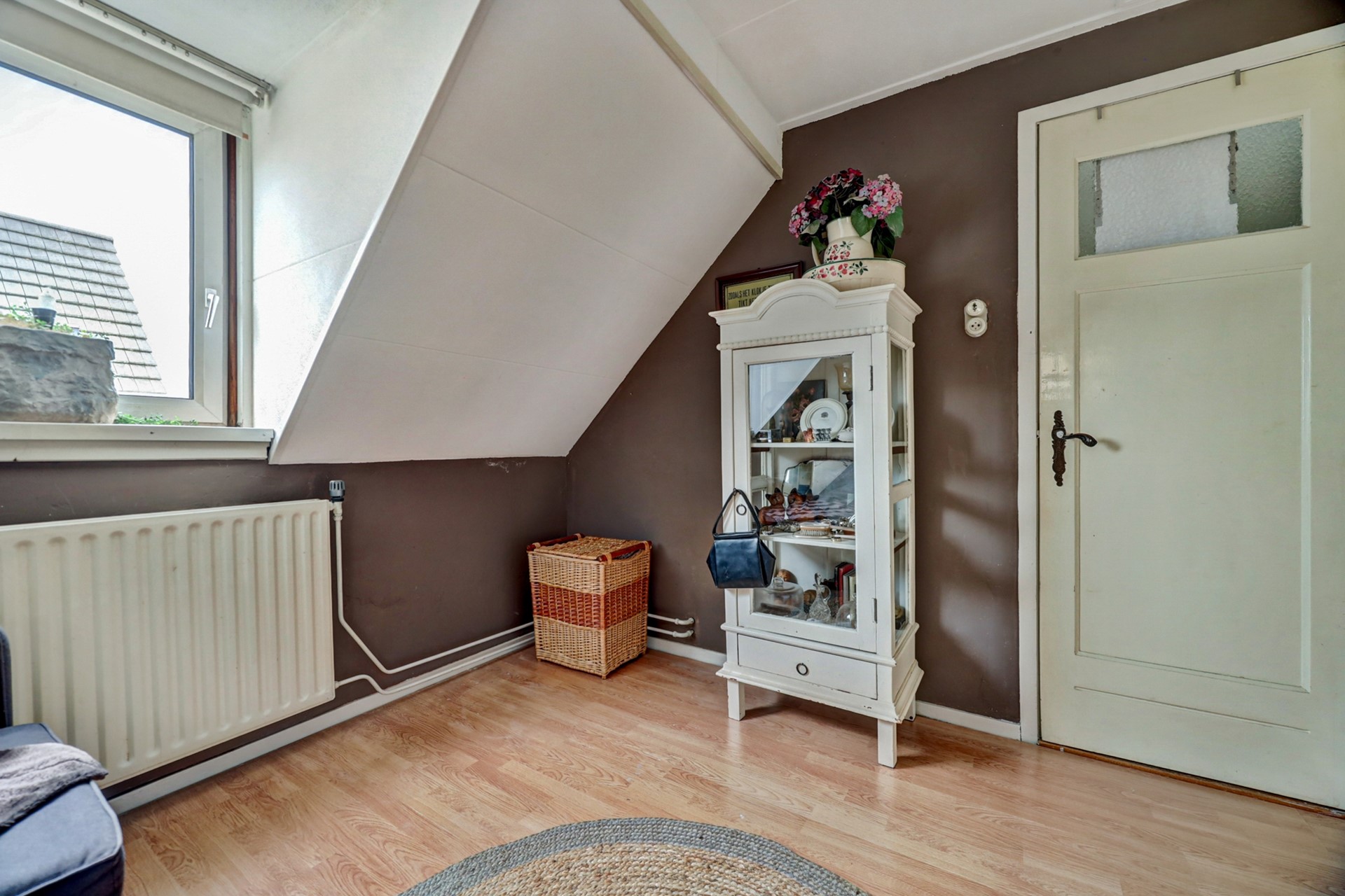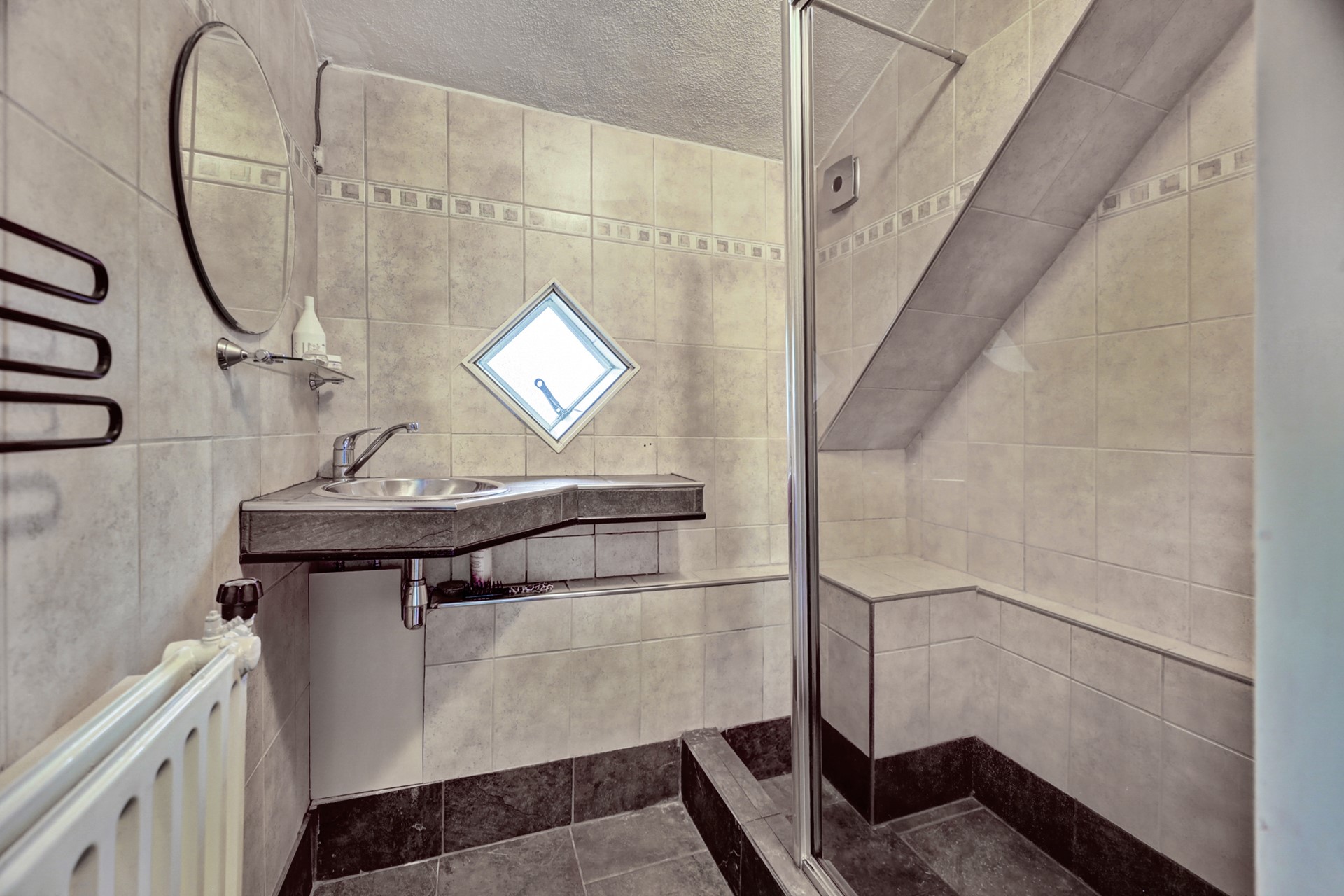 Op de verdieping is de indeling als volgt: overloop, mooie ouderslaapkamer (353 x 347), prima tweede slaapkamer (353 x 295 met trap naar de bergzolder). kleinere derde slaapkamer (255 X 194 met vaste kasten) en nette doucheruimte (194 x 151) met douchegelegenheid en wastafelmeubel.