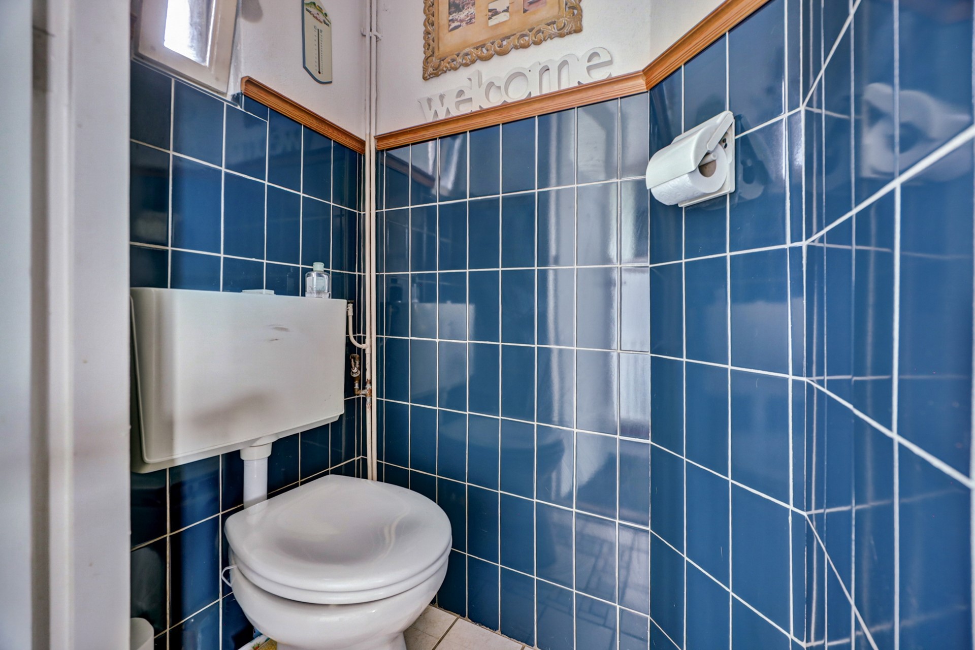De indeling (dijkniveau) is als volgt: entree, hal met toilet, meterkast, trap naar de verdieping en naar het souterrain en toegang tot de gezellige L-vormige woonkamer van ca. 30 m² met open haard en een loopdeur naar het balkon (575 x 225) waarop u de gehele morgen heerlijk kunt genieten van de (opkomende) zon.