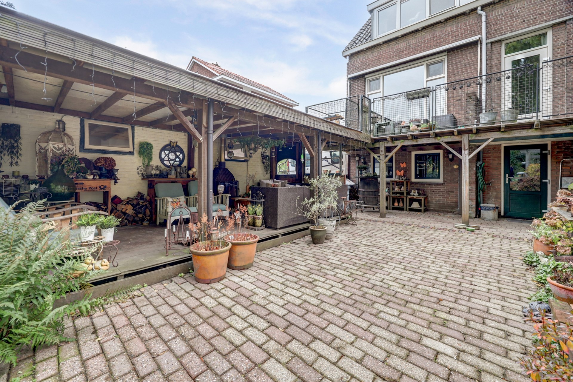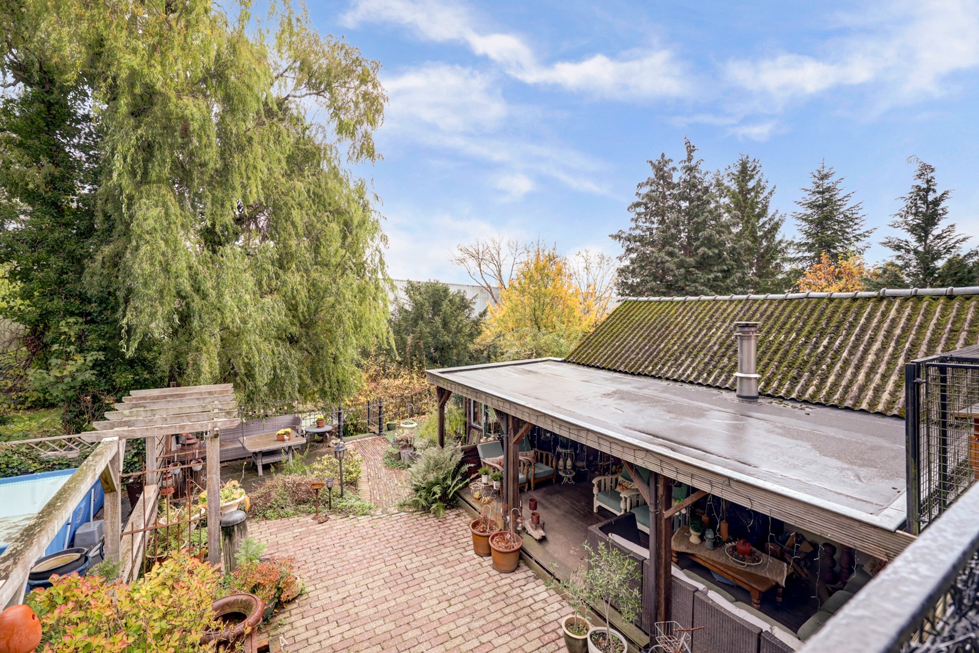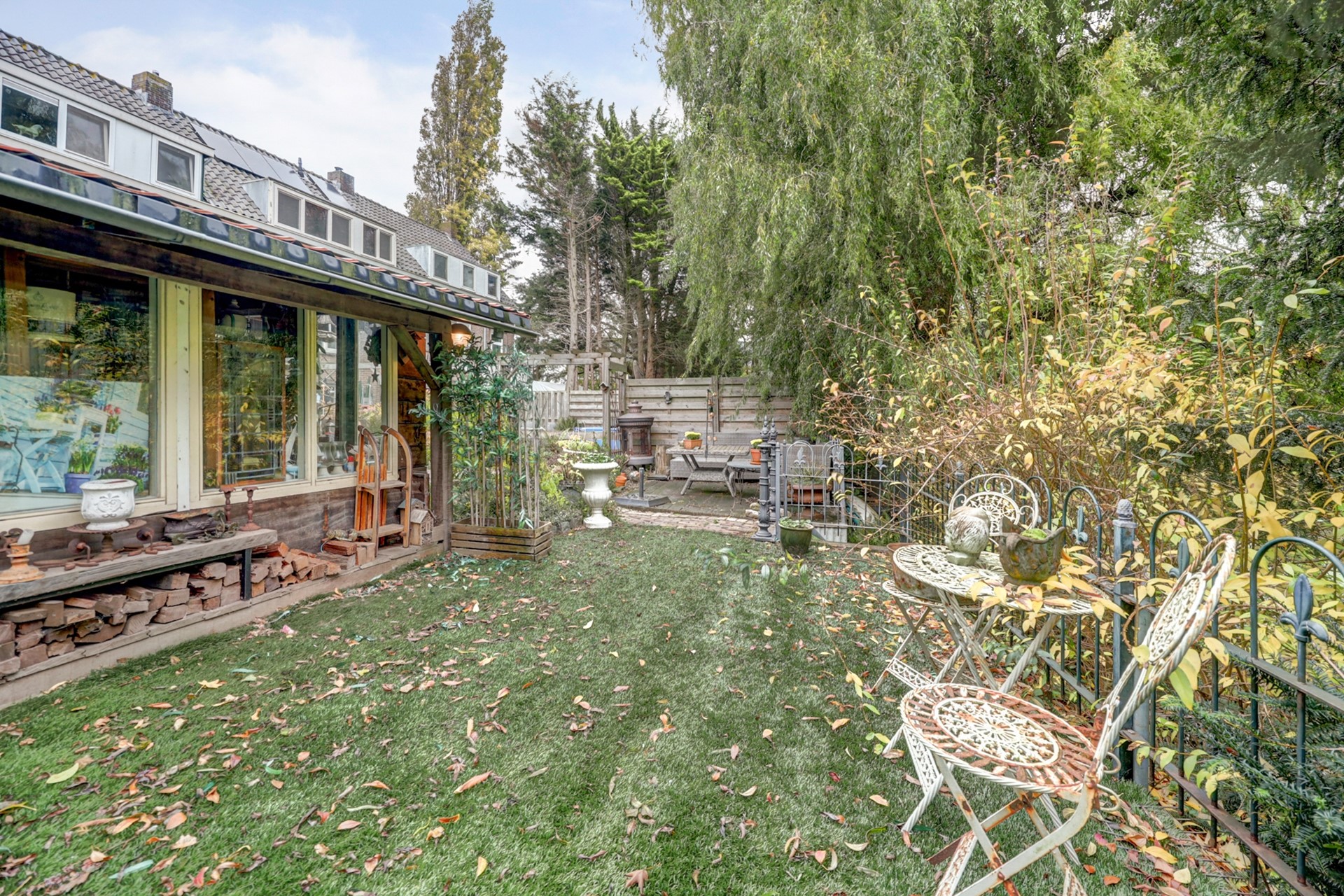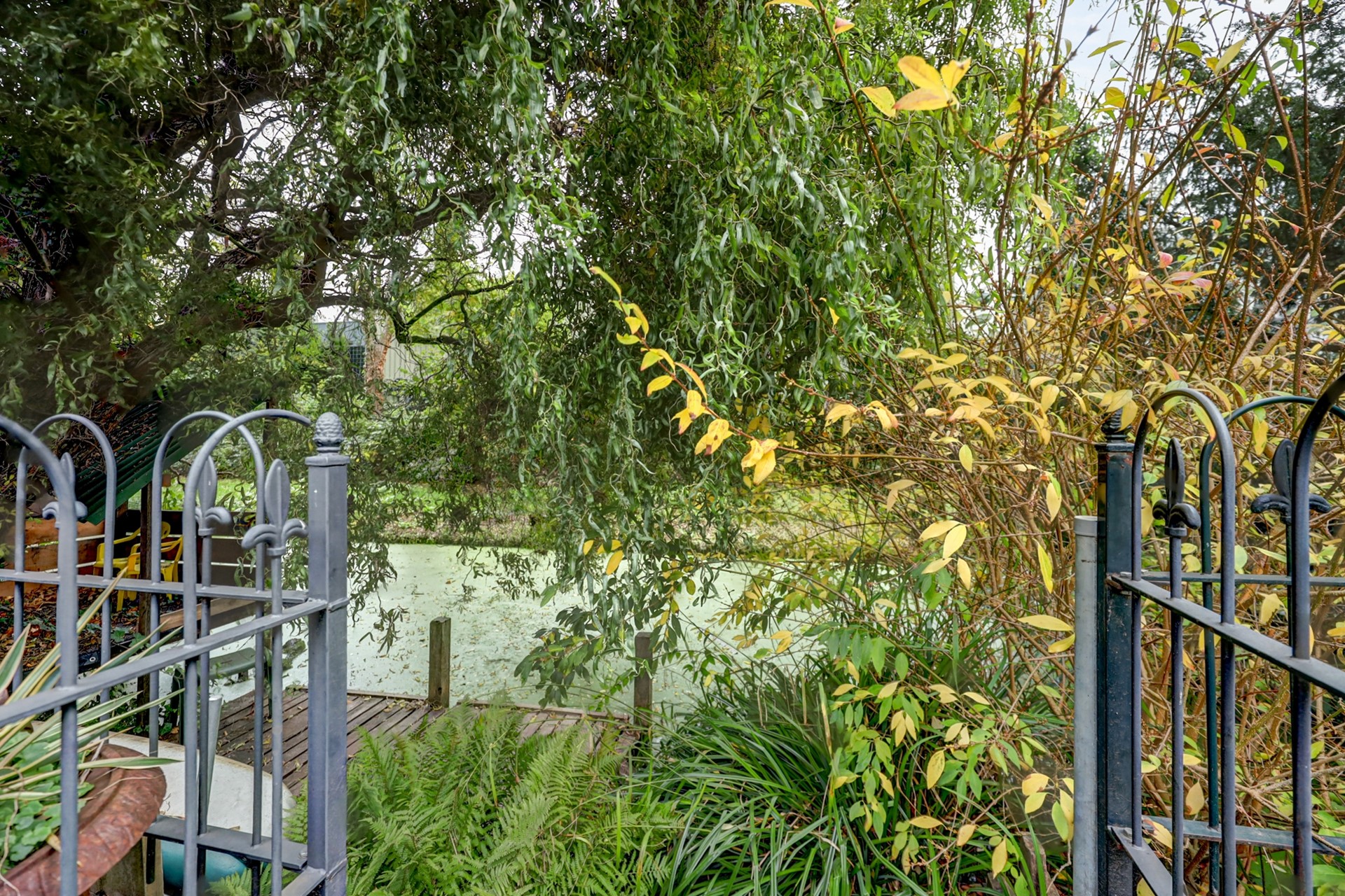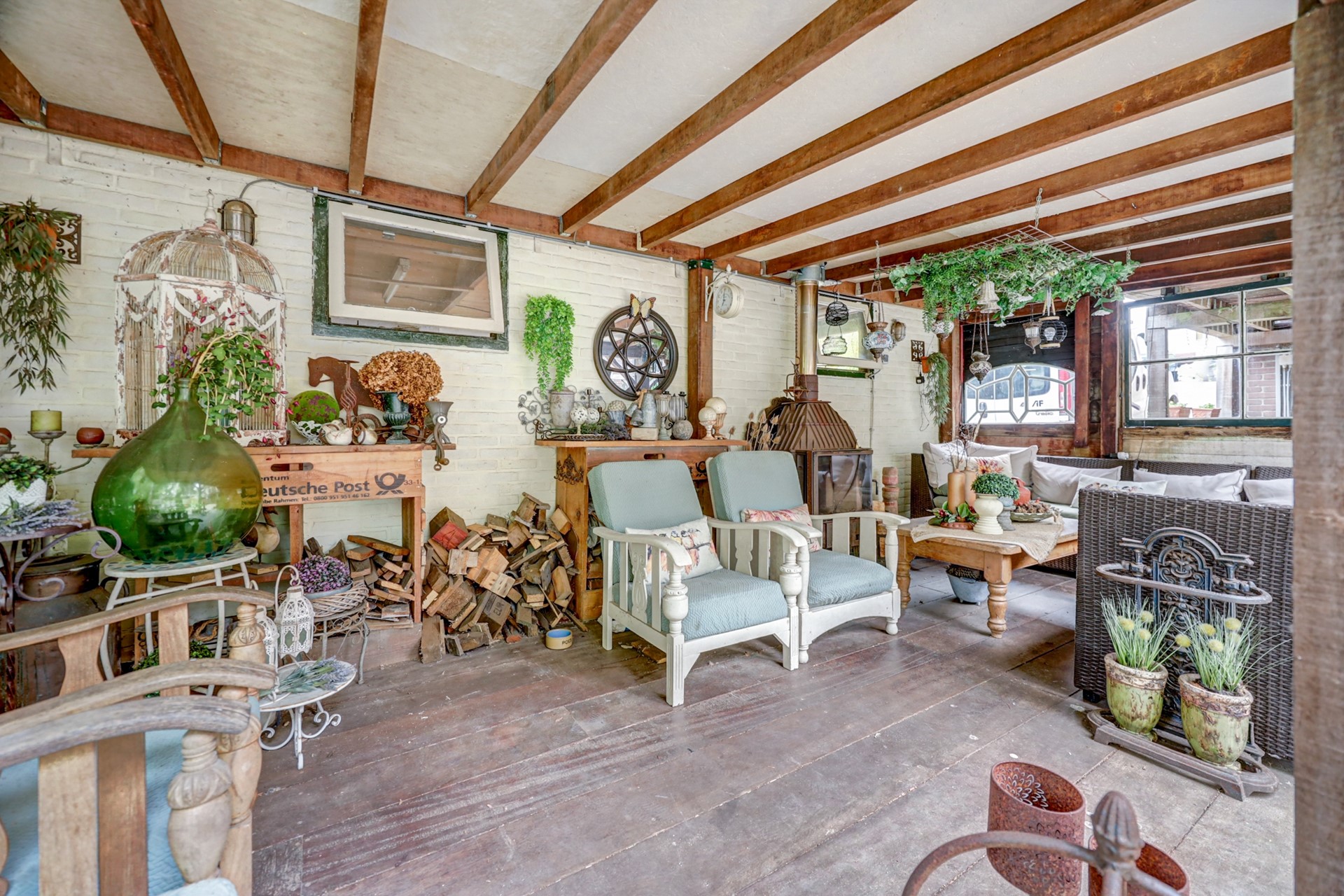 Voor het eerst op de markt: mooie hoekwoning met garage, oprit/parkeergelegenheid, atelier en grote vrije tuin met heerlijke veranda en vlonder aan waterpartij