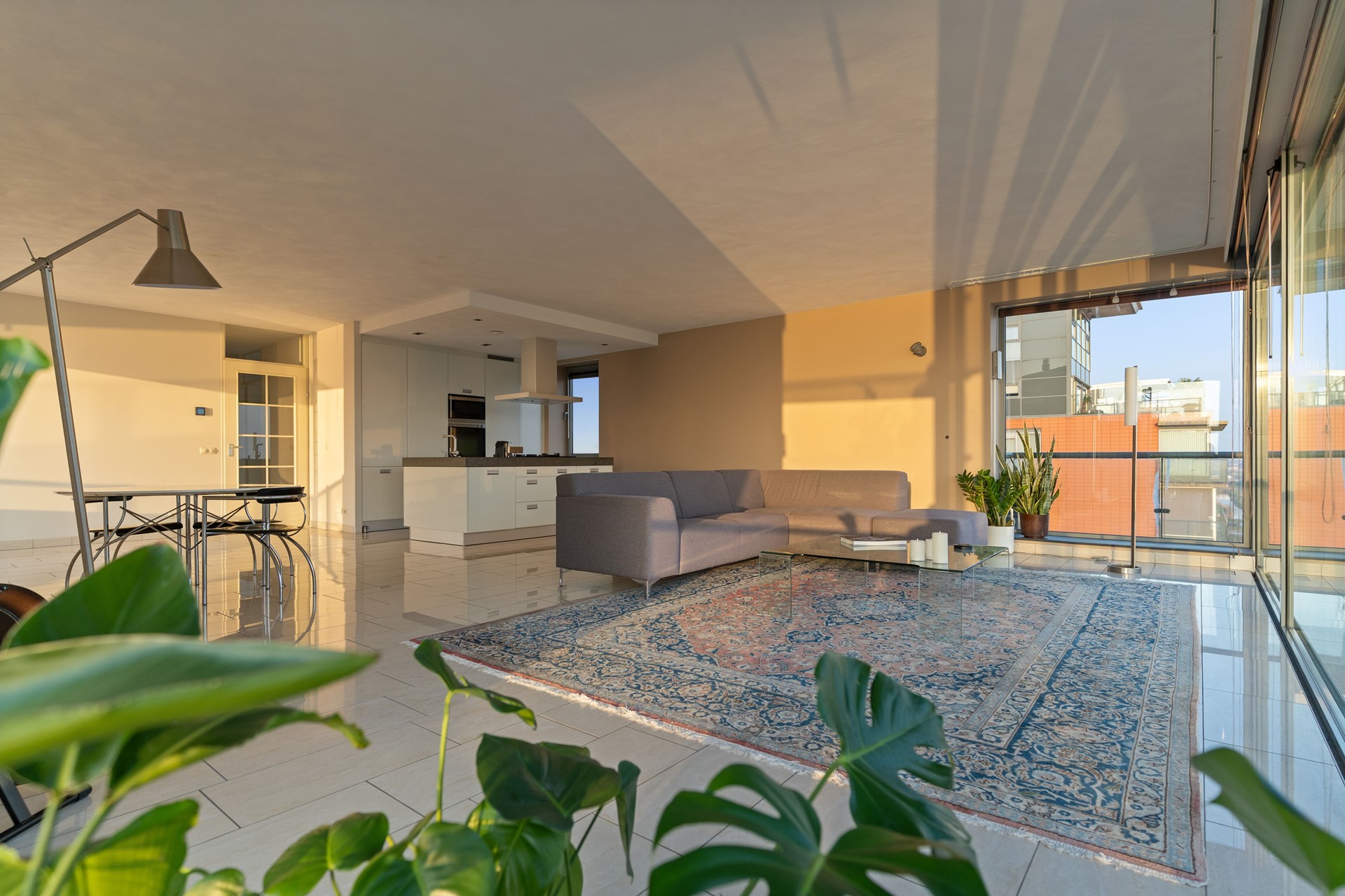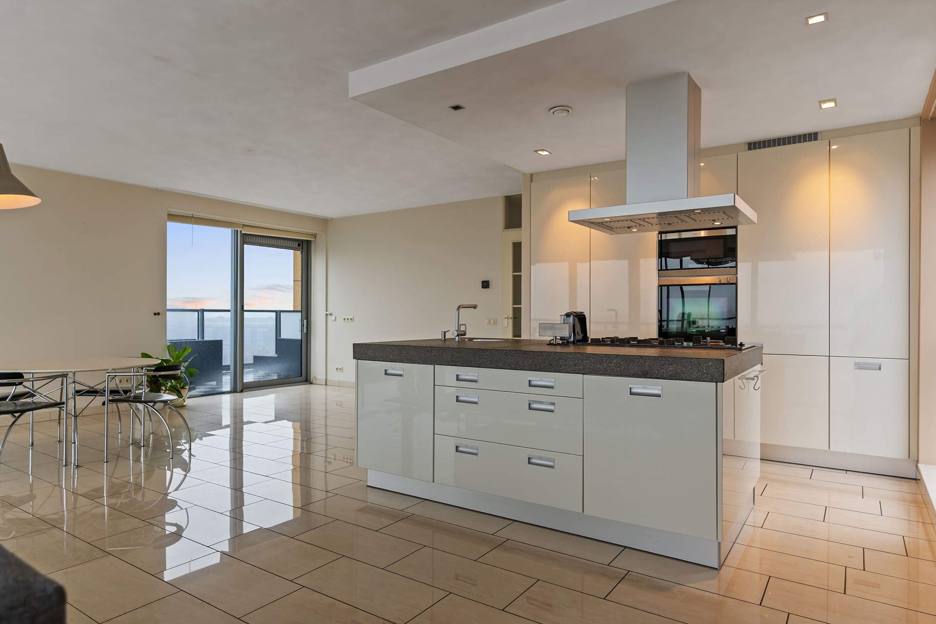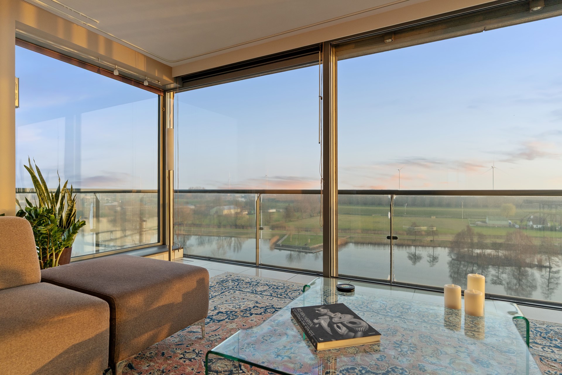 Vanuit de leefruimte bereikt u het ruime balkon, een heerlijke plek om te ontspannen en te genieten van het spectaculaire uitzicht over het water, de brug en het uitgestrekte landschap. Hier sluit u de avond af met een indrukwekkende zonsondergang.
