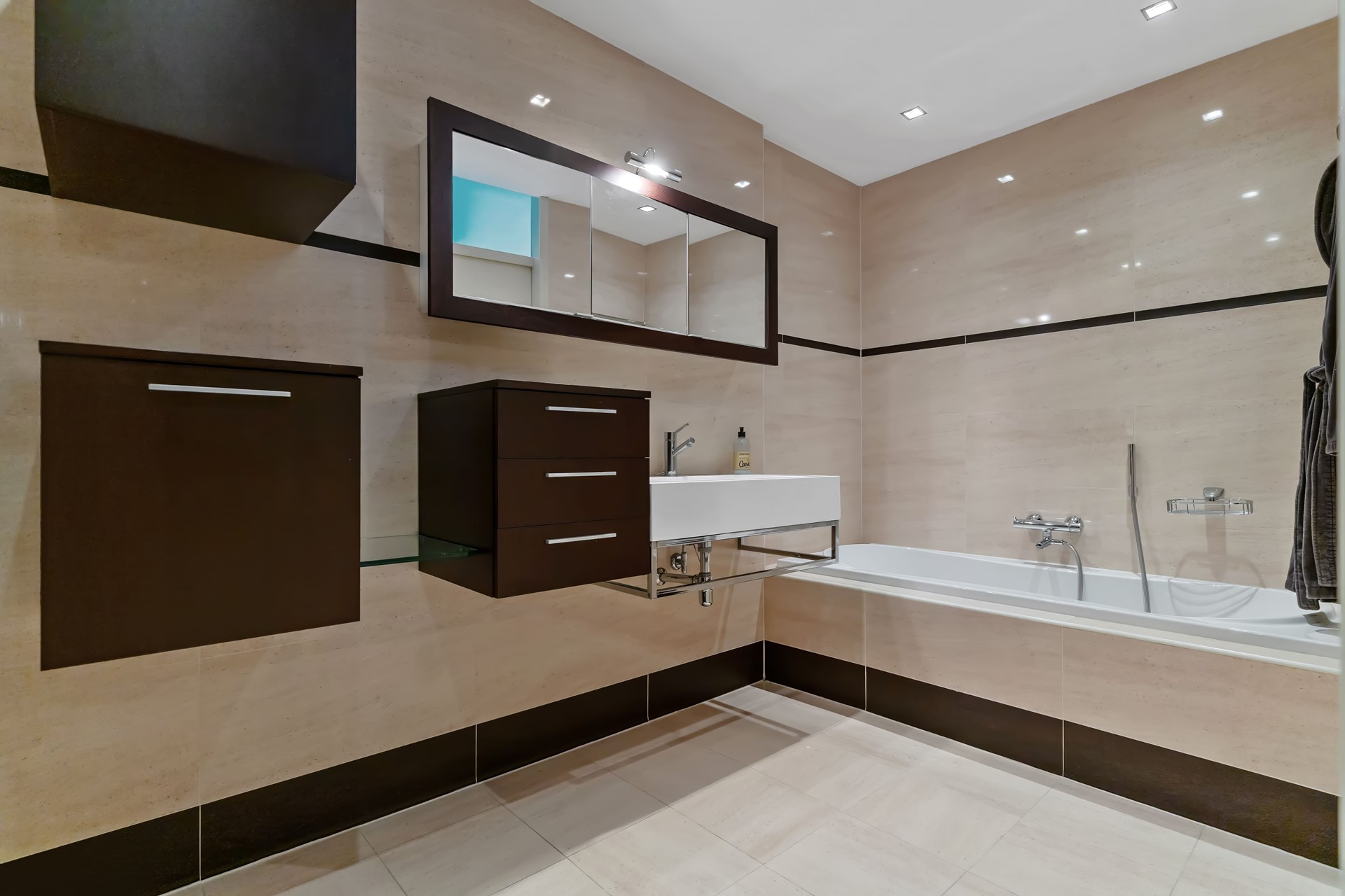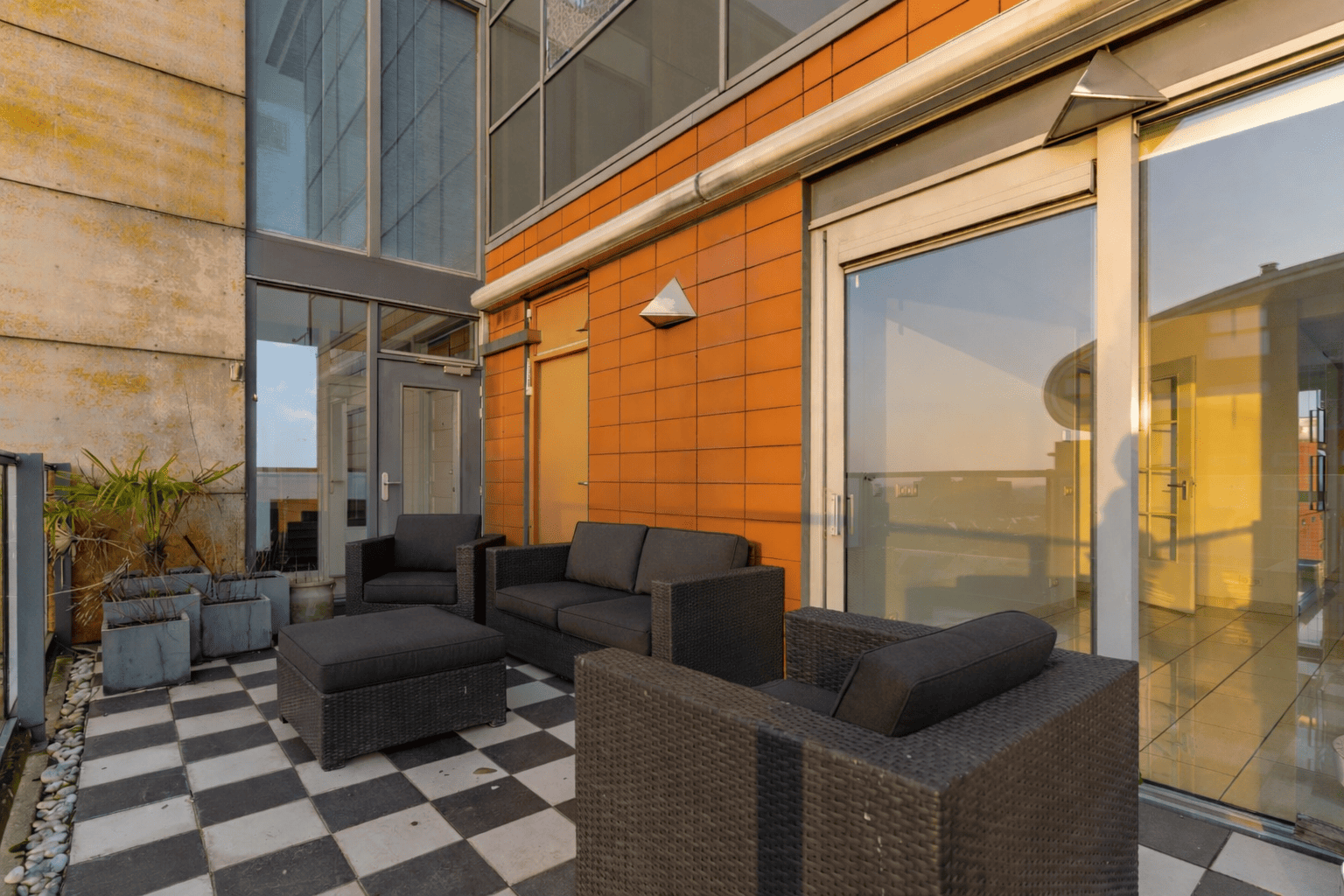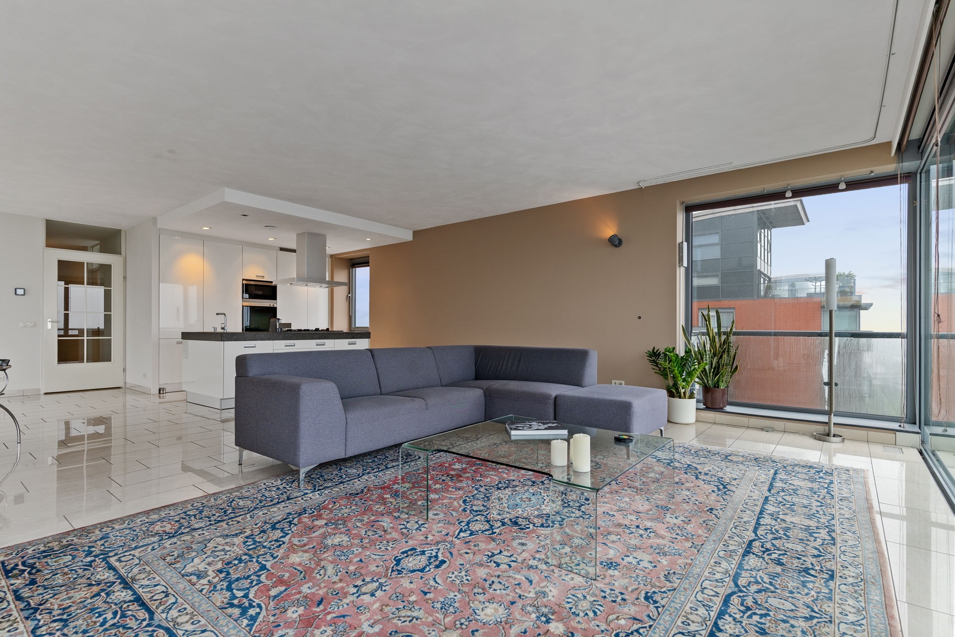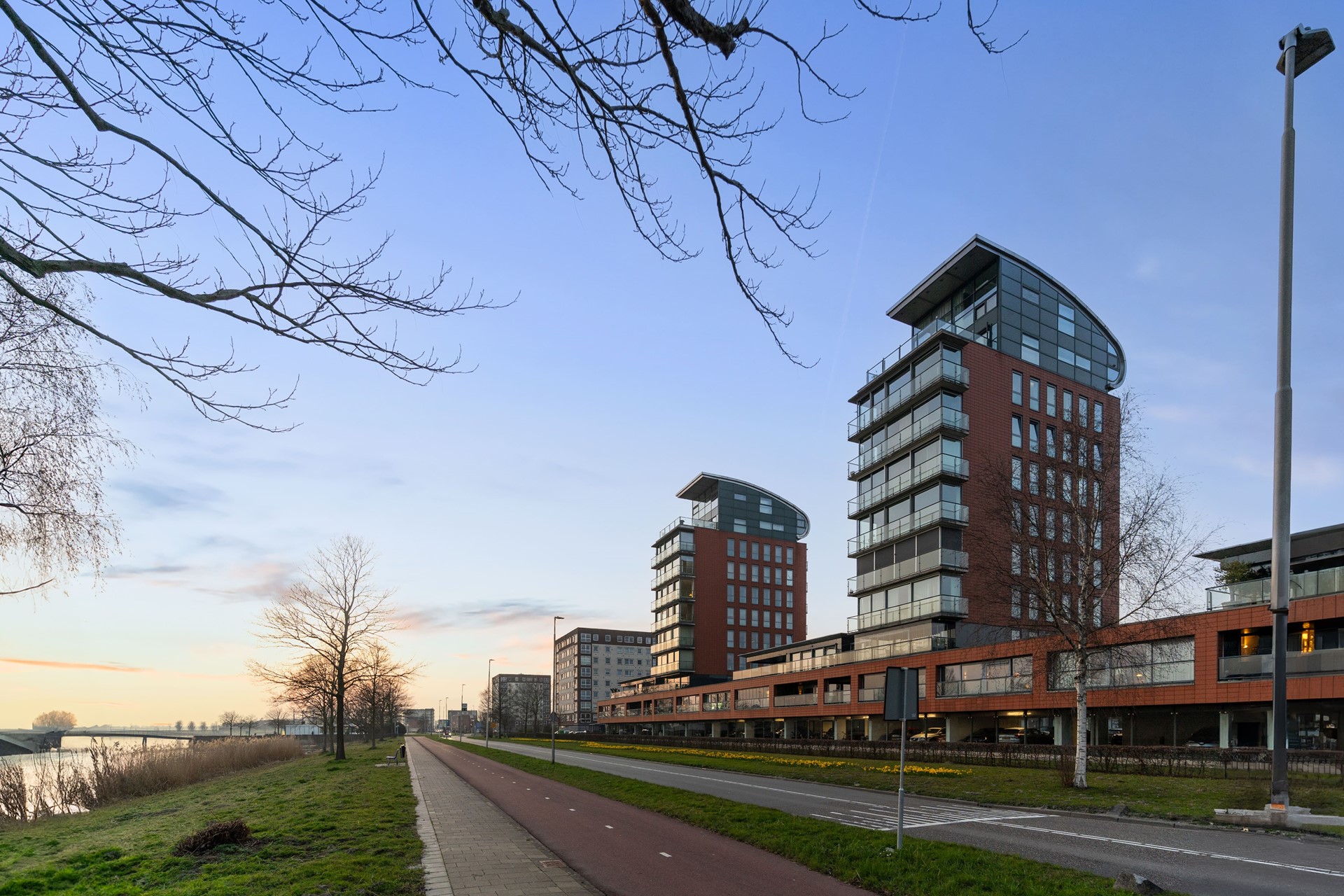 Vanuit de leefruimte bereikt u het ruime balkon, een heerlijke plek om te ontspannen en te genieten van het spectaculaire uitzicht over het water, de brug en het uitgestrekte landschap. Hier sluit u de avond af met een indrukwekkende zonsondergang.