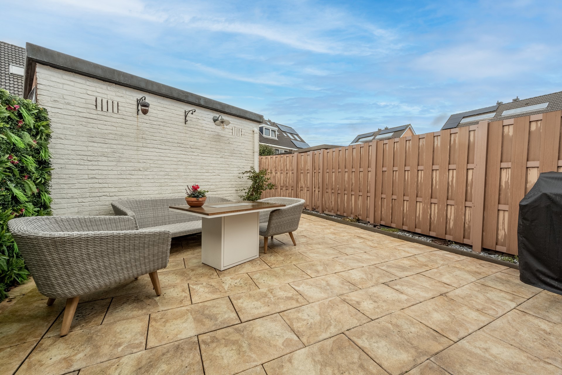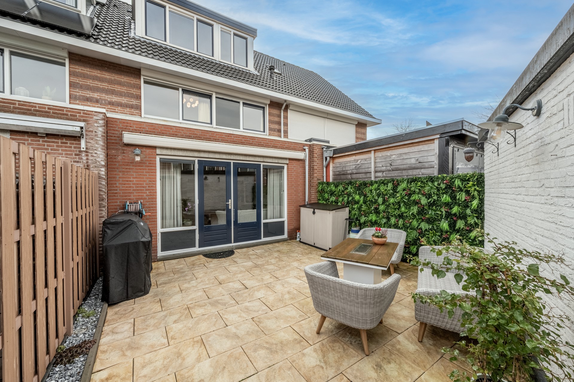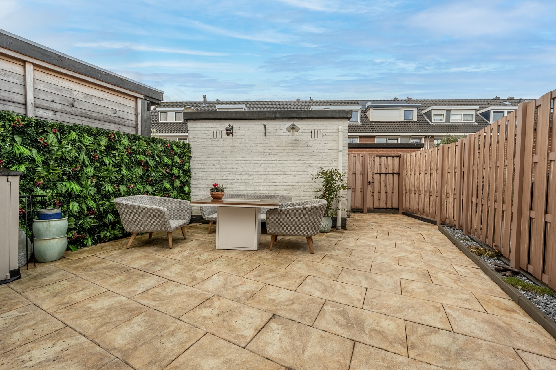 Vanuit de woonkamer stap je de onderhoudsvriendelijke achtertuin in, ideaal voor lange zomeravonden. Achterin staat een praktische berging.