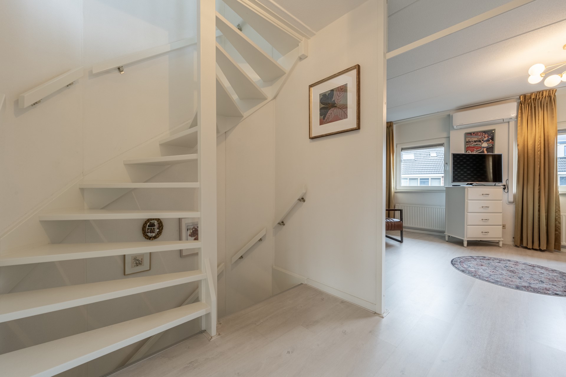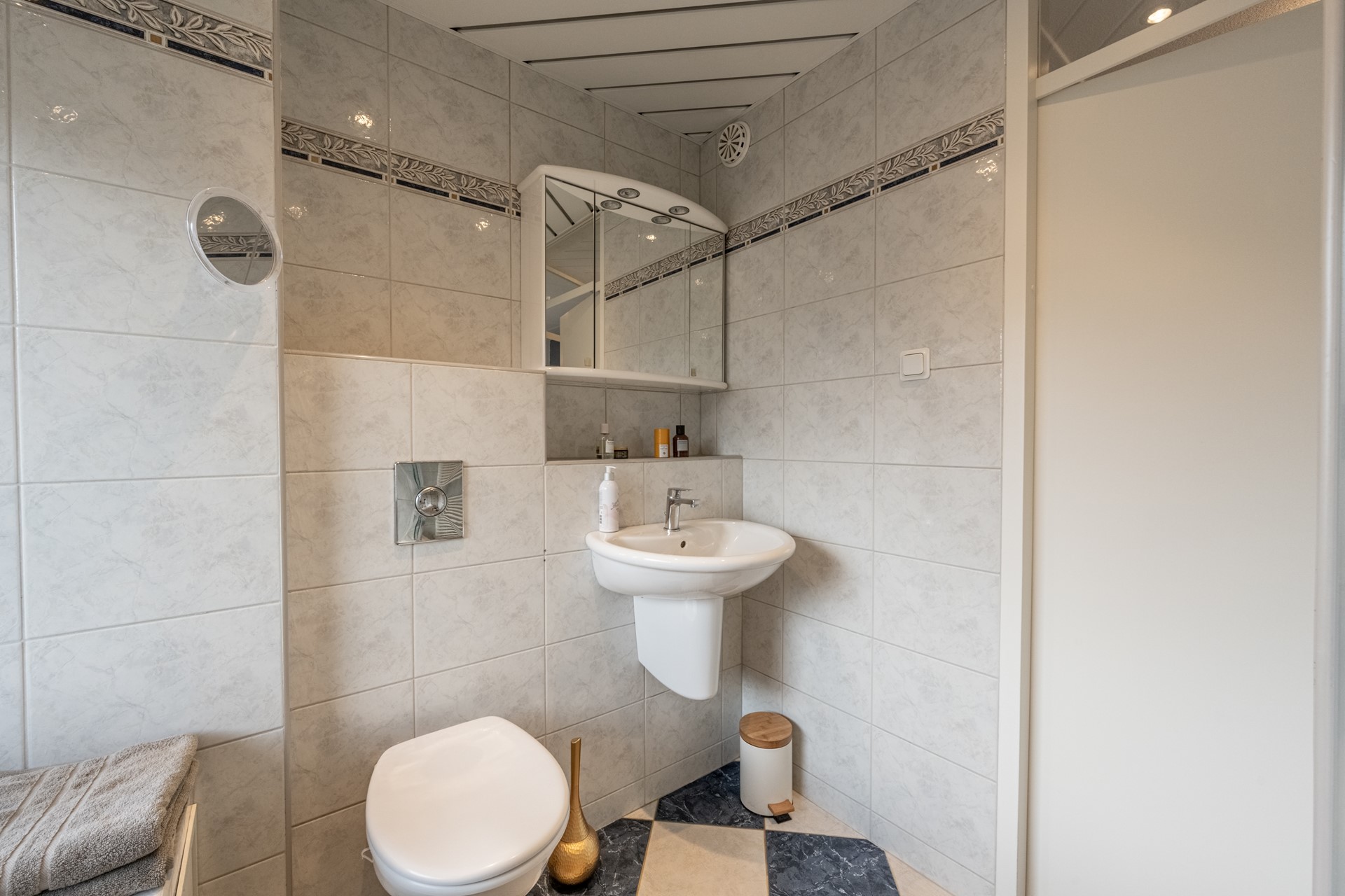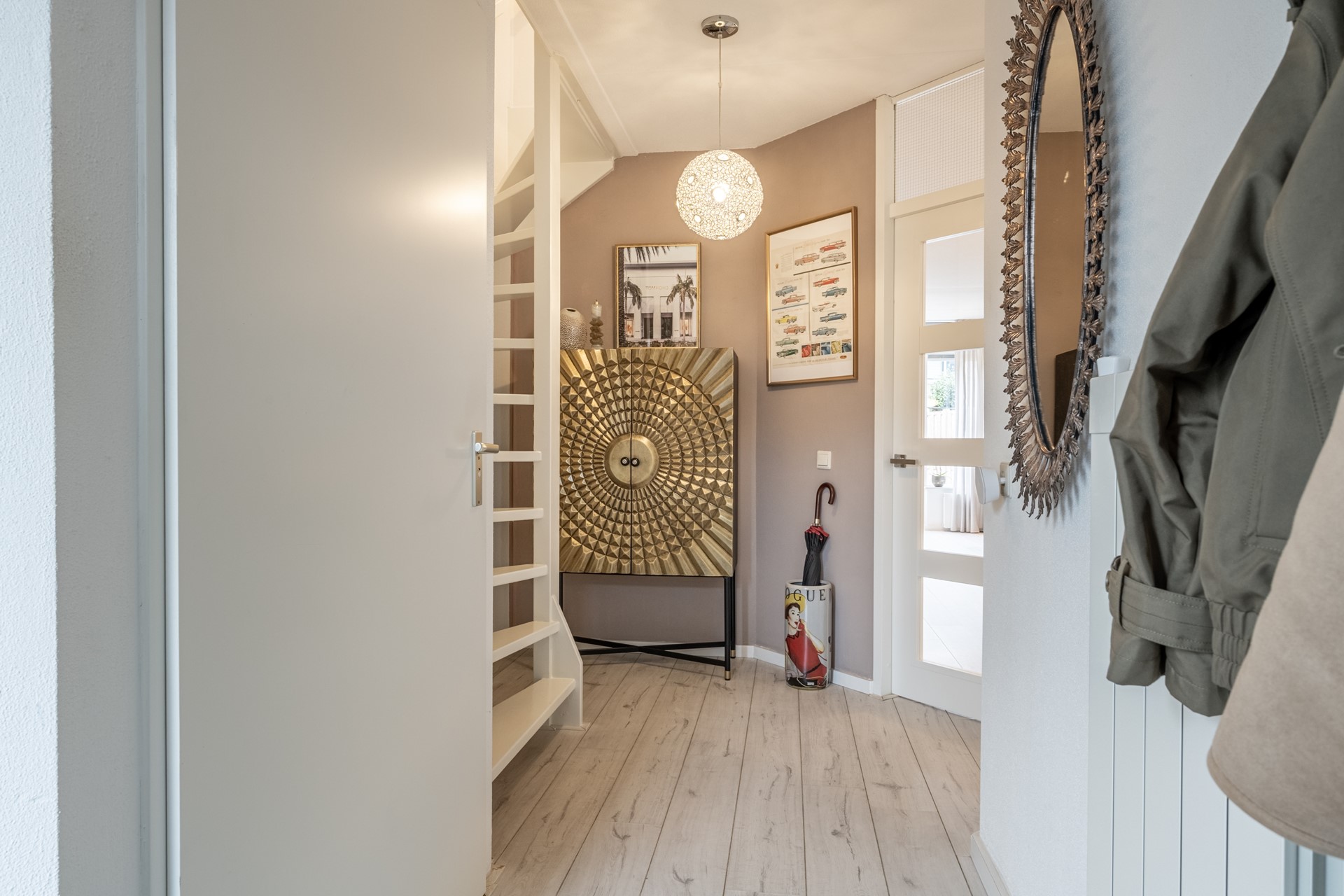Vanuit de woonkamer stap je de onderhoudsvriendelijke achtertuin in, ideaal voor lange zomeravonden. Achterin staat een praktische berging.