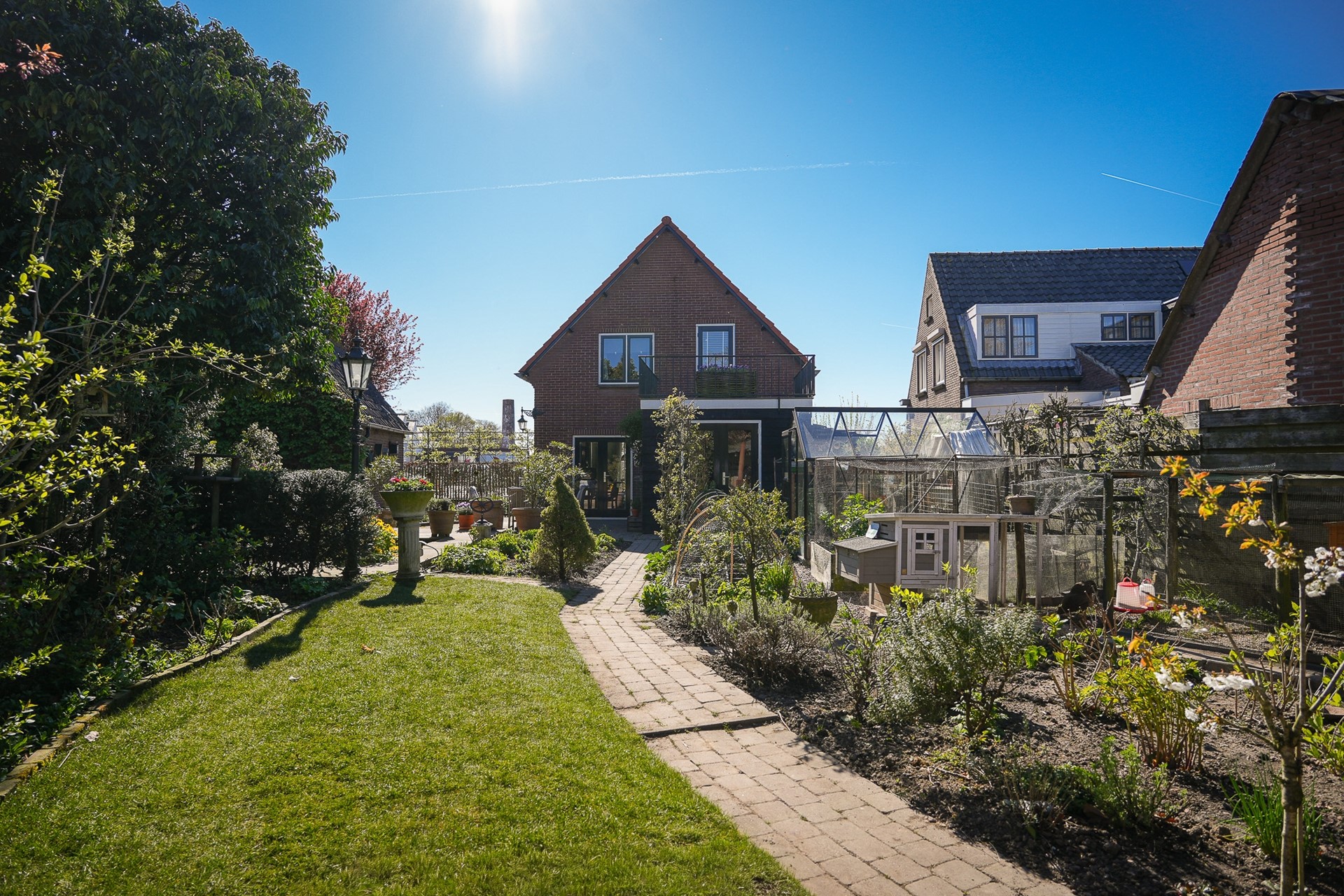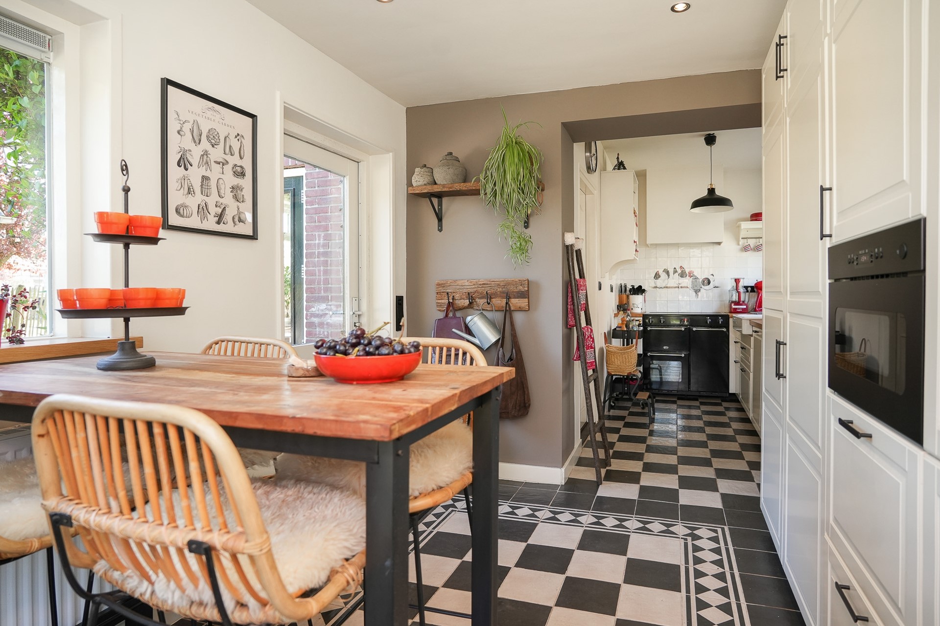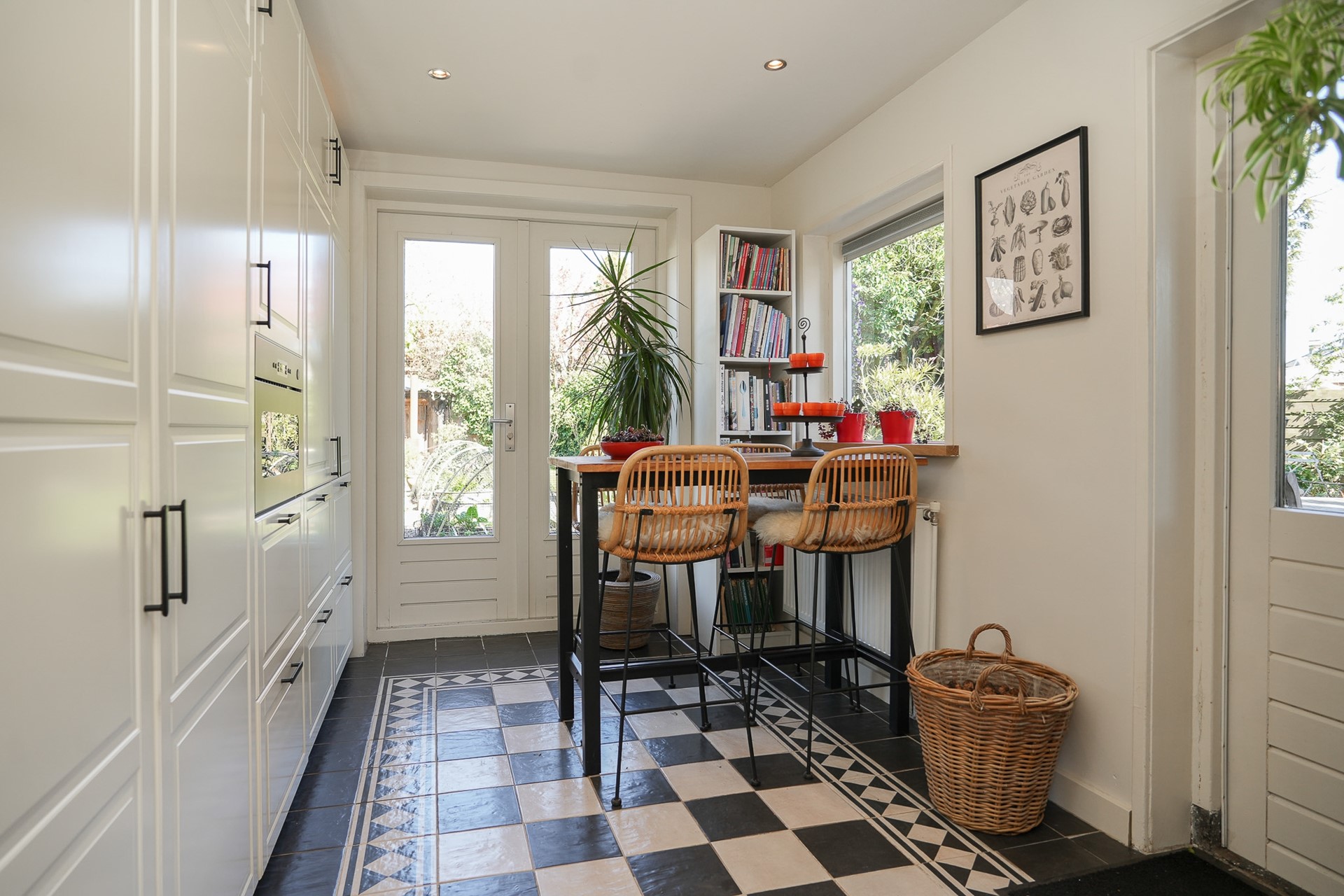 Zowel via de openslaande deuren als de achterdeur loop je zo de tuin in.
