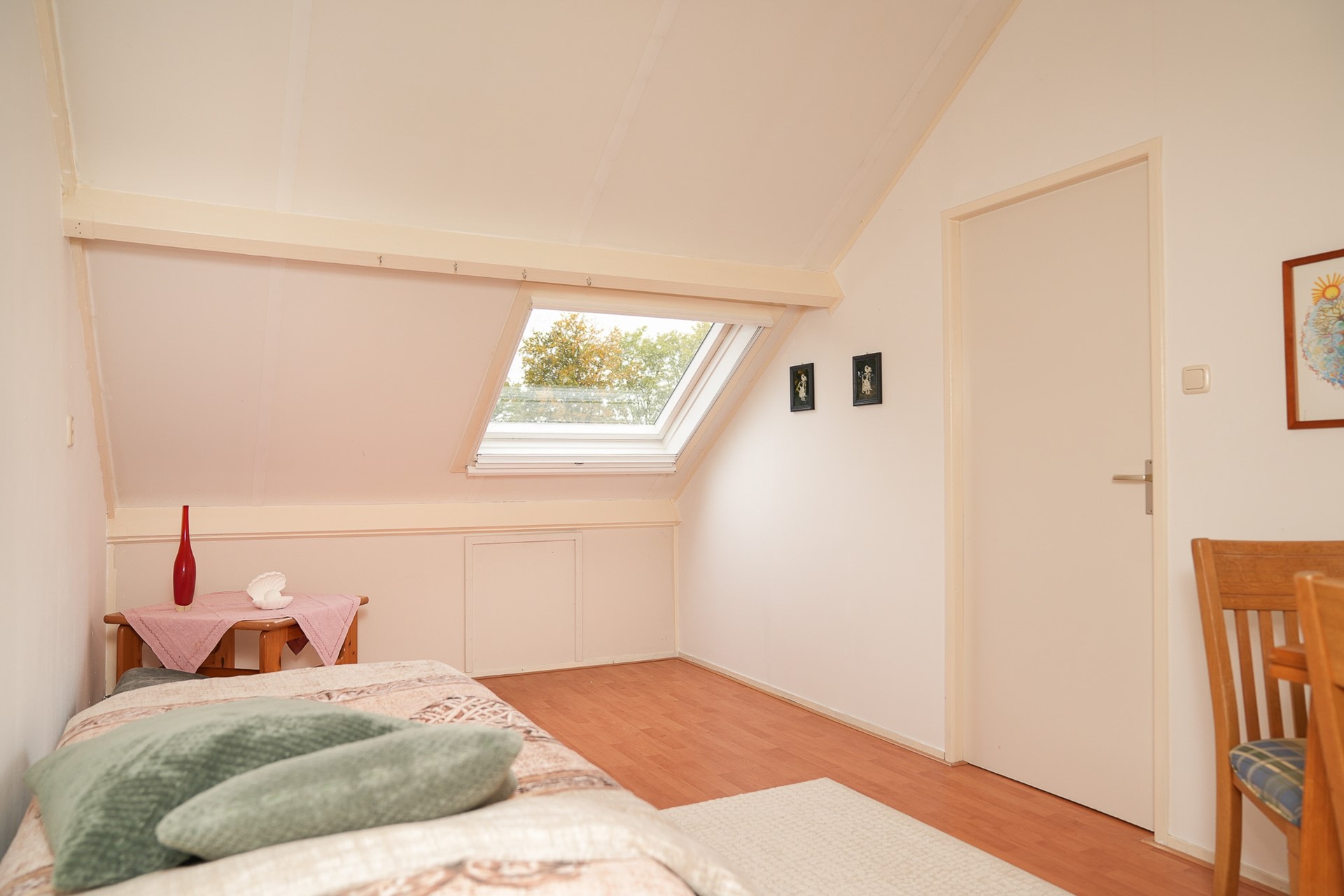De tweede slaapkamer is ook ruim en heeft door het dakraam aan de achterzijde fijne lichtinval.