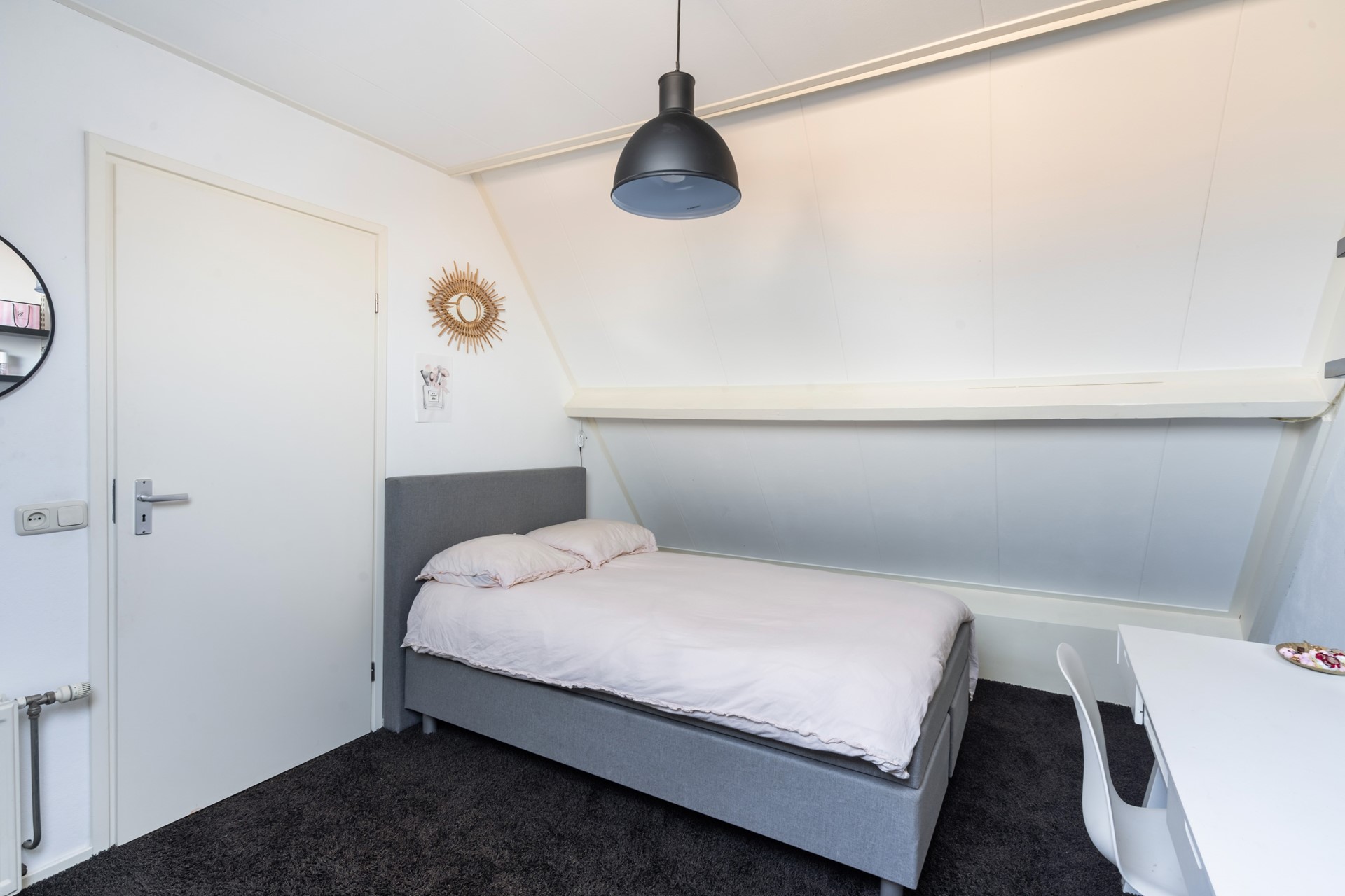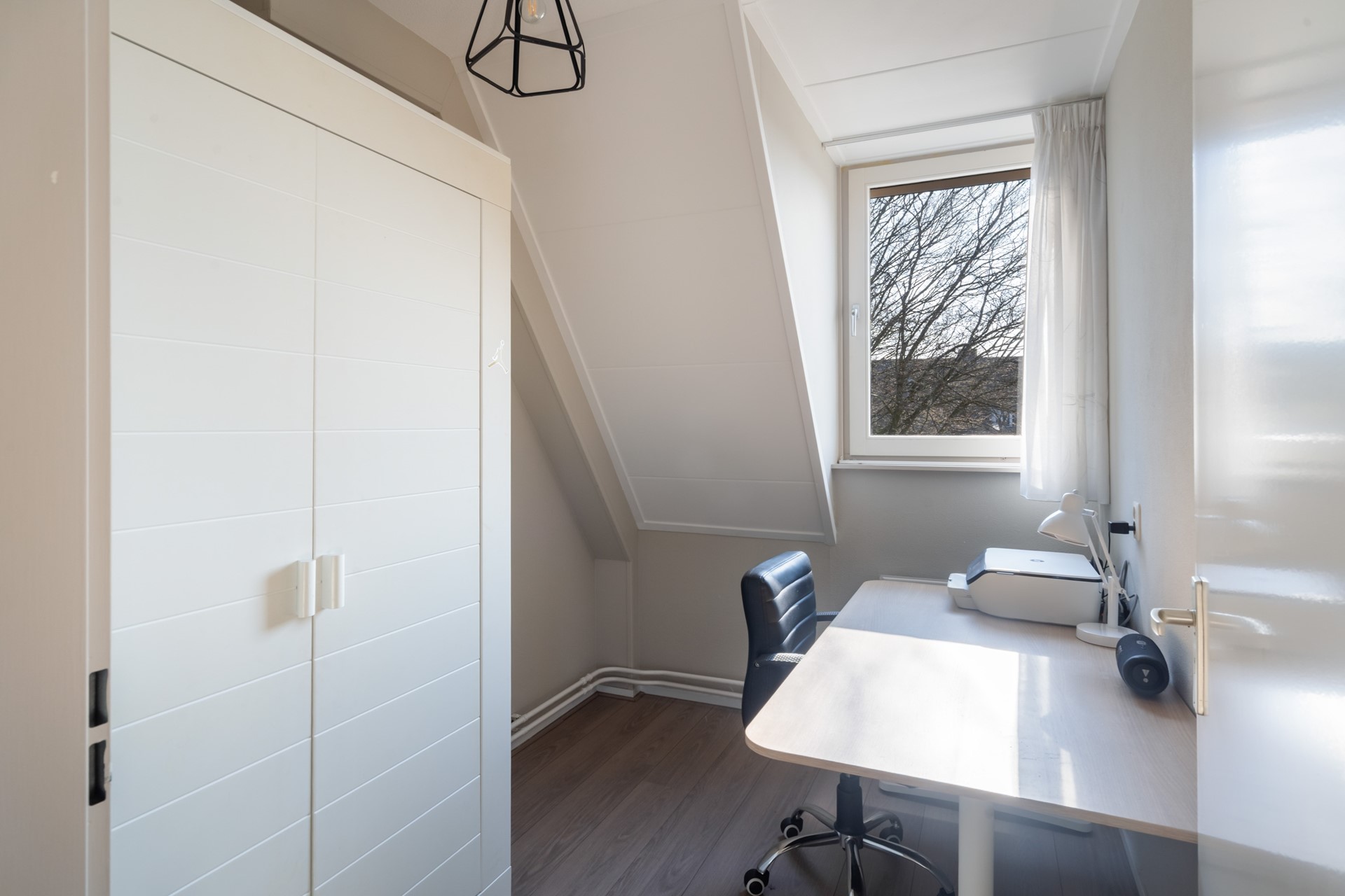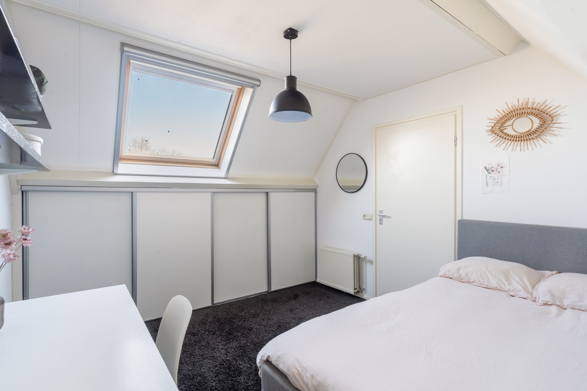 Praktische voorzolder met dakvenster, cv-opstelling en wasmachineaansluiting. Slaapkamer voorzien van een Velux dakvenster en bergruimte achter de knieschotten.