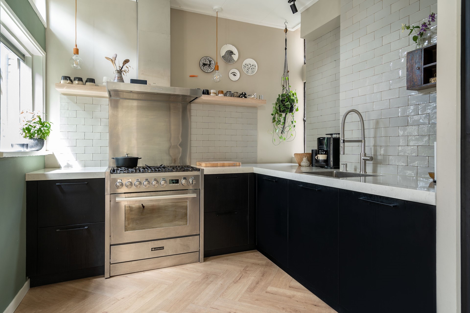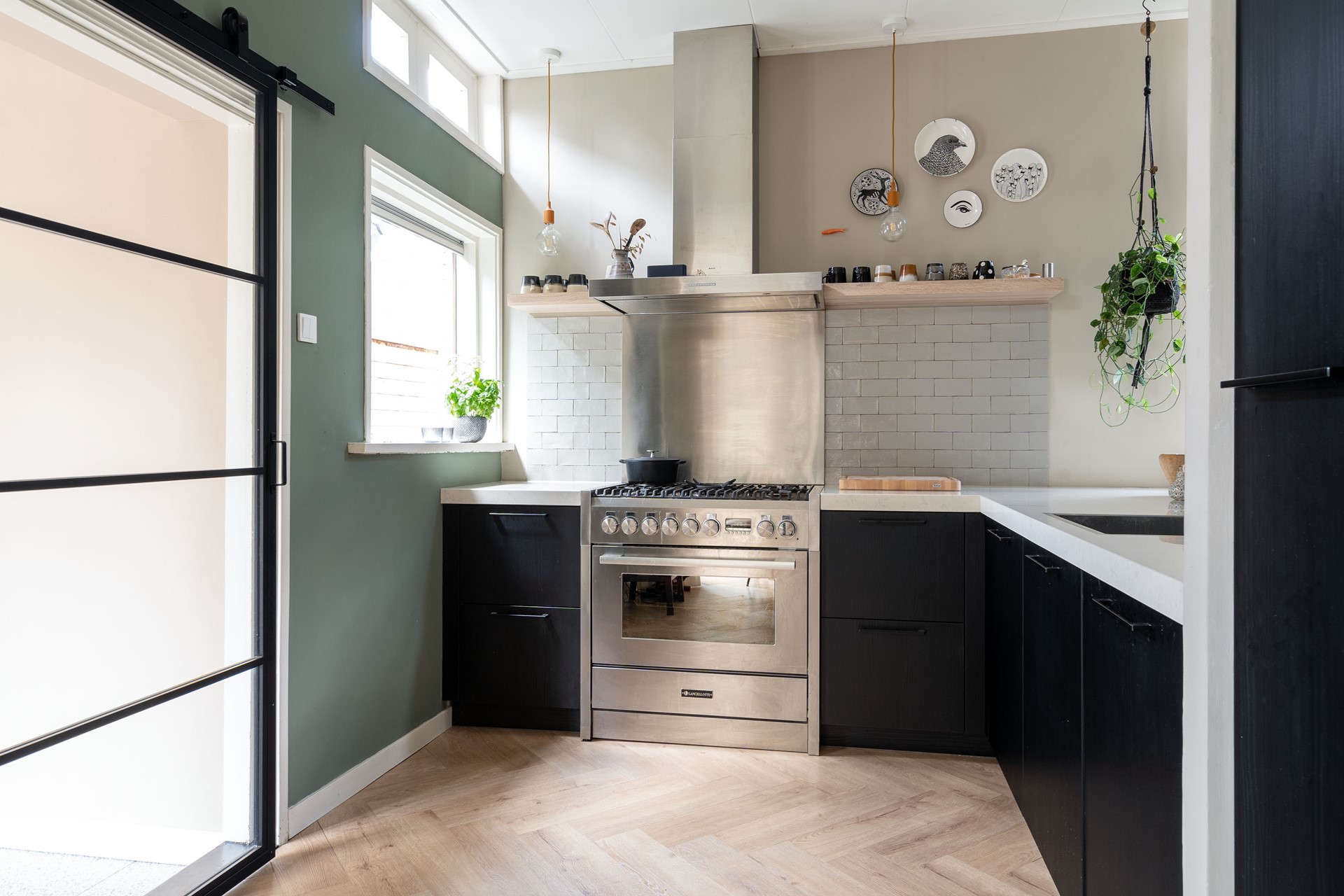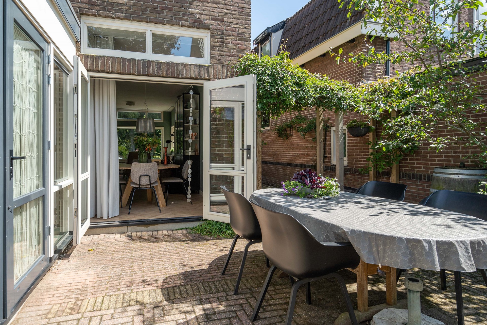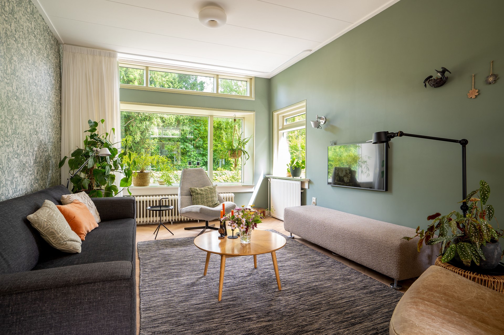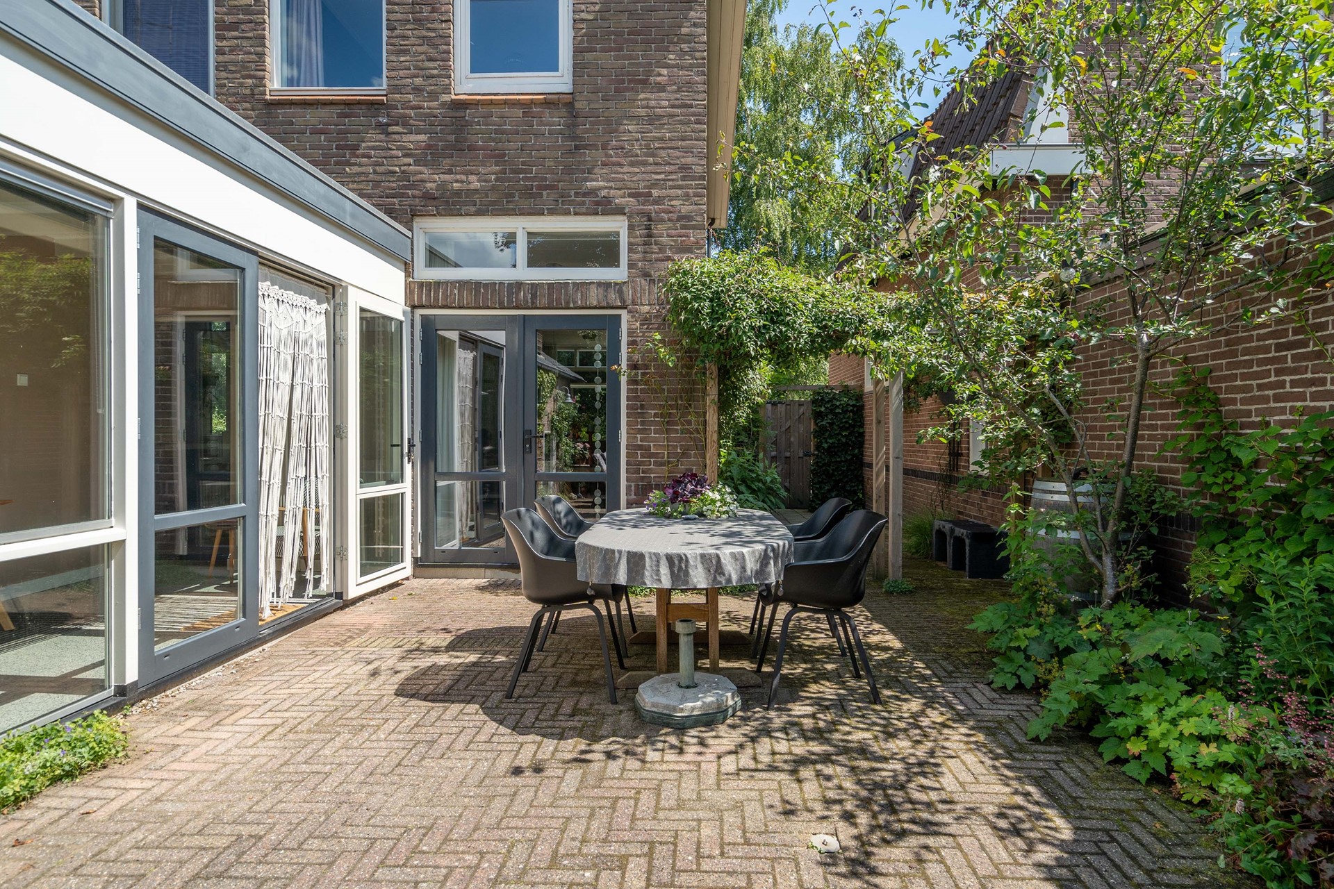 De woning zelf biedt een heerlijke leefruimte. Bij binnenkomst in de prachtige hal, valt direct de lichtinval op, dat ook in de stijlvolle woonkamer, met grote ramen en een doorloop aan de achterzijde naar de fraaie tuinkamer annex eetkamer, met openslaande tuindeuren naar de zonnige tuin. De woonkamer is straatgericht en voelt open en luchtig aan. De moderne, halfopen keuken is compleet uitgerust met inbouwapparatuur, waaronder: vrijstaand elektrisch fornuis (5-pits) en vaatwasser. Een keuken bij uitstek ook geschikt om gelijktijdig het eten te bereiden en ook deel te nemen aan het gesprek met familie/vrienden.