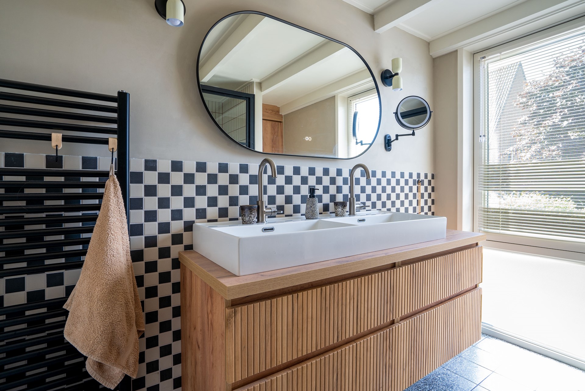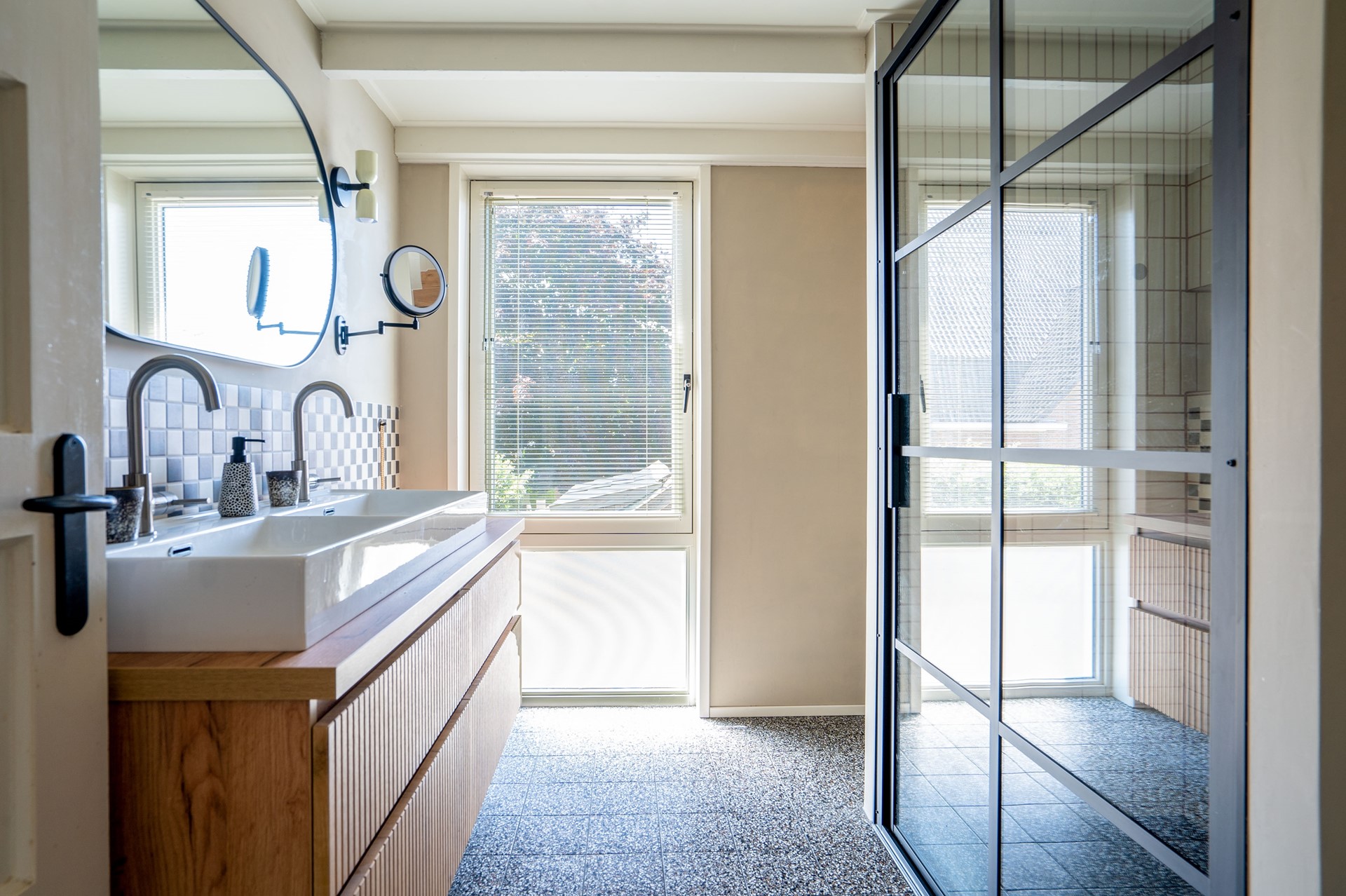 Op de eerste verdieping bevinden zich drie slaapkamers, waarvan één slaapkamer is gerealiseerd als master bedroom eveneens met veel daglicht inval. De prachtige, verbouwde badkamer (2024) is modern afgewerkt en beschikt over een inloopdouche, toilet, een stijlvol badkamer meubel, bergruimte en vloerverwarming. De gehele verdieping is bovendien voorzien van een sfeervolle en karakteristieke vloer.