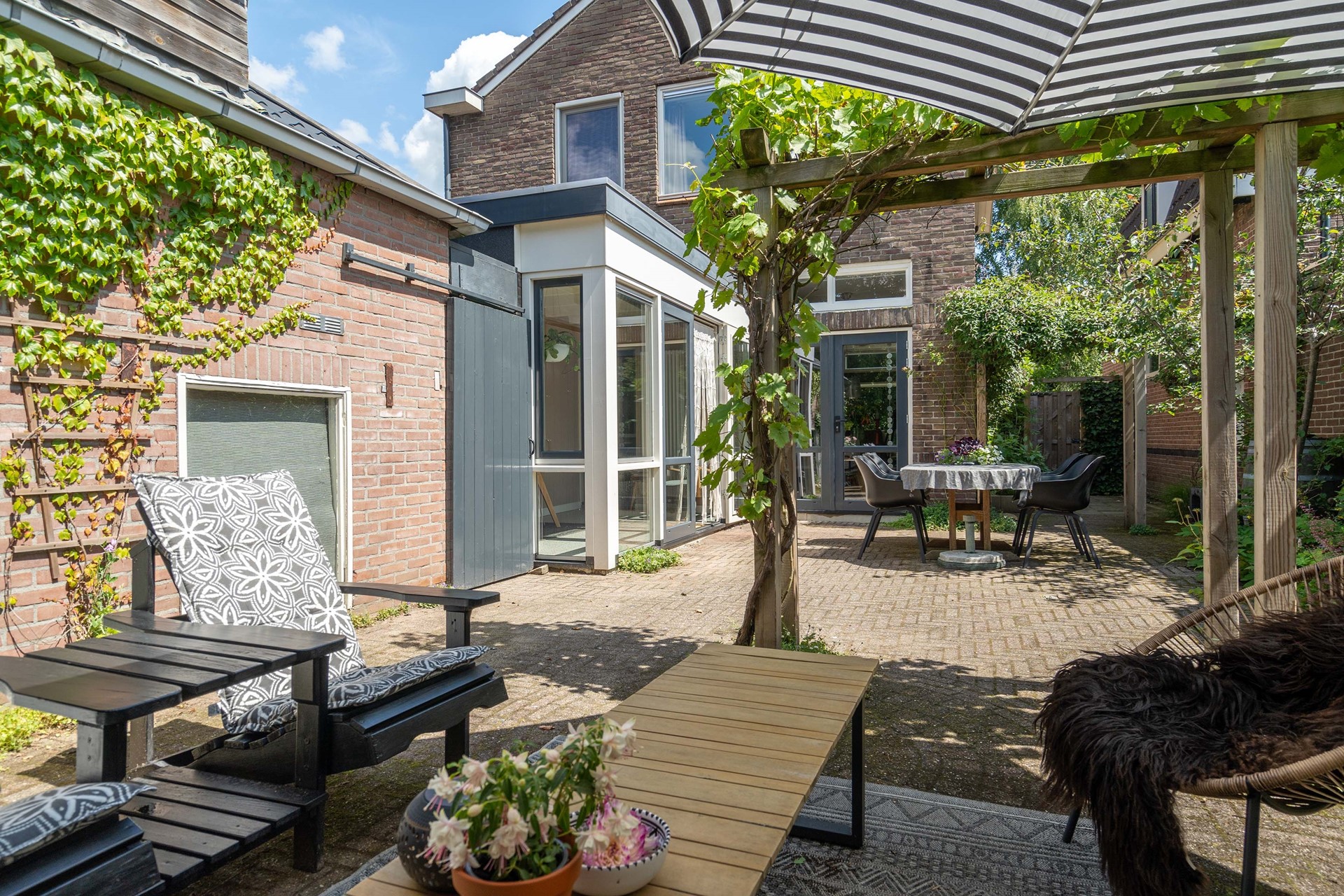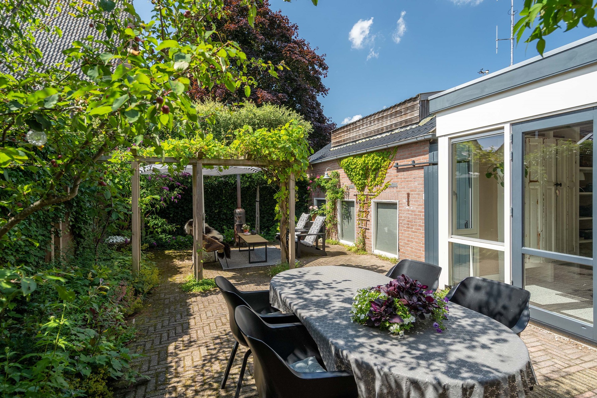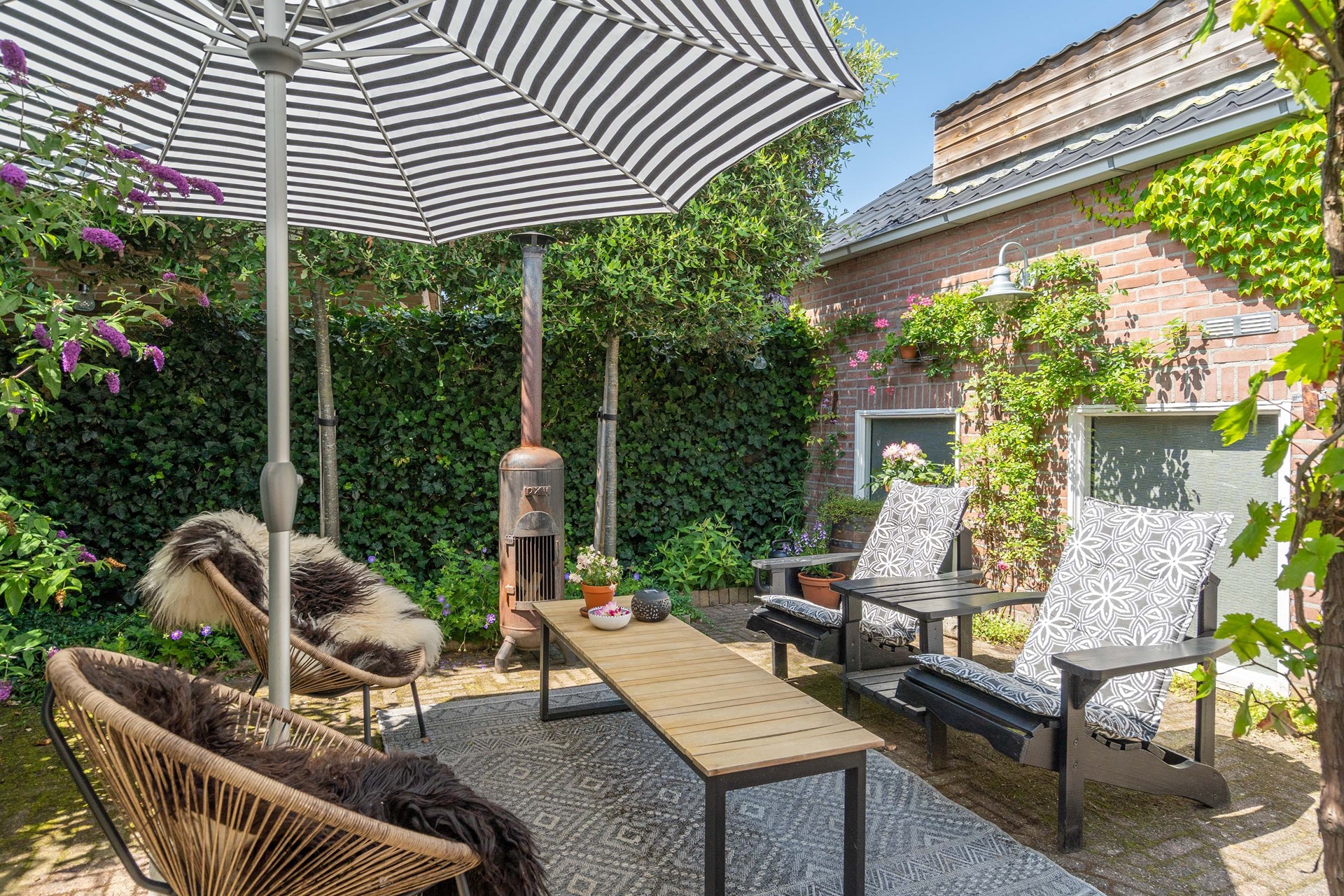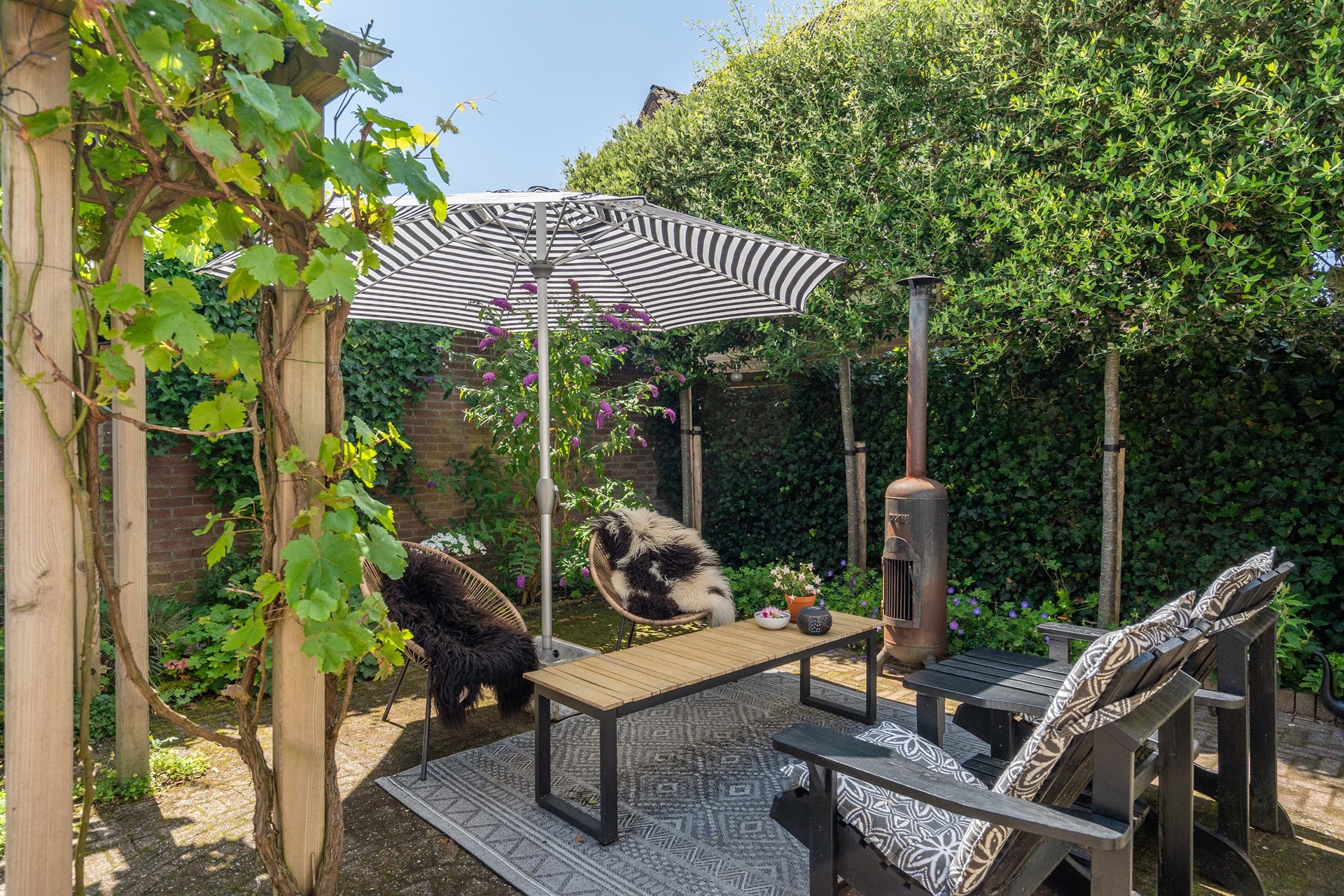 Ook buiten is het volop genieten. De achter-/zijtuin ligt ideaal op het zuiden en westen, waardoor je van de zon kunt profiteren. Een heerlijke plek voor lange zomeravonden.