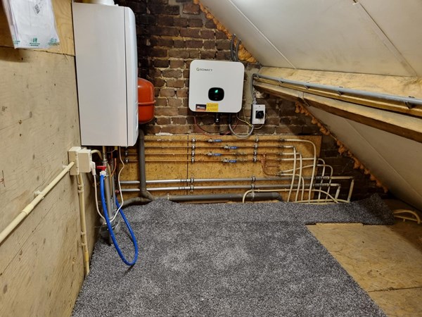 Hier bevindt zich de vernieuwde Cv-installatie en monitor van de zonnepanelen. Tevens biedt de zolderruimte mogelijkheid tot het maken van een extra slaapkamer.