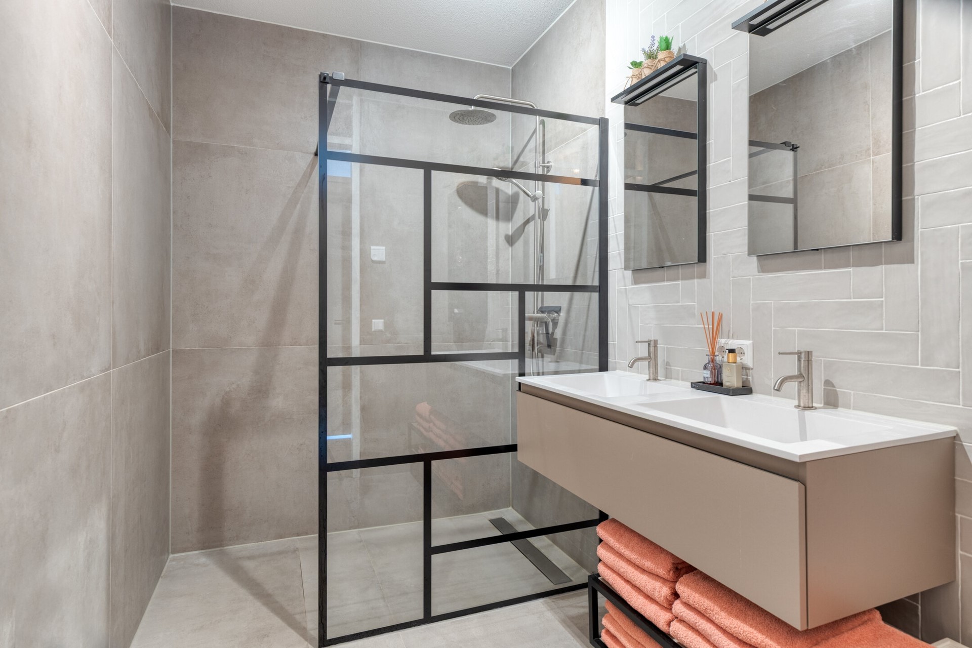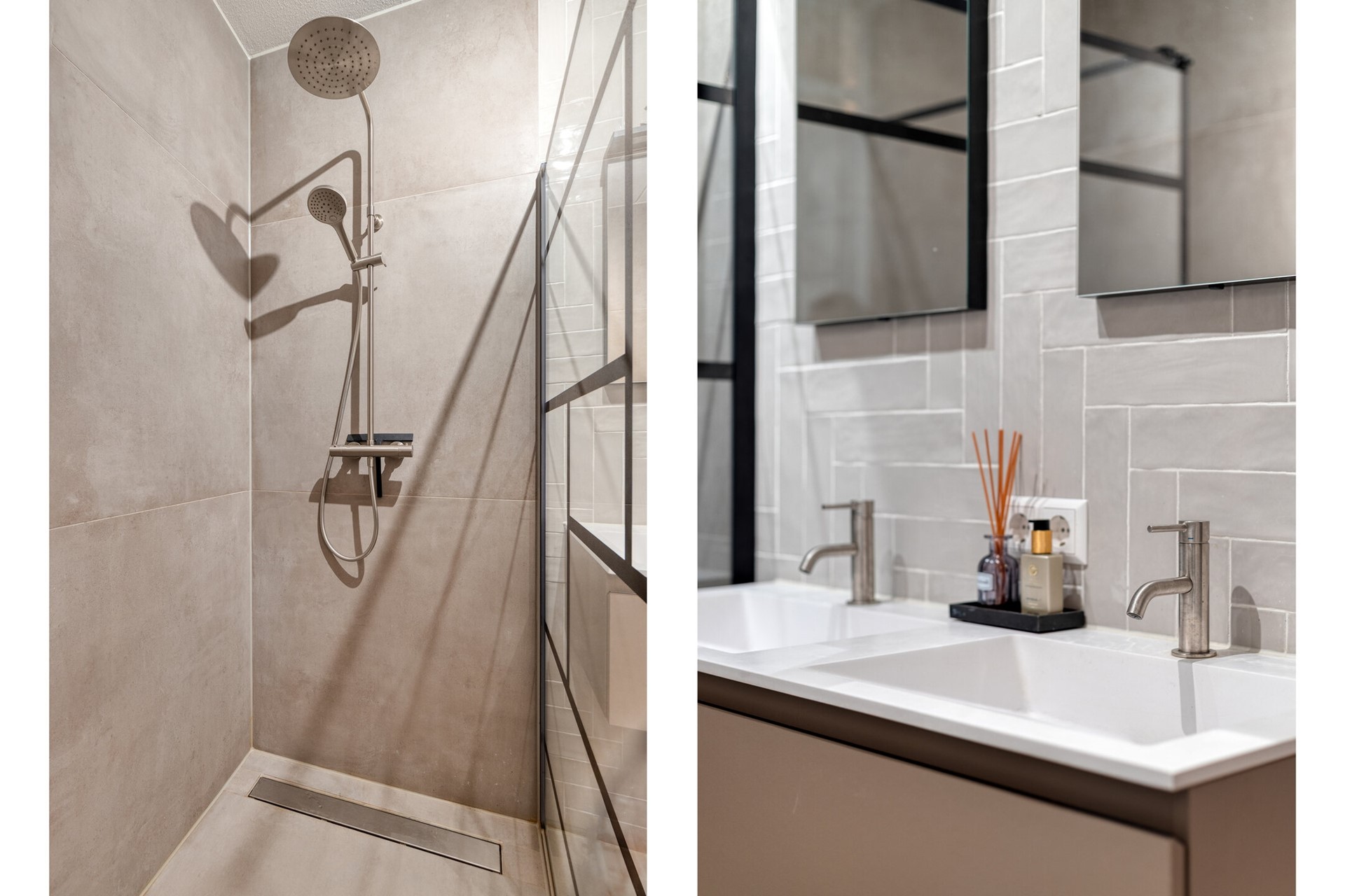 Warme, haast wellnessachtige, badkamer is helemaal van deze tijd. Een zéér fijne plek om je op te frissen voor de dag begint en of voor het slapen gaan. Ruimte genoeg om met zijn tweetjes gebruik van te maken.