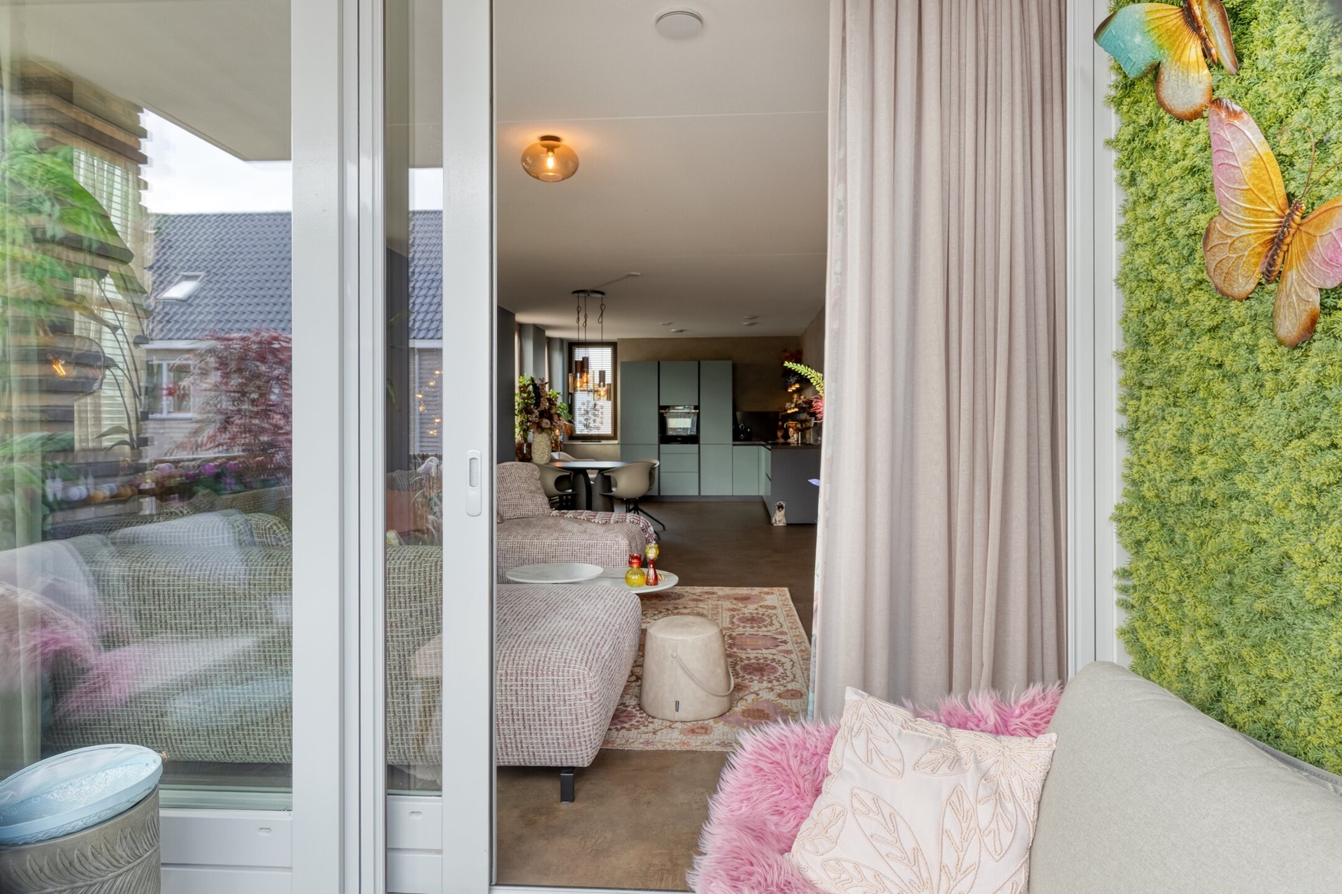 Via de woonkamer - doormiddel van een schuifpui - is er toegang tot het balkon. Een privacy vol balkon met een mooi uitzicht op een deel van de ganzenvijver en de natuur. Ook het balkon is ruim te noemen. Een gezellige zithoek kun je hier prima plaatsen samen met de nodige plantenbakken voor het nodige groen.