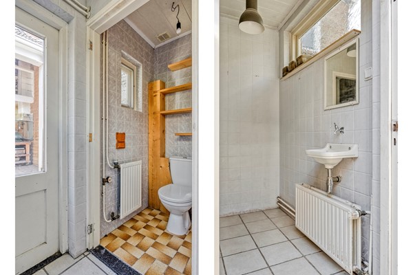 Extra toiletruimte die zich goed laat omtoveren tot een vaste kast voor de wasmachine. Het toilet is voorzien van een duoblok toilet.