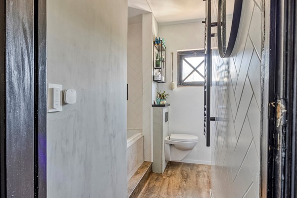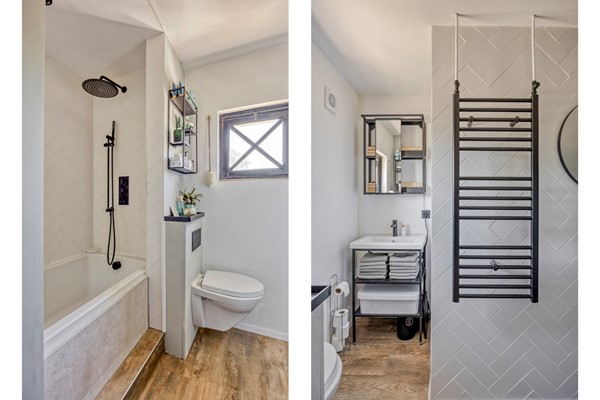 Gezellige en verrassende badkamer (2021) die van alle gemakken is voorzien. Een fijne plek om je even op te frissen of even helemaal te ontspannen in het bad. Het vensterraam zorgt voor de natuurlijke ventilatie en het daglicht. De badkamer is voorzien van: