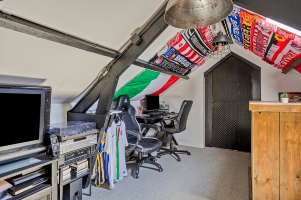 Via de vaste trap in de tuin is er toegang tot de verdiepingsvloer van de overkapping en garage. Een leuk balkon zorgt voor een gezellig uitzicht en een stukje privé buitenruimte van de extra kamer. De extra kamer boven de garage heeft tal van mogelijkheden. Een mancave? Een kamer voor één van de tieners waar ze in alle rust kunnen genieten van hun muziek of favoriete series. Mocht je werk en privé goed gescheiden houden, dan is dit uiteraard ook de uitstekende werkkamer. Er zijn tal van mogelijk. Het zal nog lastig worden wie deze ruimte zal gaan gebruiken.