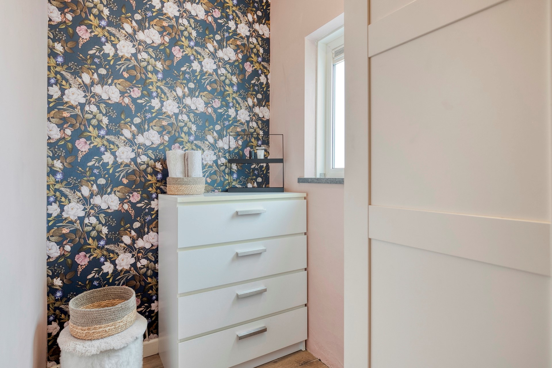 Bij binnenkomst kom je in een compacte hal, waar de jassen kunnen worden gehangen. Direct merk je dat deze woning verzorgt en sfeervol is. Vanuit hier heb je toegang tot de woonkamer.