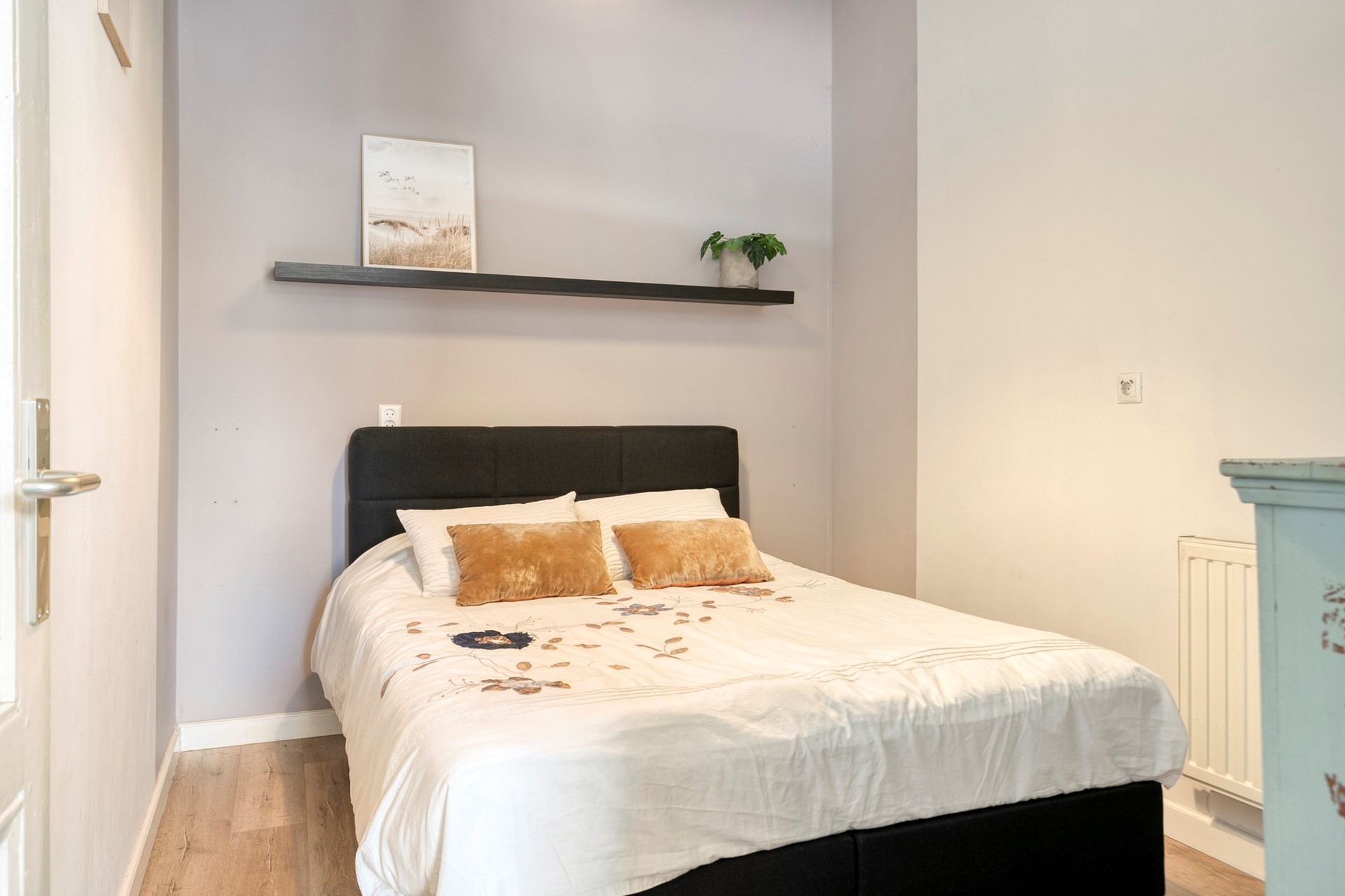 Sfeervolle slaapkamer waar je in alle privacy kunt genieten van de rust tijdens het slapen. Een royale tweepersoonsbed past er met gemak in.