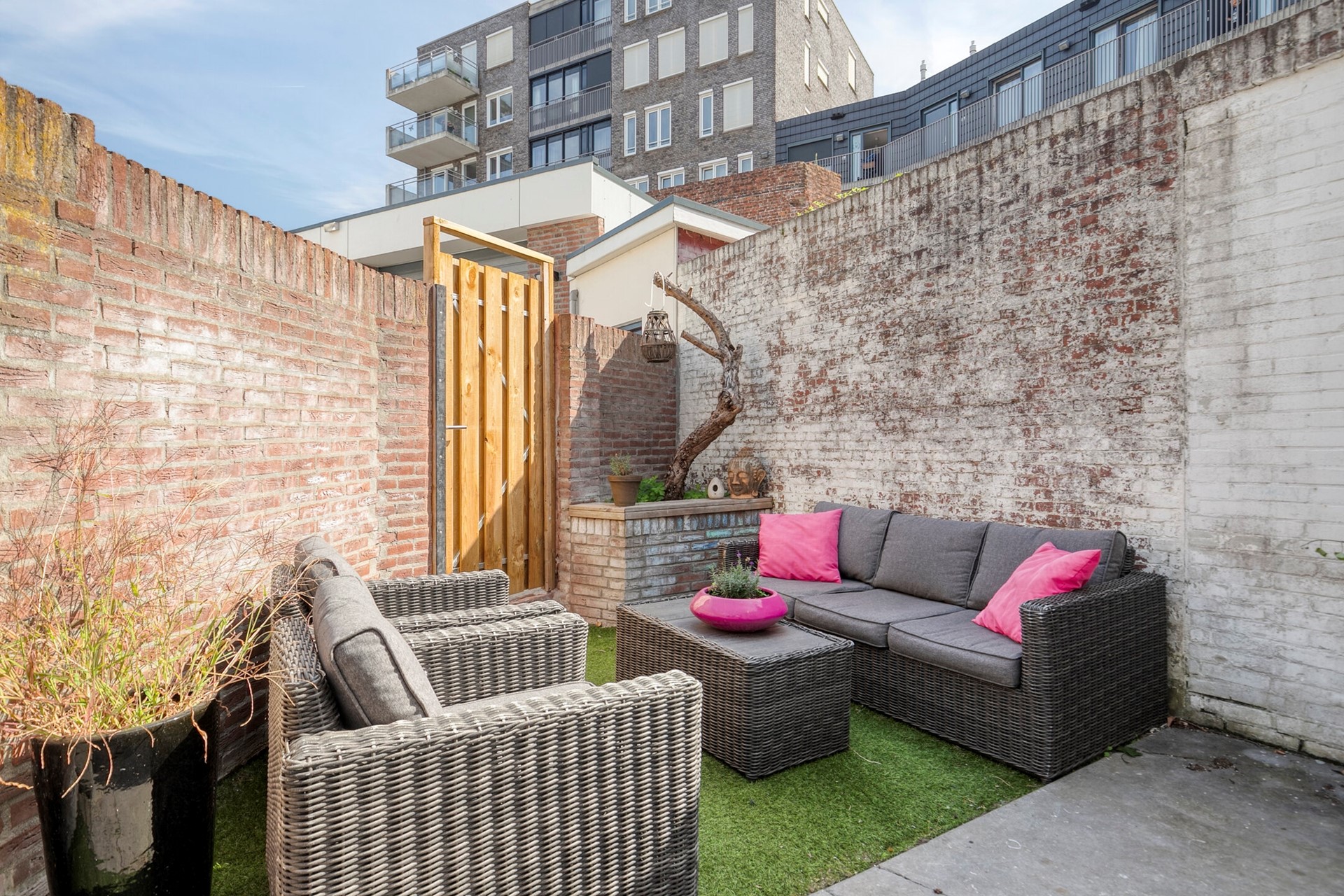 De gezellige achtertuin kun je ook in de (zomer)avonden genieten met vrienden van een barbecue. Of heerlijk ontspannen met een goed glas wijn na een dag hard werken. De tuin heeft een achterom.