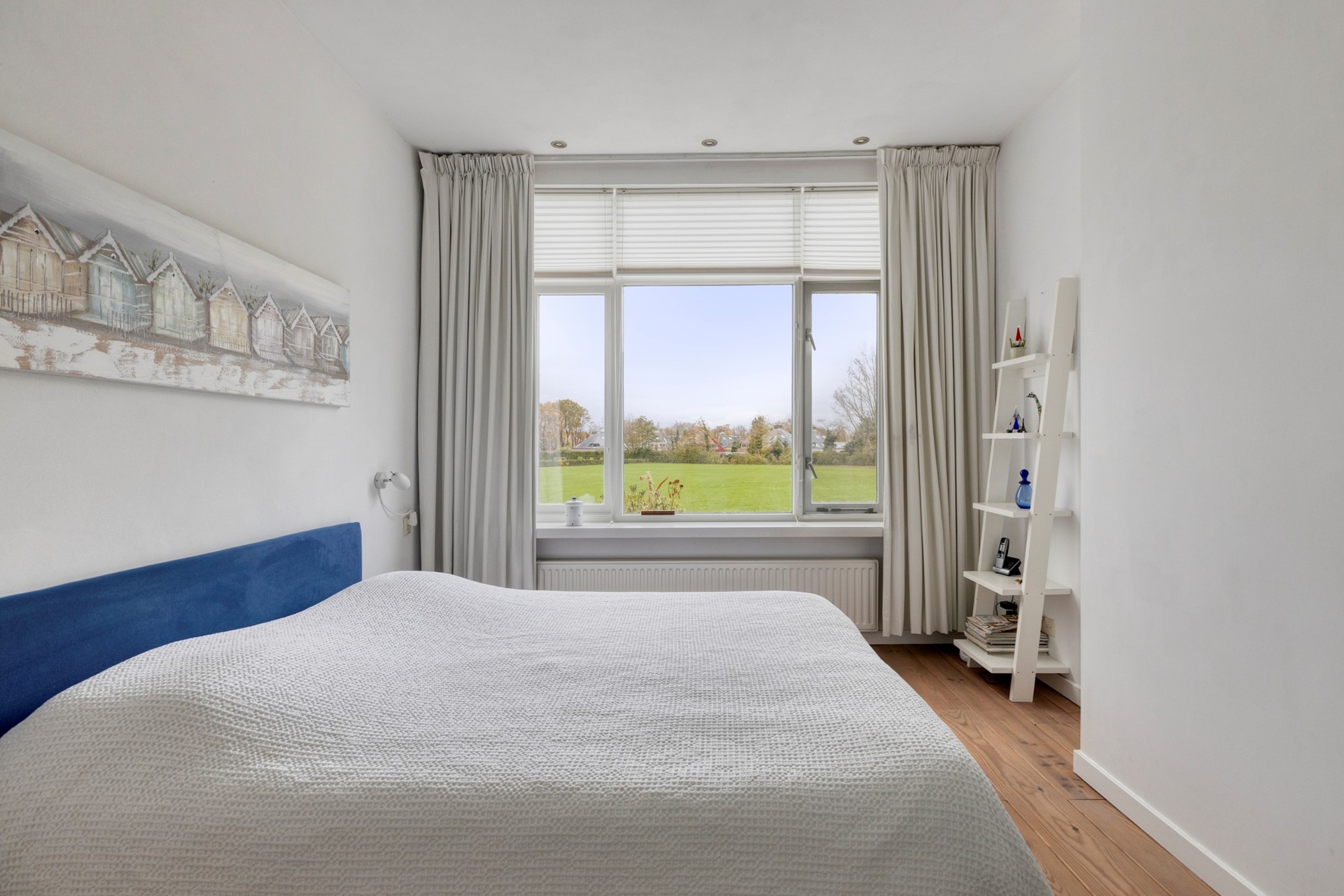 De aan de achterzijde van de woning gelegen slaapkamer heeft een fantastische uitzicht over de sportvelden. Hierdoor heb je een mooie vrij gevoel en geen last van inkijk van achterburen. De kamer is voorzien van een tweetal vaste kasten voor de kleding. Er is ruimte genoeg voor een royaal tweepersoonsbed.