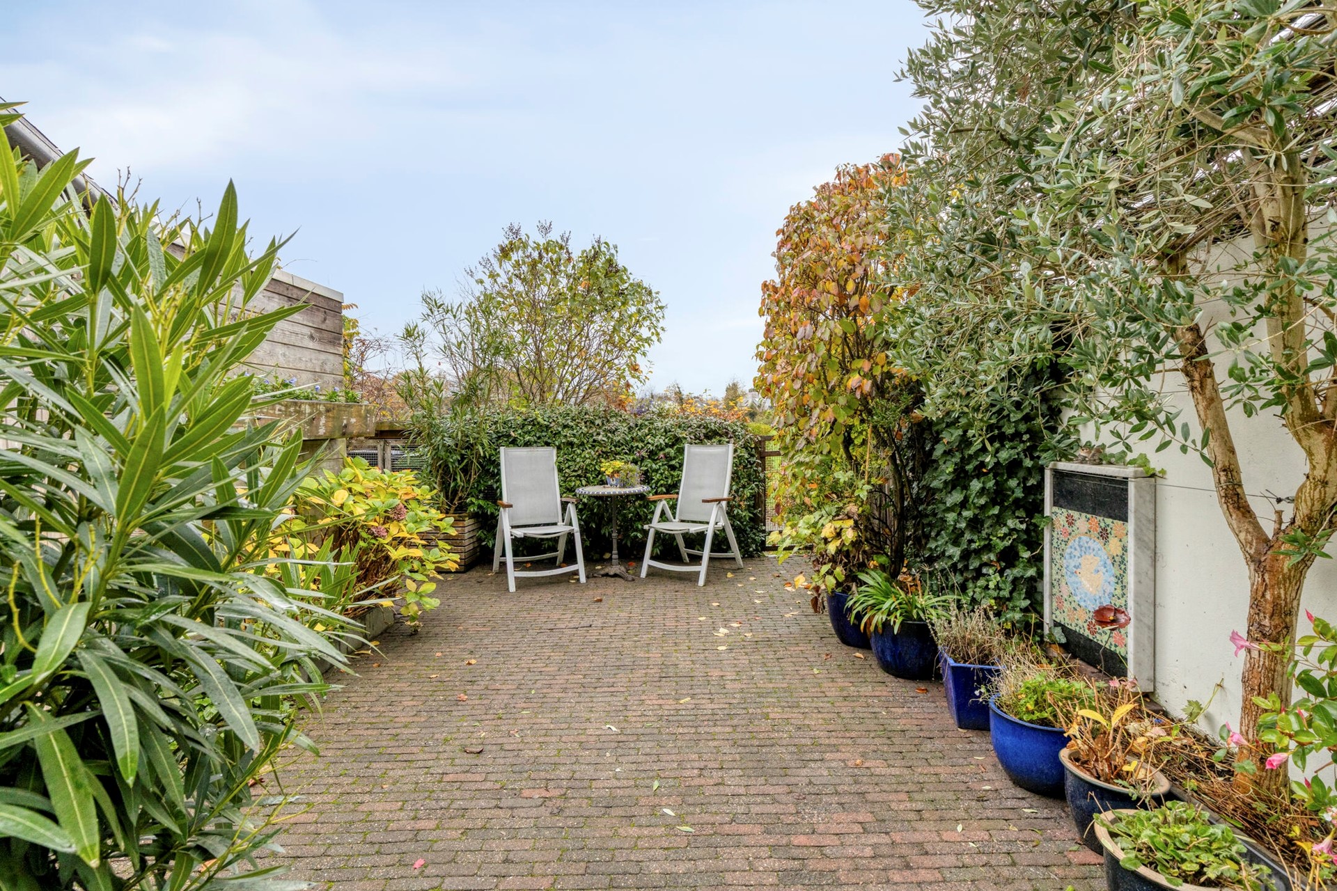 Keurige voortuin die voor de nodige privacy zorgt. De tuin is aangelegd met het nodige groen en voorzien van sierbestrating wat helemaal past bij de woning. Dat is nog een thuiskomen.