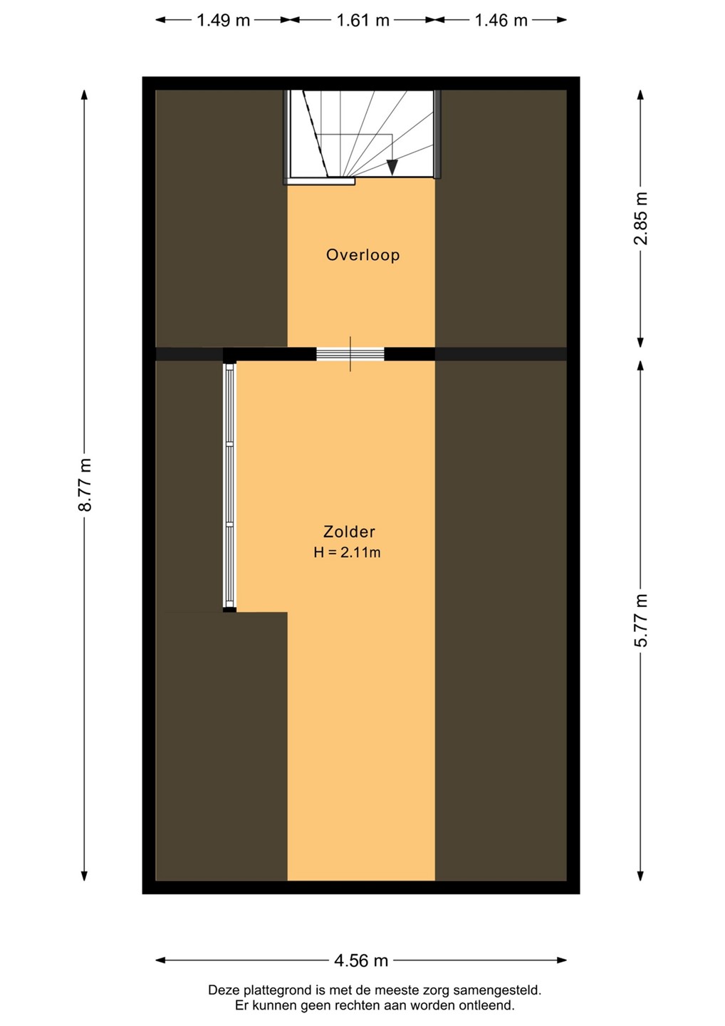 Het meetrapport (wat onderdeel is van de Dataroom) is door een externe partij opgesteld, een kijker/ koper zal daarom nadrukkelijk in de gelegenheid gesteld worden om indien gewenst de maatvoering van de woning zelf te (laten) controleren.