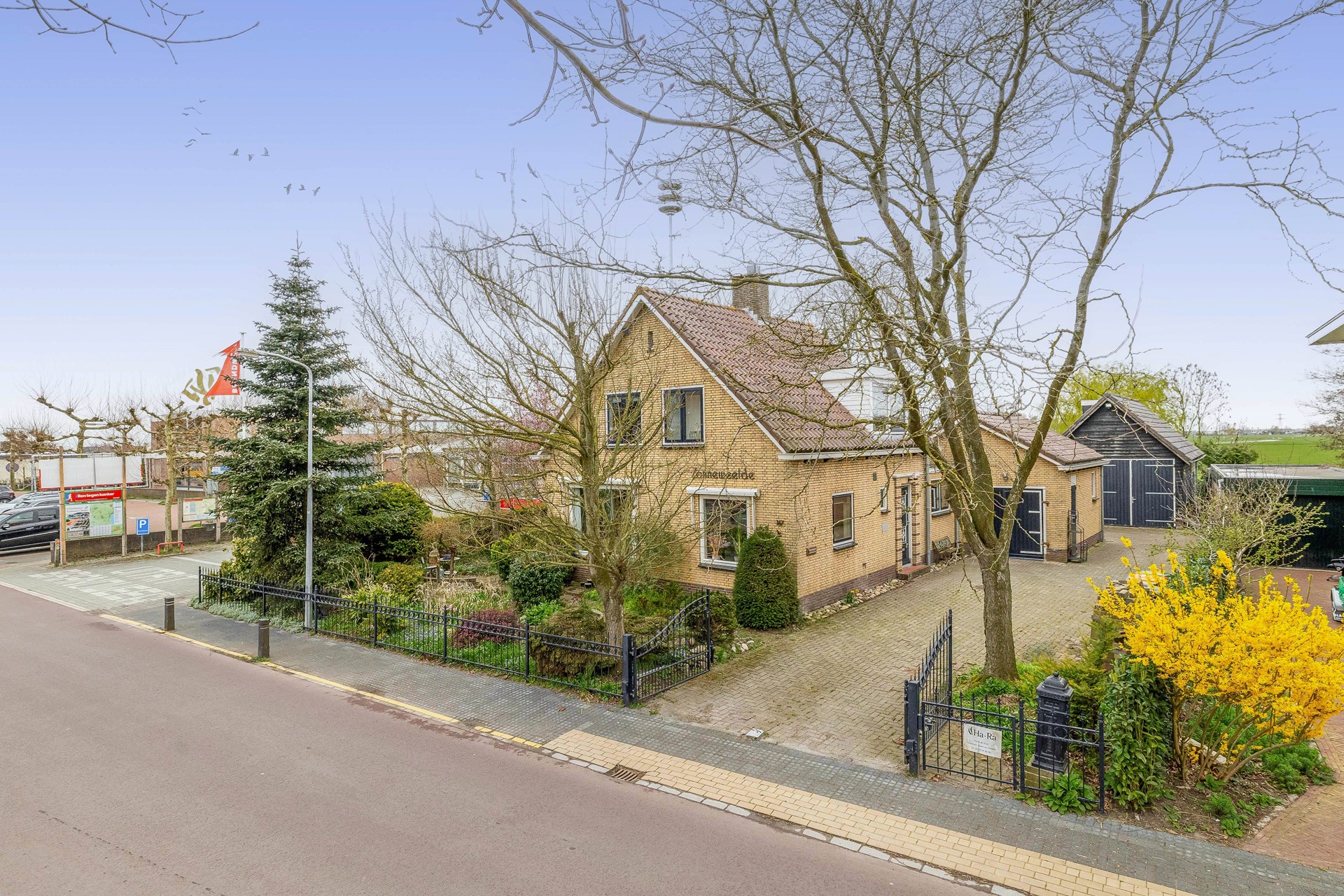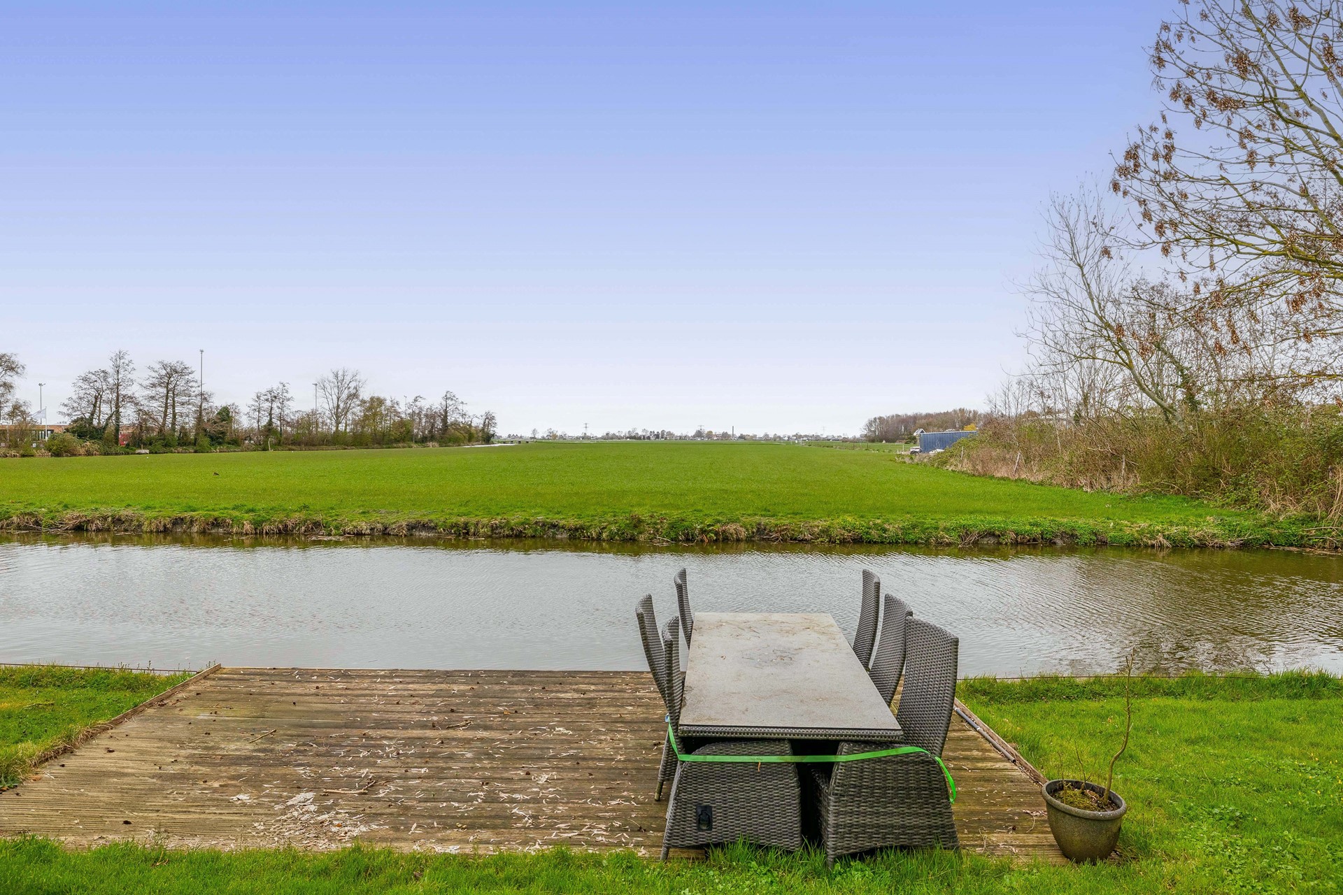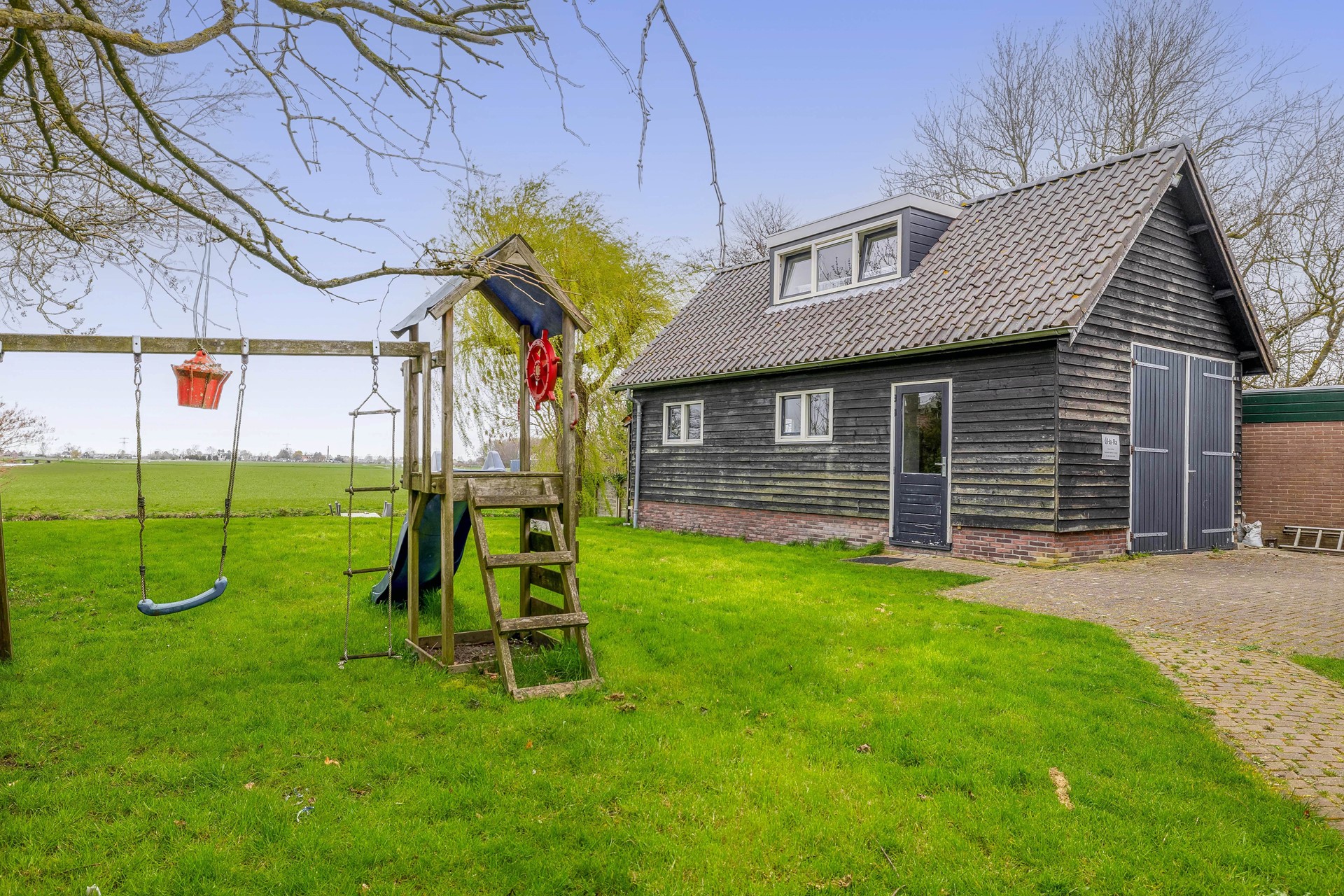 vrij doorvaarbaar water gelegen. Hier is tevens een houten vlonder en aanleg mogelijkheid voor uw bootje. Naast de woning is een brede bestrate oprit die geschikt is voor meerdere auto’s, hier is ook een buitenkraan aanwezig, ook naast de aangebouwde garage is bestraat zodat de achterliggende schuur/ garage goed met de auto te bereiken is.