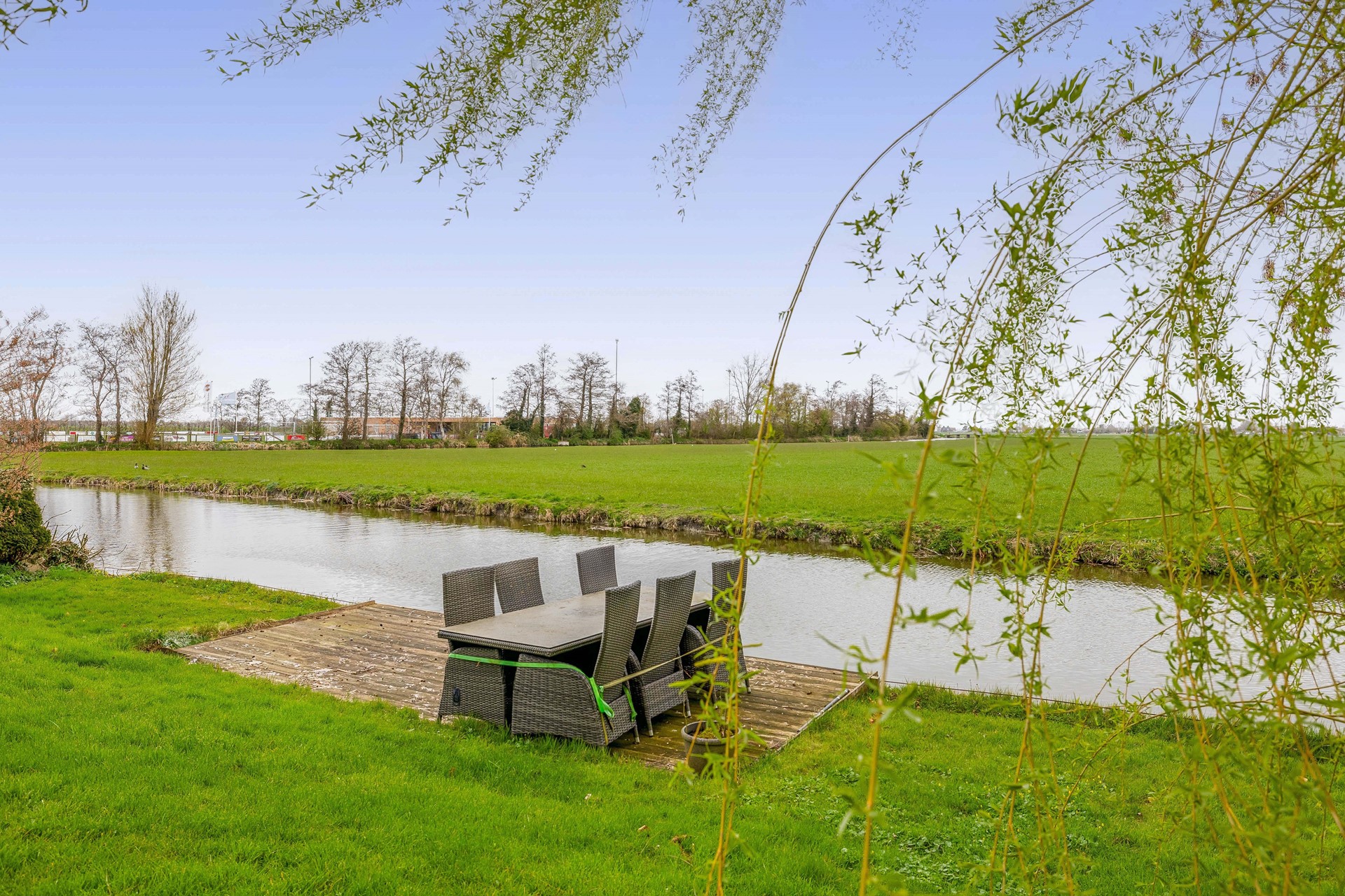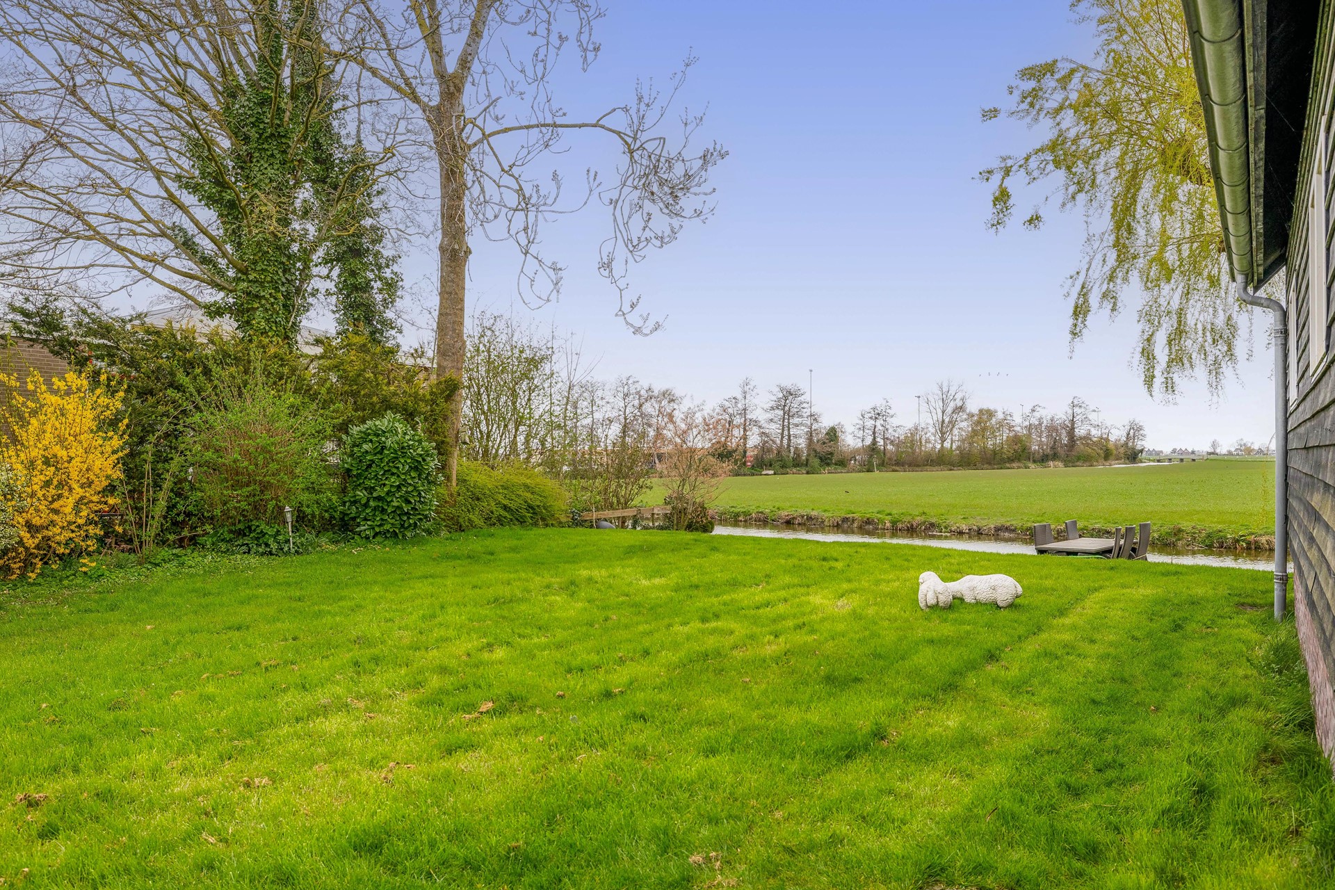De achterzijde van de kavel is aan vrij doorvaarbaar water gelegen.