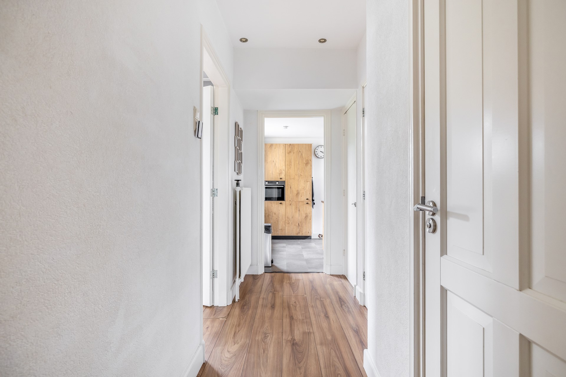Naast de entree en onder de trap naar de etage vind u de kelderkast.