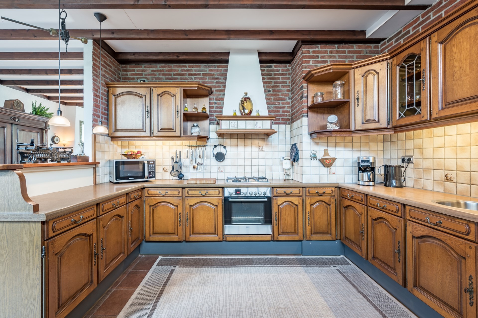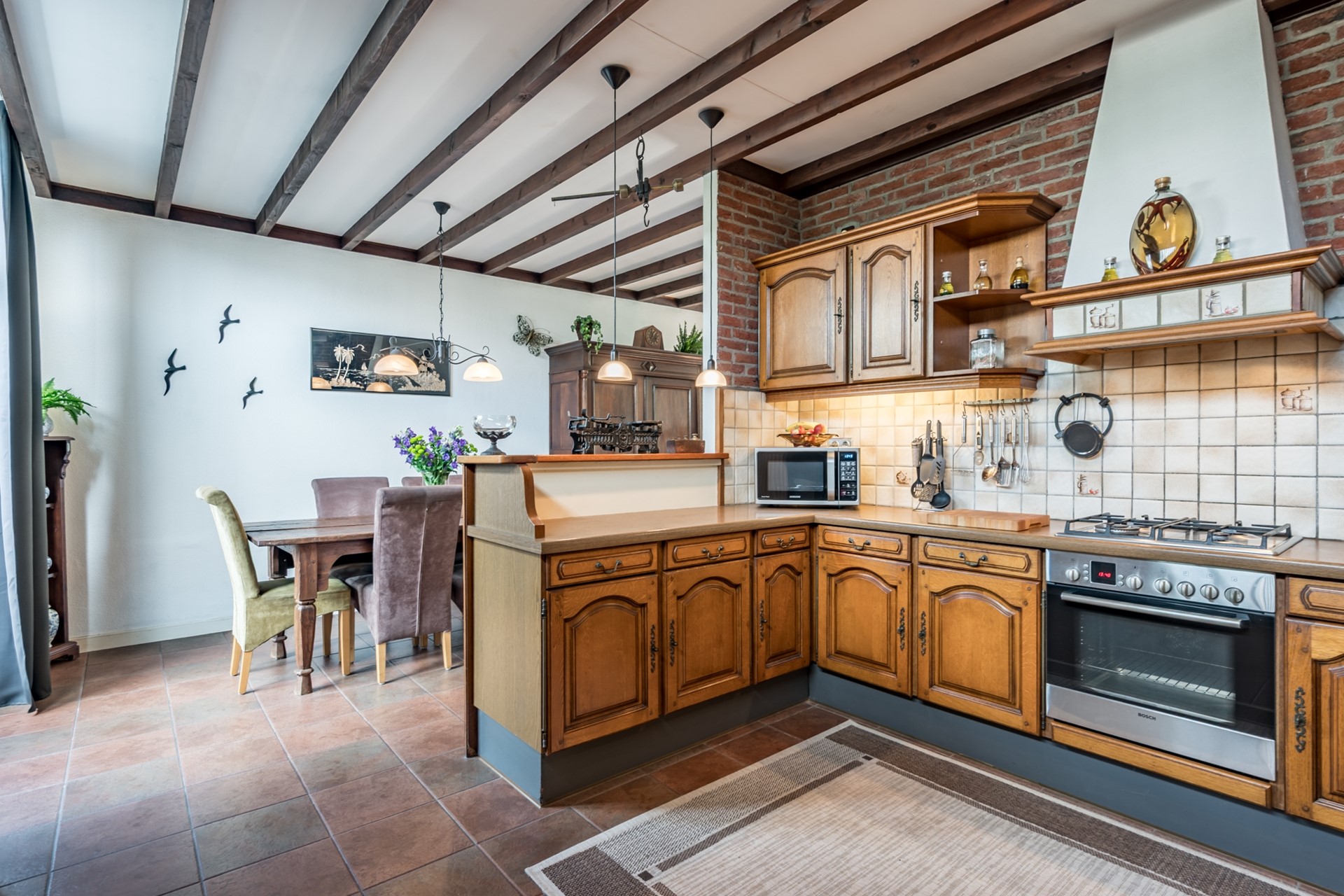 - Praktische keuken in U-opstelling met volop ruimte en aansluitend een royale bijkeuken met veel bergruimte en plek voor wasmachine en droger