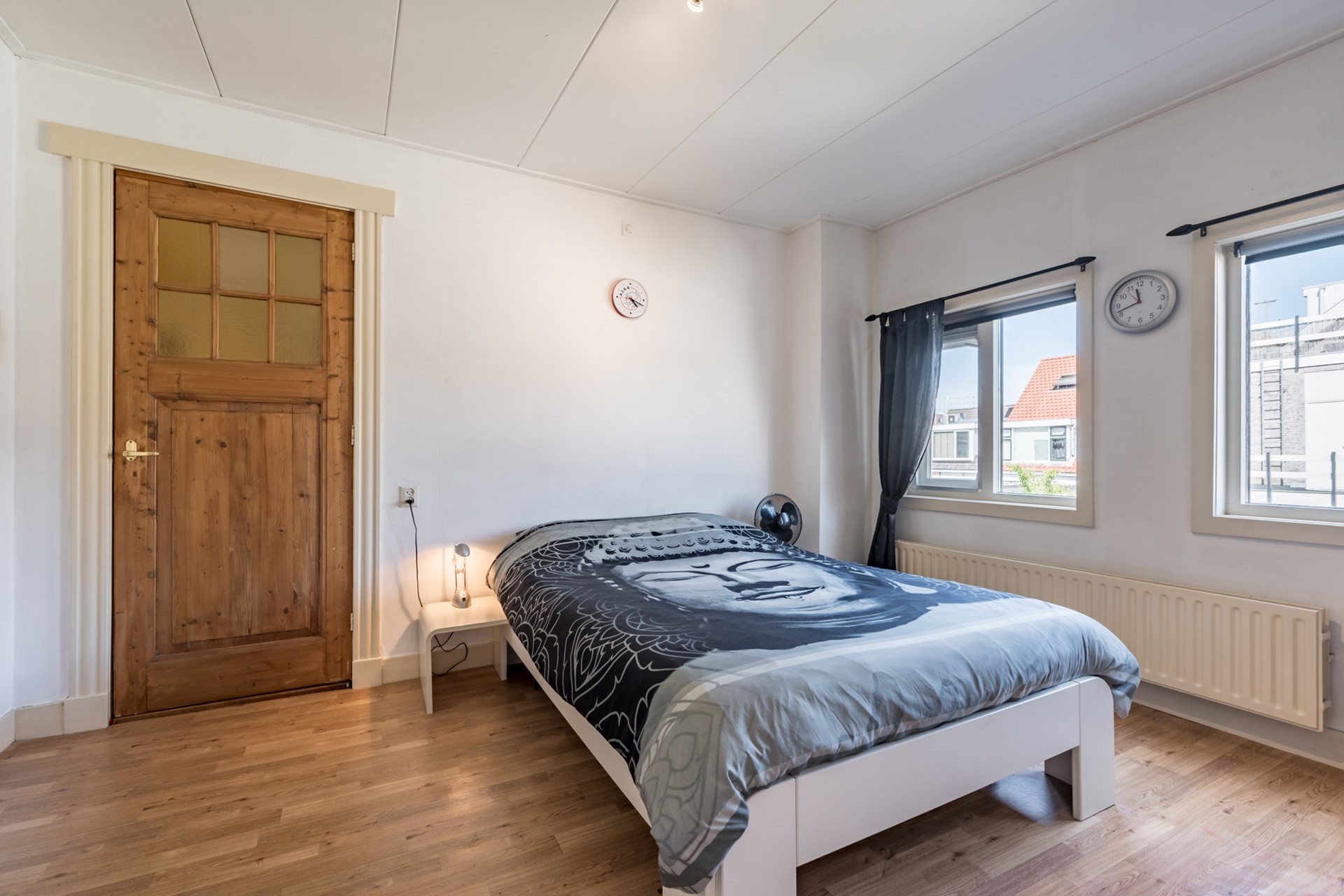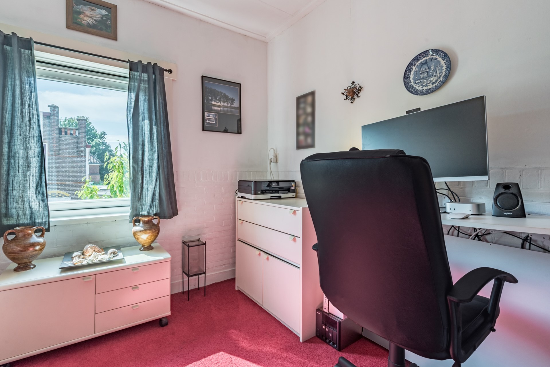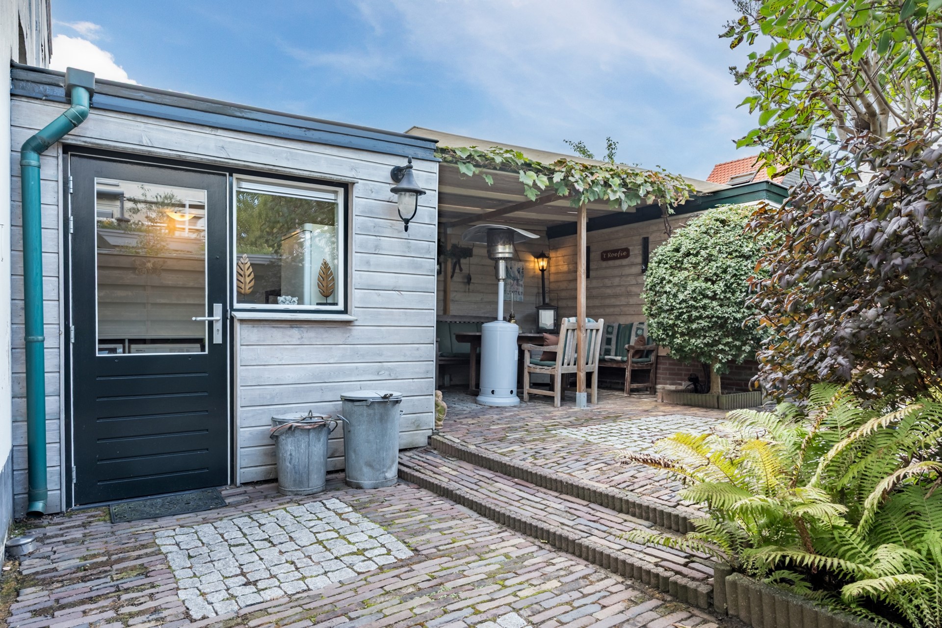 De woonkamer met sfeervolle balken en gashaard geeft een gevoel van thuiskomen, en de openslaande deuren leiden naar een verzorgde achtertuin met overkapping. De woning biedt lichte, ruime vertrekken en een praktische indeling met een grote keuken, bijkeuken, drie slaapkamers en een fijne badkamer. Gelegen in een rustige straat, maar toch dichtbij station en centrum – hier combineer je rust en gemak moeiteloos.