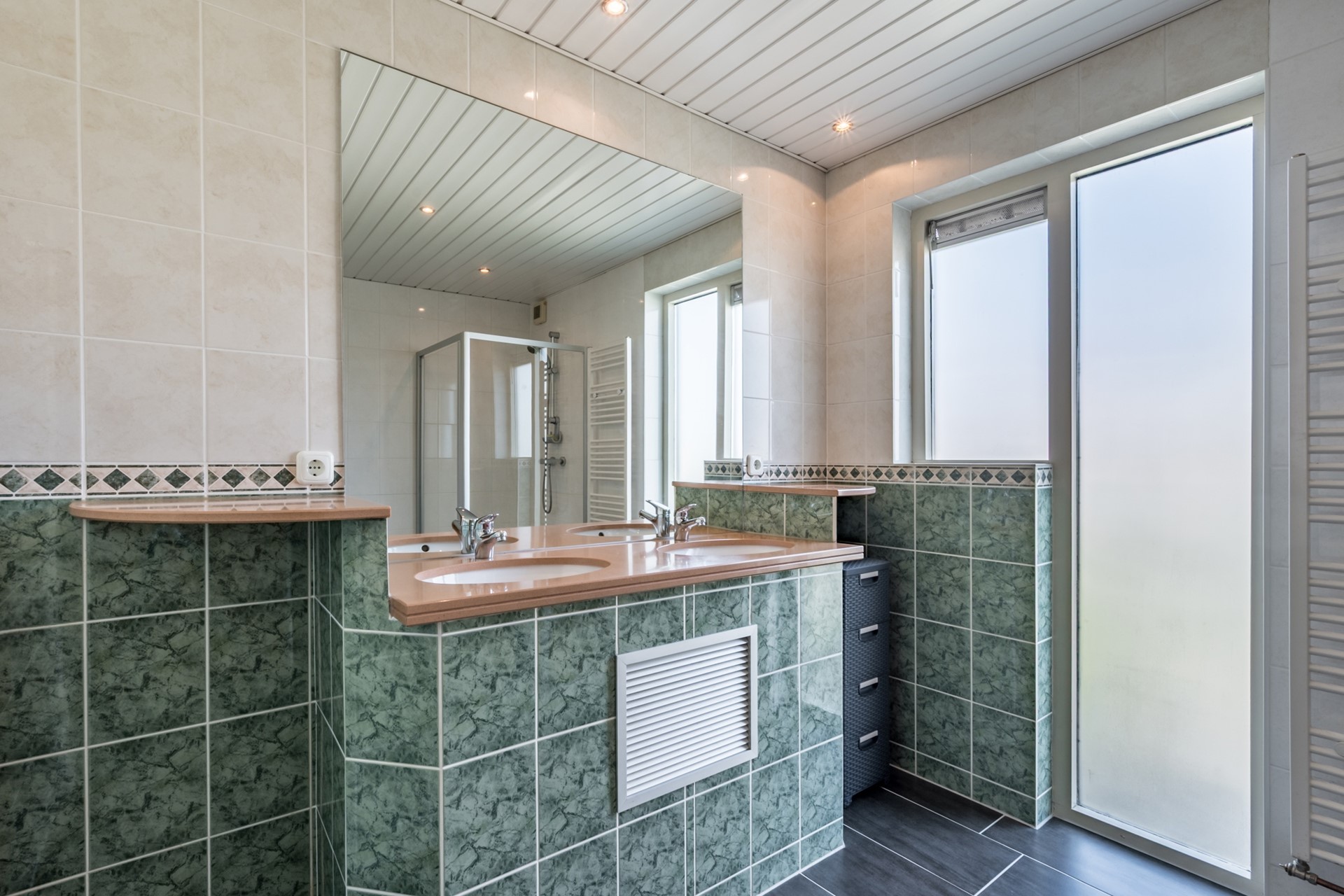 - Lichte en royale badkamer met douche, dubbele wastafel, toilet én vloerverwarming