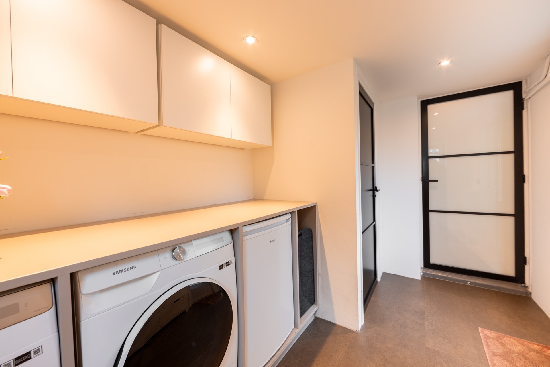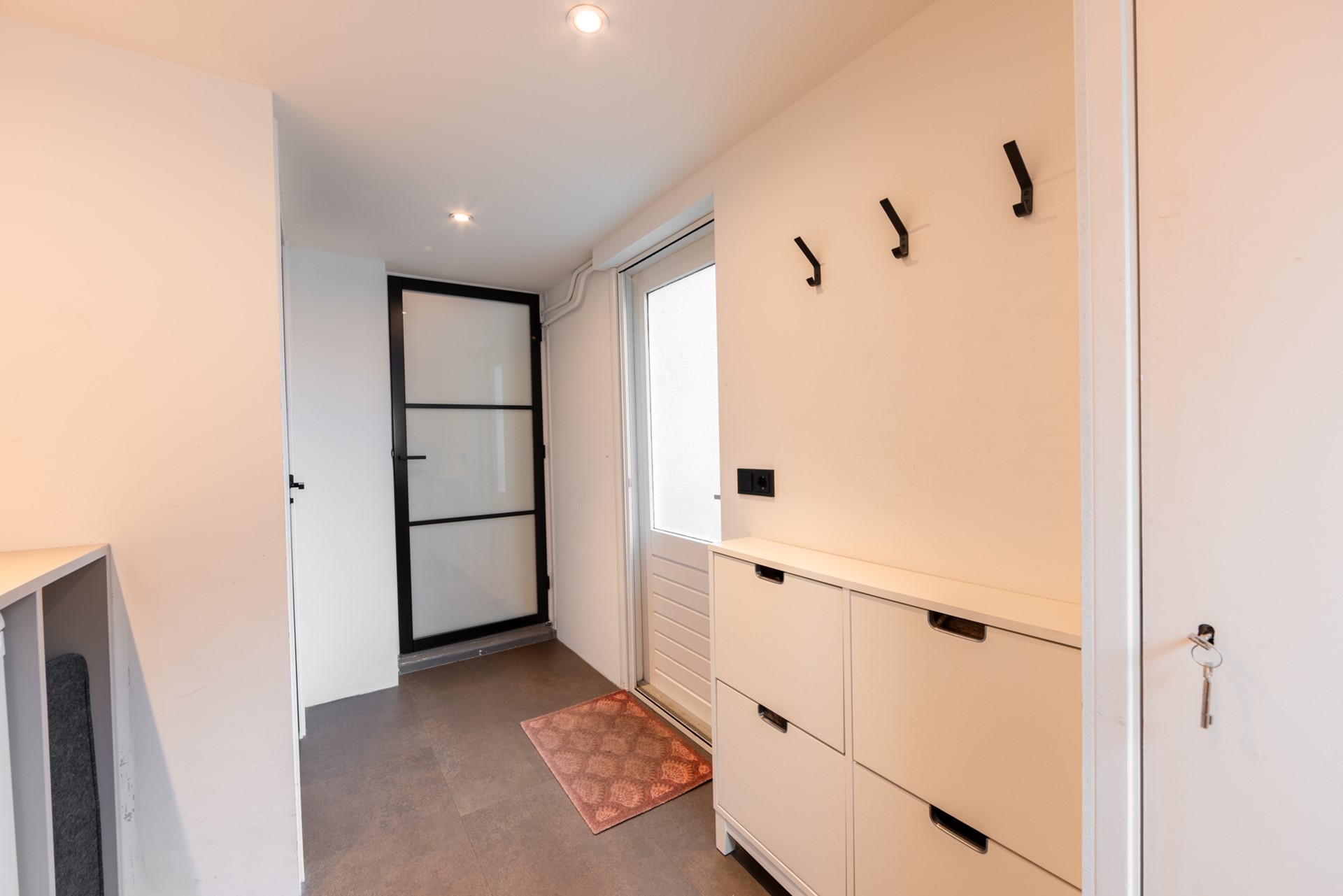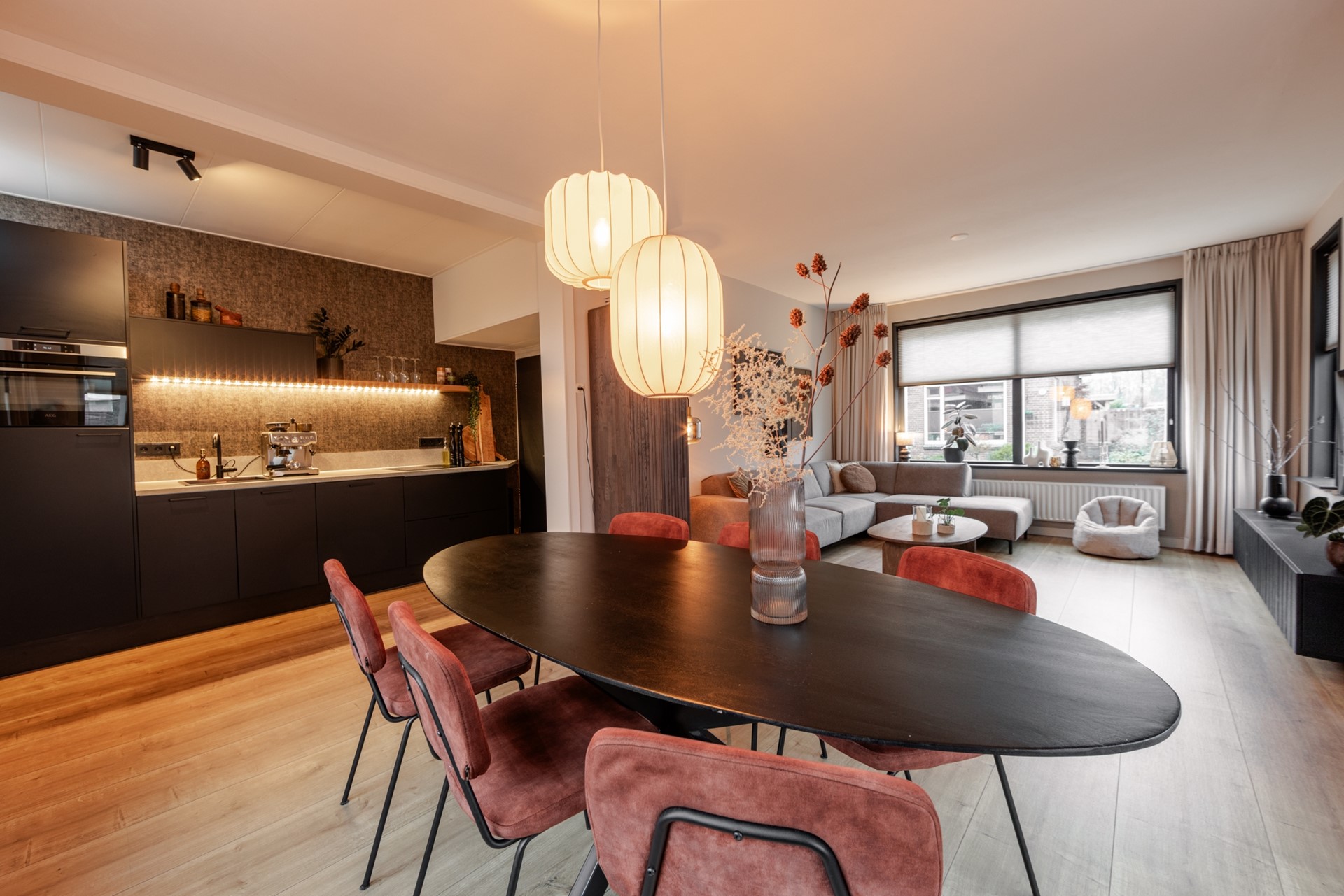 Via de hal kom je in de vernieuwde, moderne halfopen keuken met inbouwapparatuur. Doordat de muur is doorgebroken, heb je een ruimtelijk effect. De gezellige doorzonwoonkamer is lekker licht, mede door de erker aan de zijkant. De glas-in-loodramen horen helemaal bij de jaren 30-stijl. De aanbouw is van 2022, met de bijkeuken en een vernieuwd toilet.