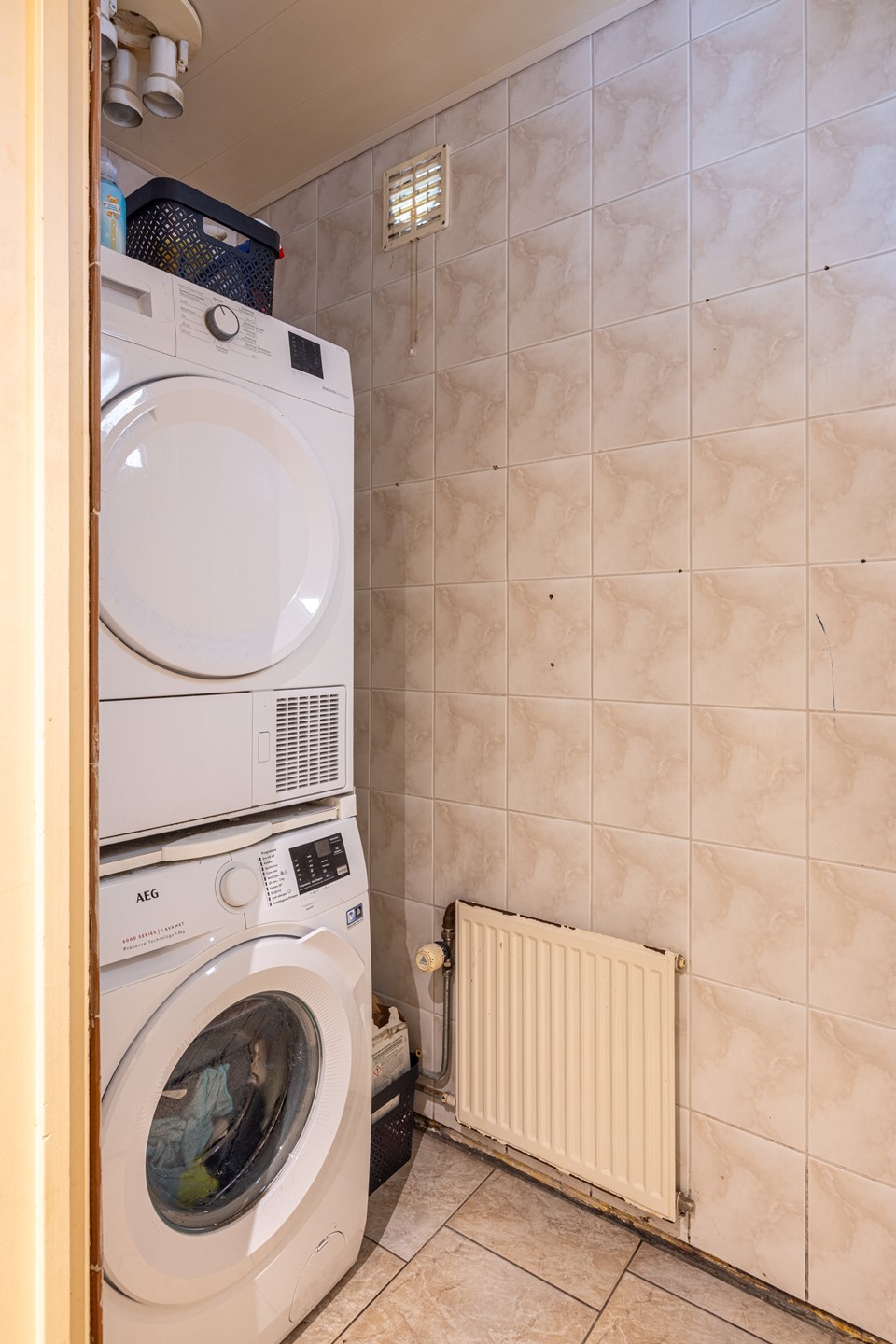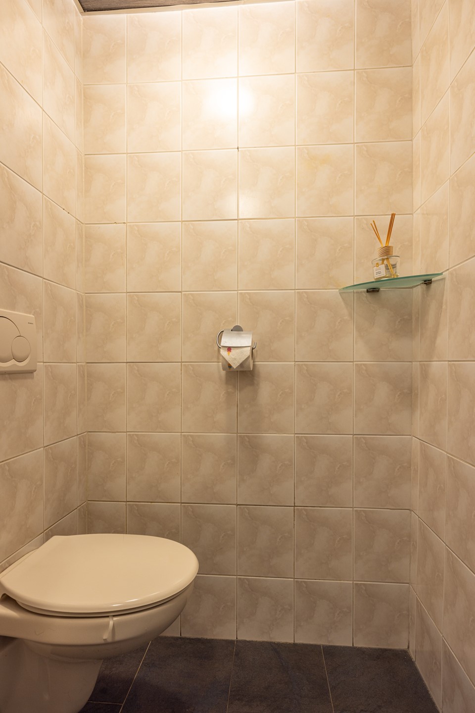 De achtertuin is grotendeels betegeld en biedt voldoende ruimte om lekker buiten te zitten. Via de tuin is er directe toegang tot de ruime garage, die bereikbaar is via een achterom. In de garage is bovendien een vaste trap naar het royale dakterras gecreëerd. Deze verhoogde buitenruimte is een echte verrassing: perfect voor zomerse avonden of om in alle rust te genieten van de zon.