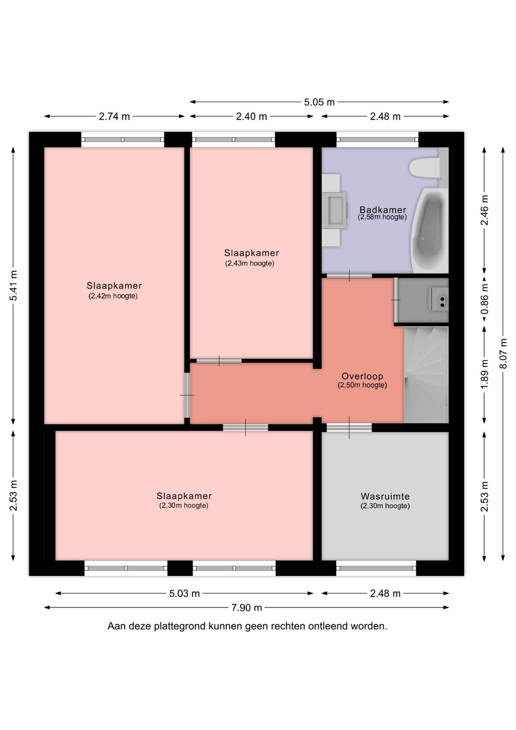 De verdieping telt drie slaapkamers, elk met hun eigen indeling en gebruiksmogelijkheden. Alle kamers zijn keurig afgewerkt, hebben veel daglicht en zijn voorzien van rolluiken, ideaal voor wie graag in een koele en verduisterde kamer slaapt. De kamer direct naast de trap word momenteel gebruikt als waskamer, voorzien van de witgoedaansluitingen en extra kastruimte.