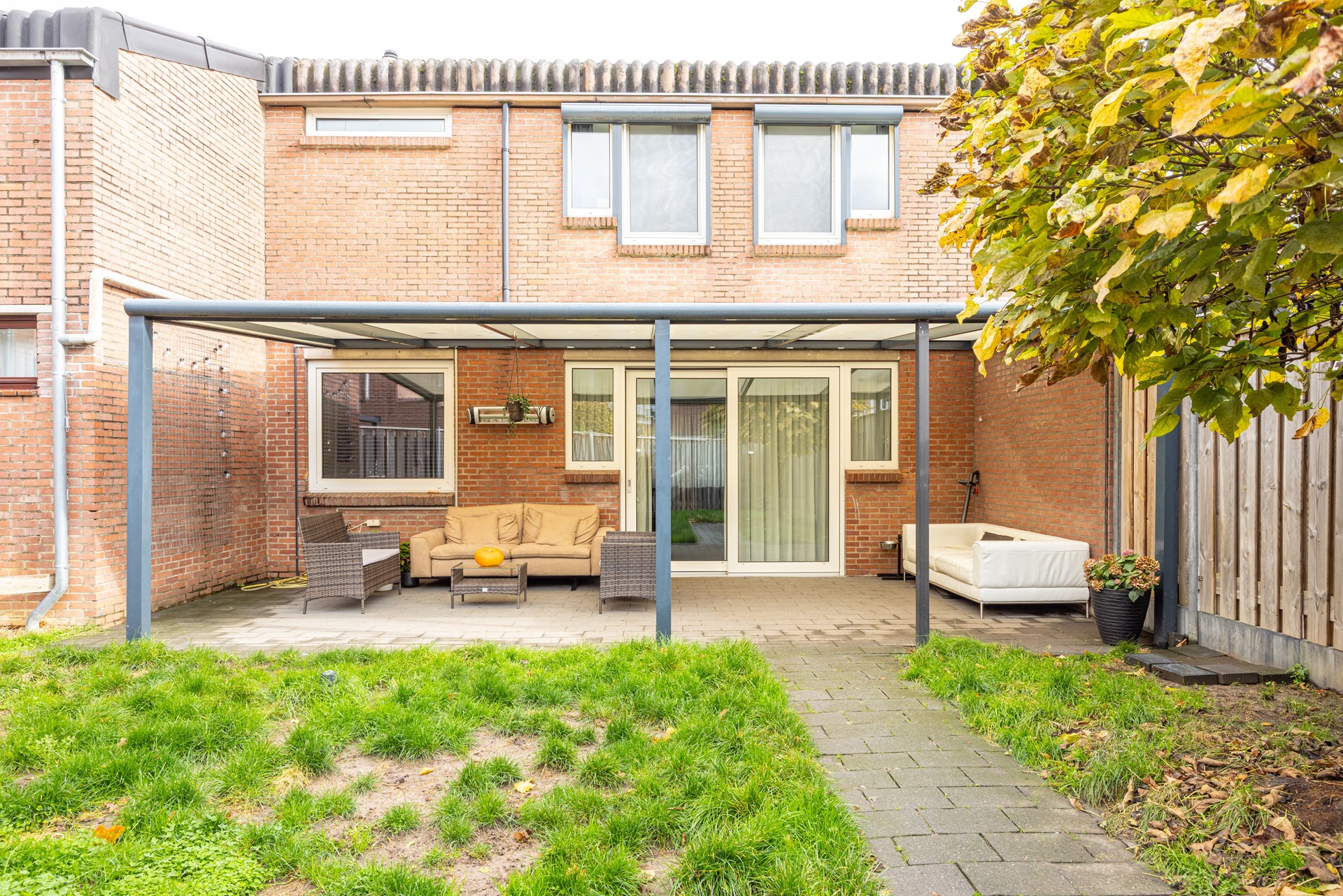 De ruime overkapping aan de woning is een echte meerwaarde: een fijne plek om het hele jaar door buiten te zitten. Of het nu gaat om een rustige ochtend met een kop koffie of een lange zomeravond met vrienden en familie, hier kun je in alle seizoenen comfortabel genieten van het buitenleven.